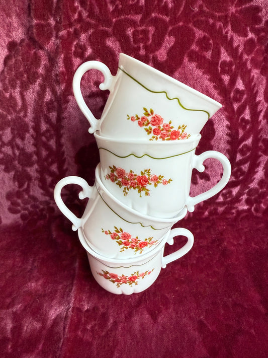 Lot de 4 tasses Luminarc en porcelaine à motif fleuri