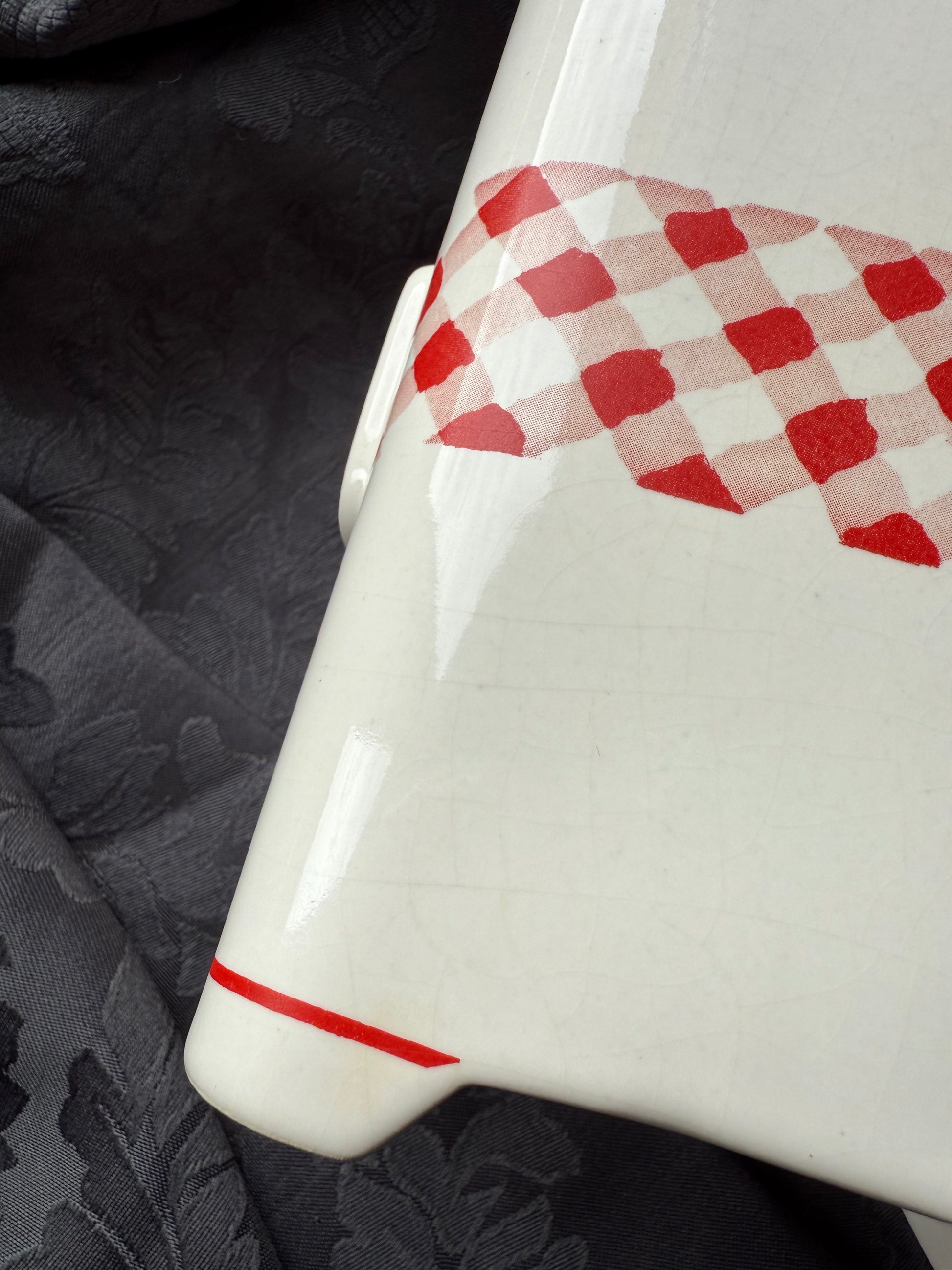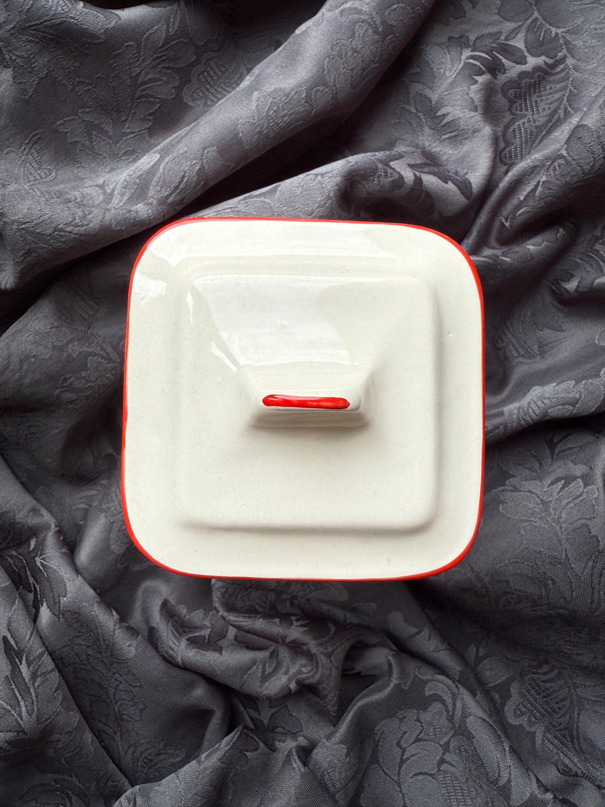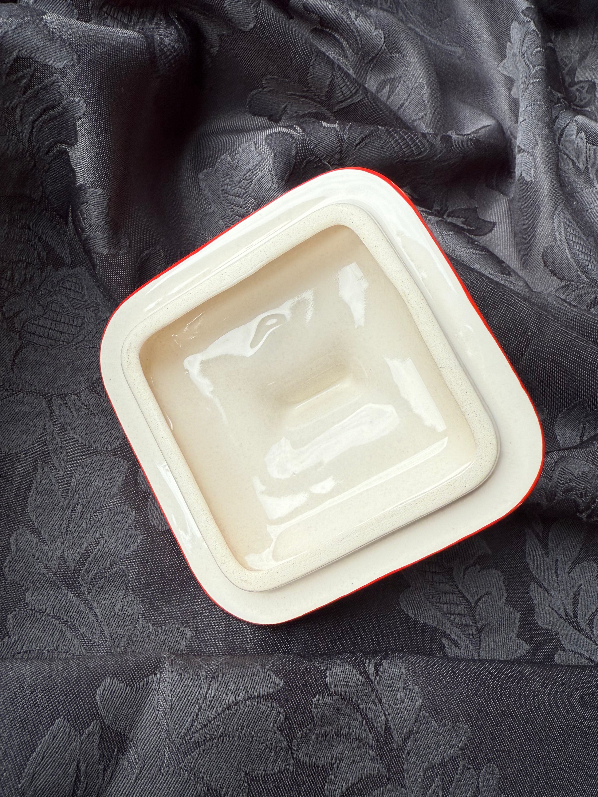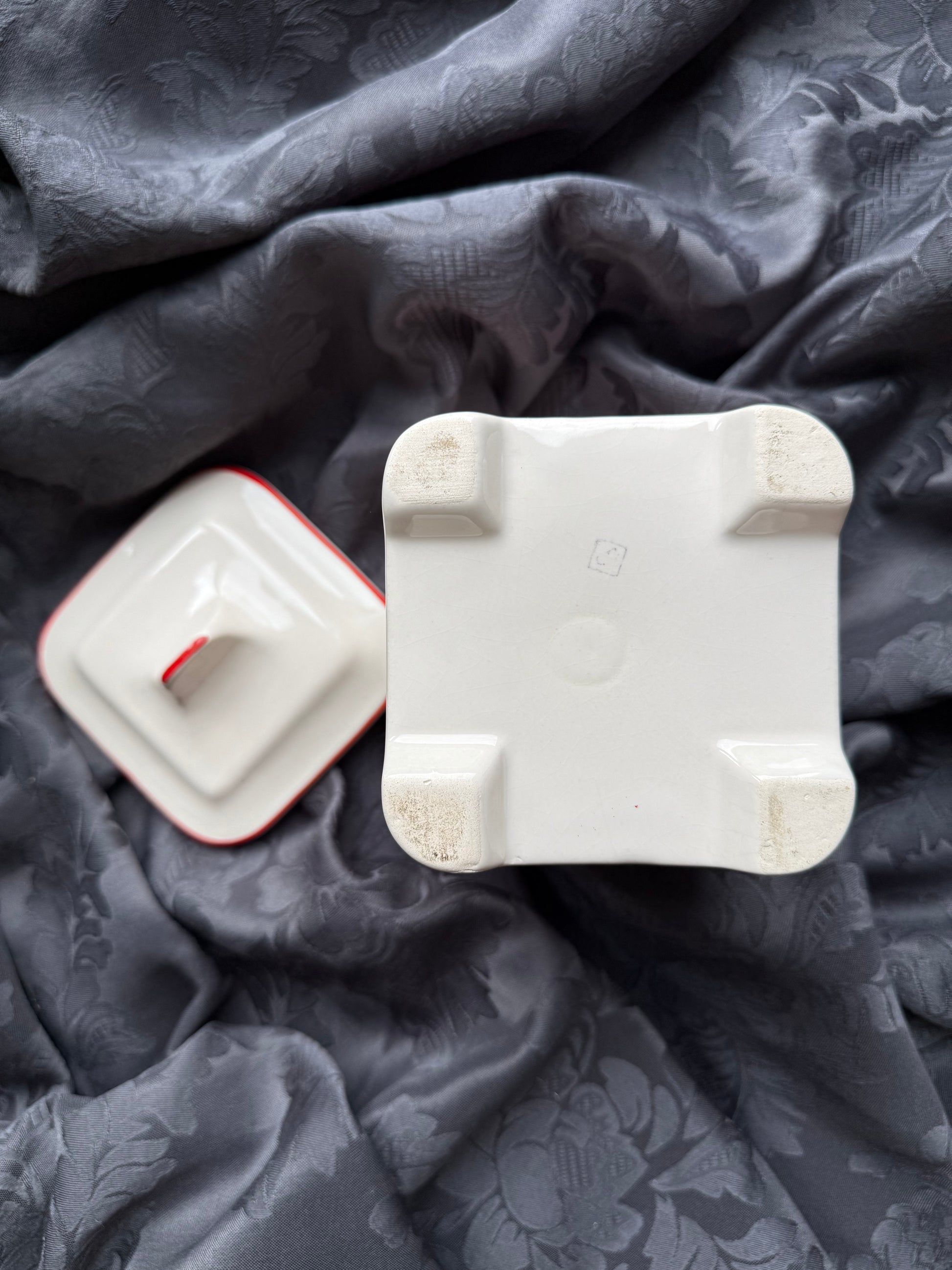 Superbe boîte qui peut être utilisée pour ranger des biscuits, en tant que vase ... Elle est de très bonne qualité, on peut distinguer de légères craquelures dans la céramique sur les côtés mais c'est très discret (voir dernière photo). Elle pèse 1 Kg.