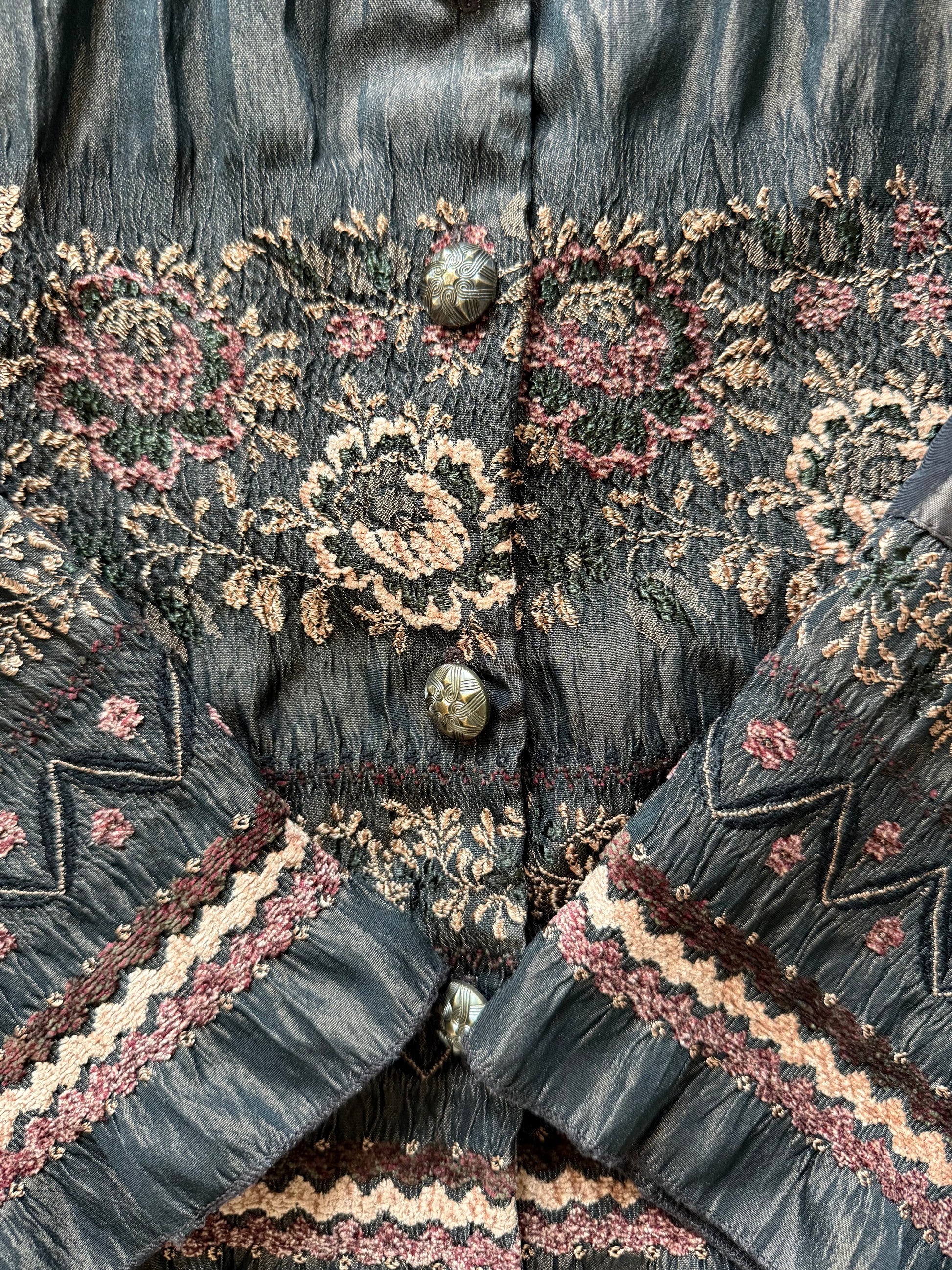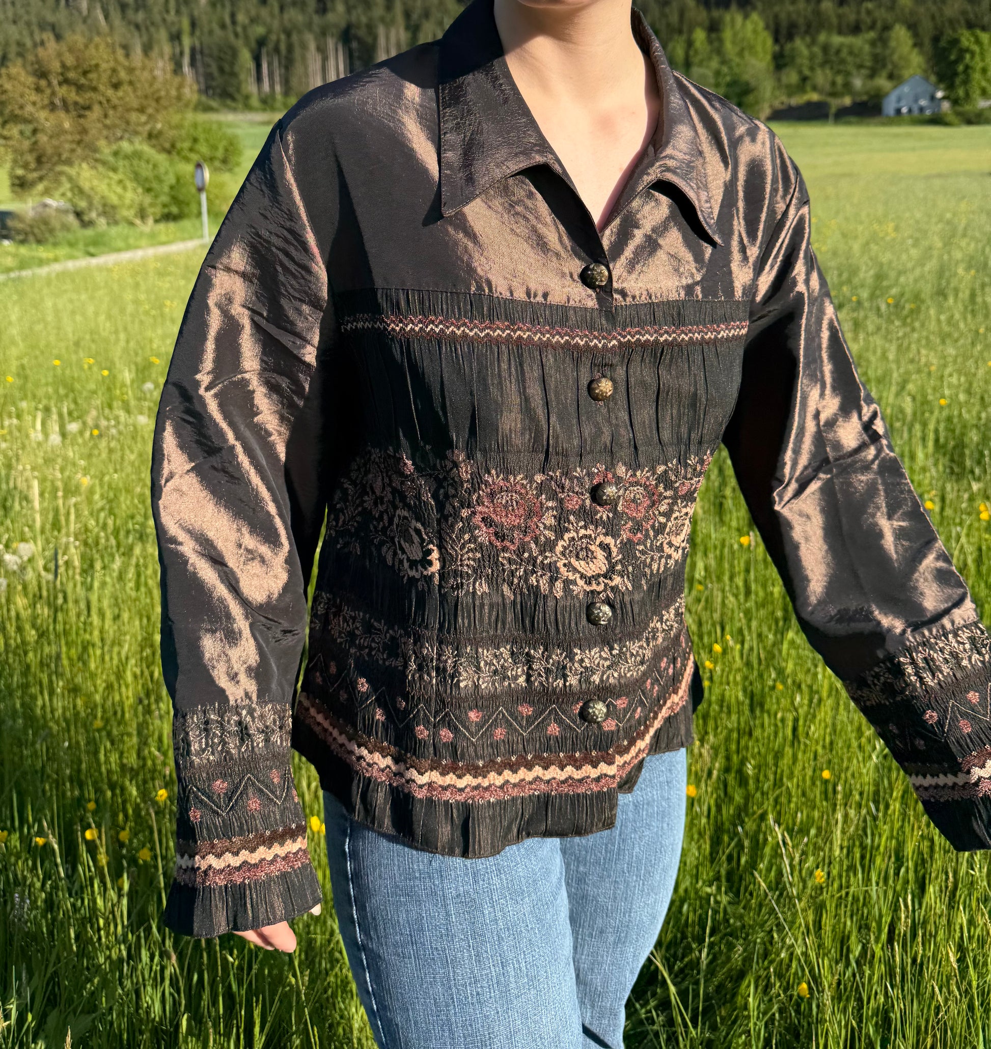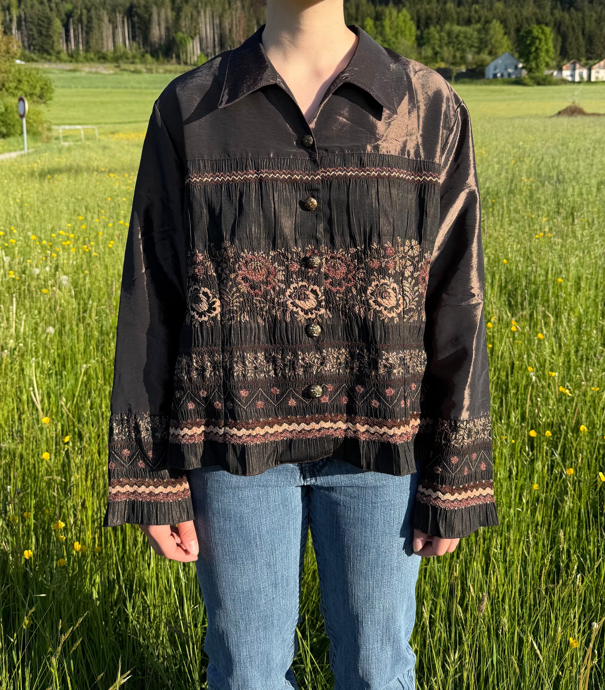 Très joli chemisier Lysa Kara Paris taille M voir L, fabriqué en France. Sur l'étiquette il y a indiqué lavage à la main, mais nous l'avons lavé à la machine et ça ne l'a pas du tout abîmé.