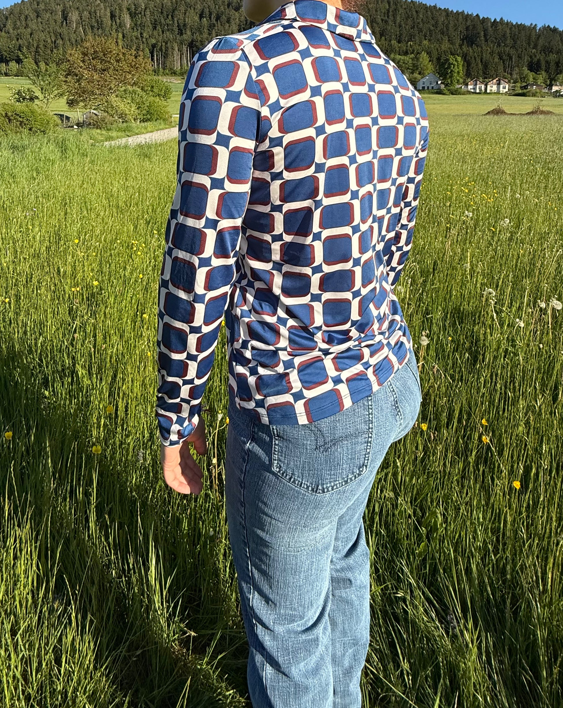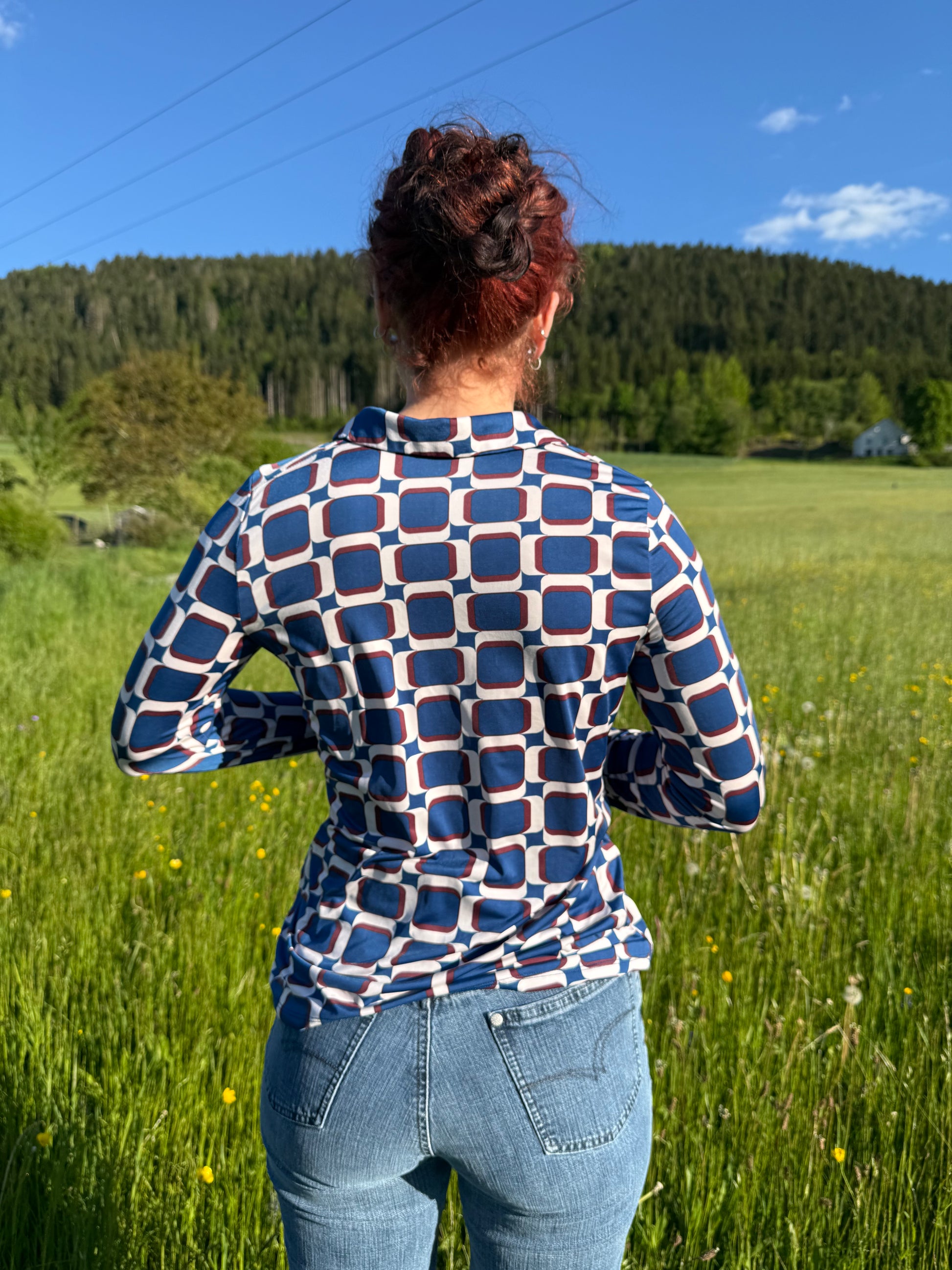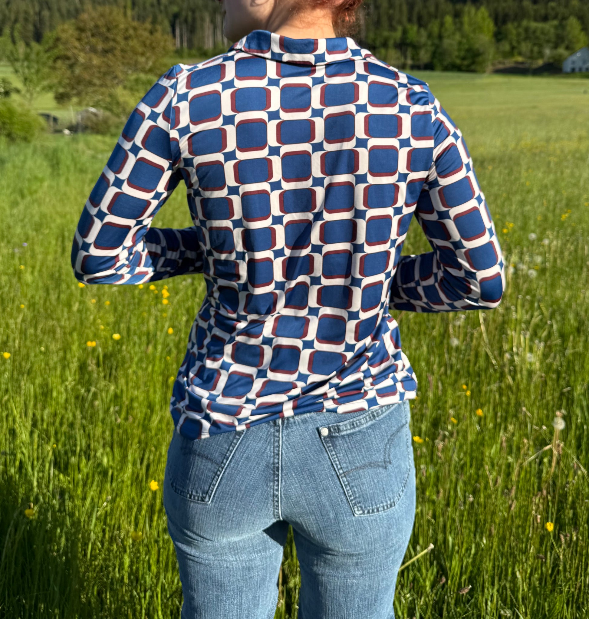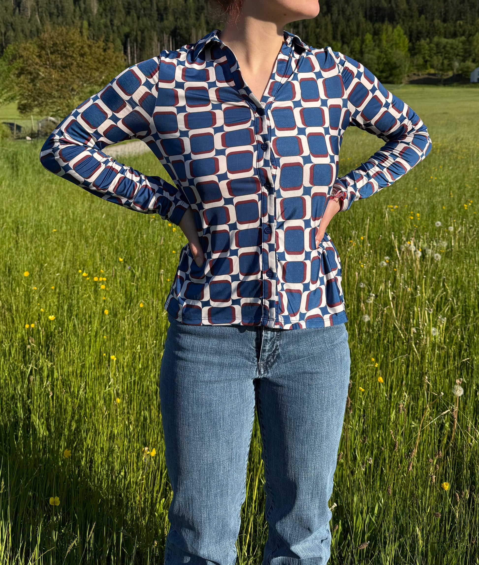 Jolie chemisier aux motifs rétro de la marque Grain de malice. Il est indiqué T.XS mais il taille grand.