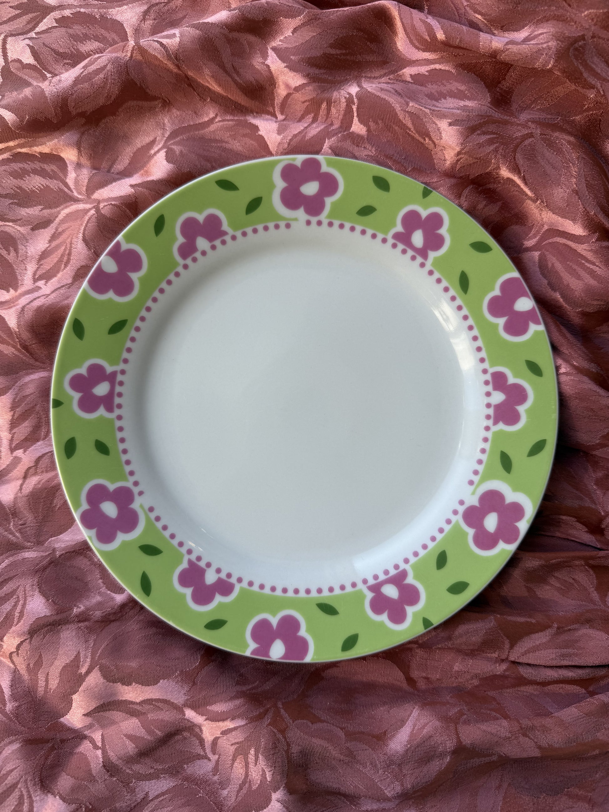 Cinq jolies assiettes en porcelaine en très bon état. Elles peuvent aller au lave-vaisselle et au micro-ondes.