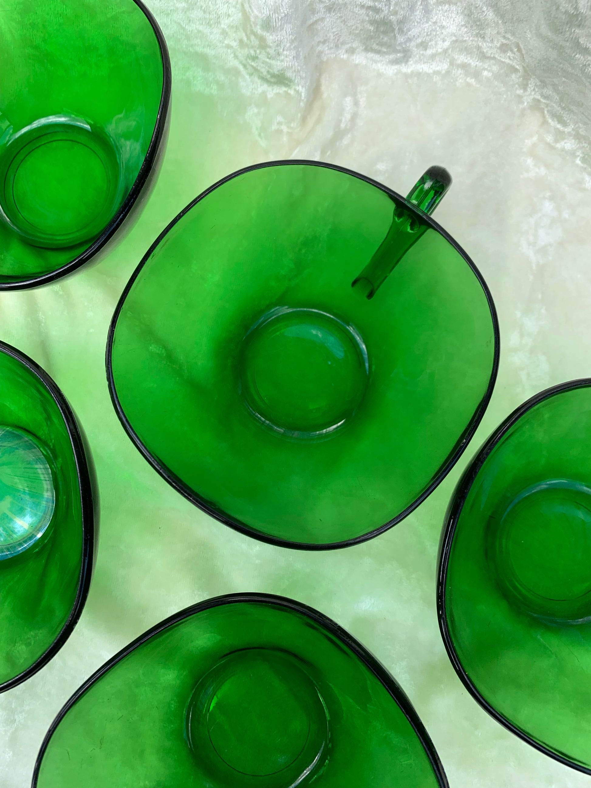 Cinq tasses Vereco des années 70 fabriquées en France. Elles sont en très bon état, quelques petites traces qui montrent qu'elles ont déjà été lavées mais rien de gênant.