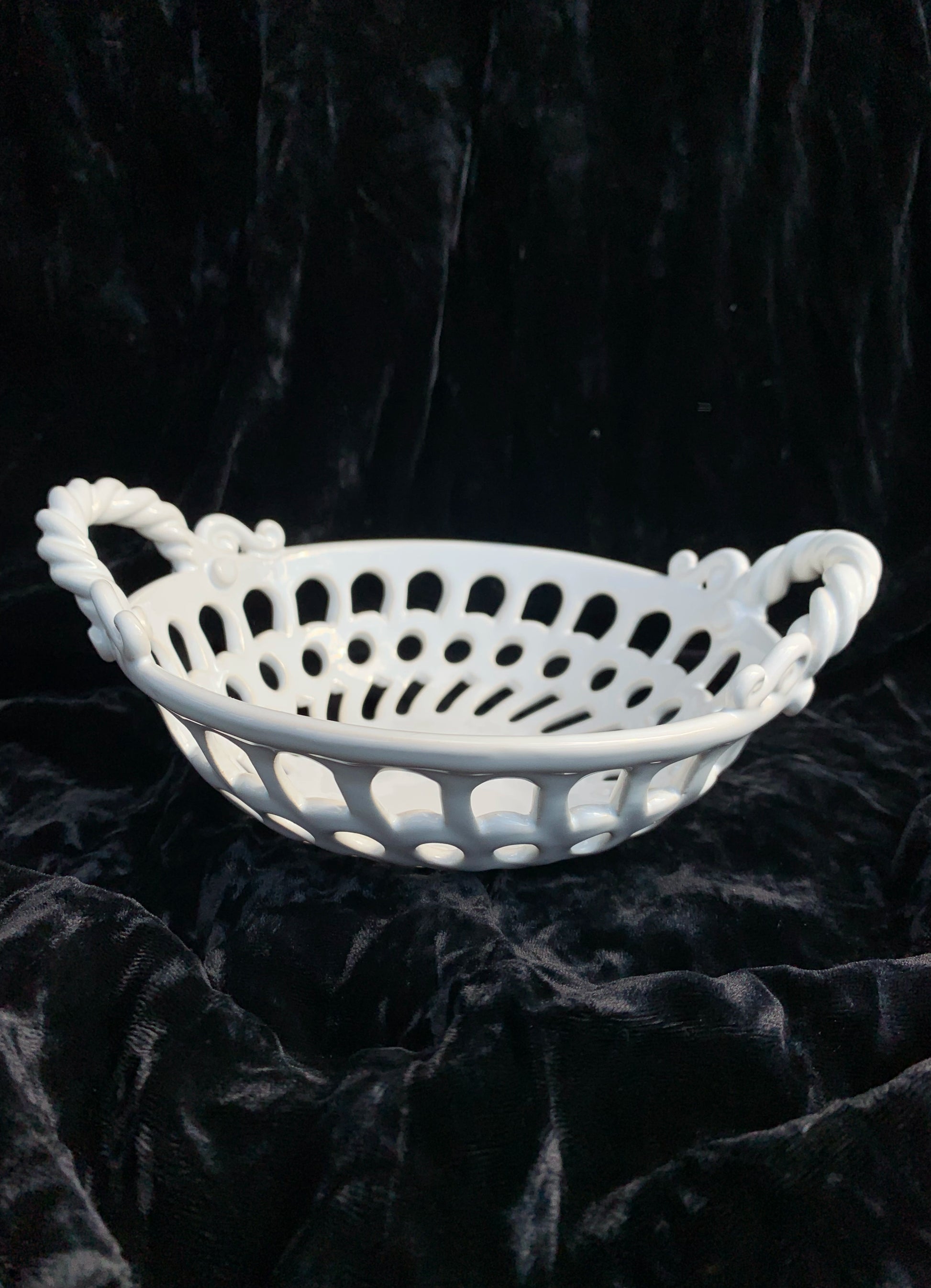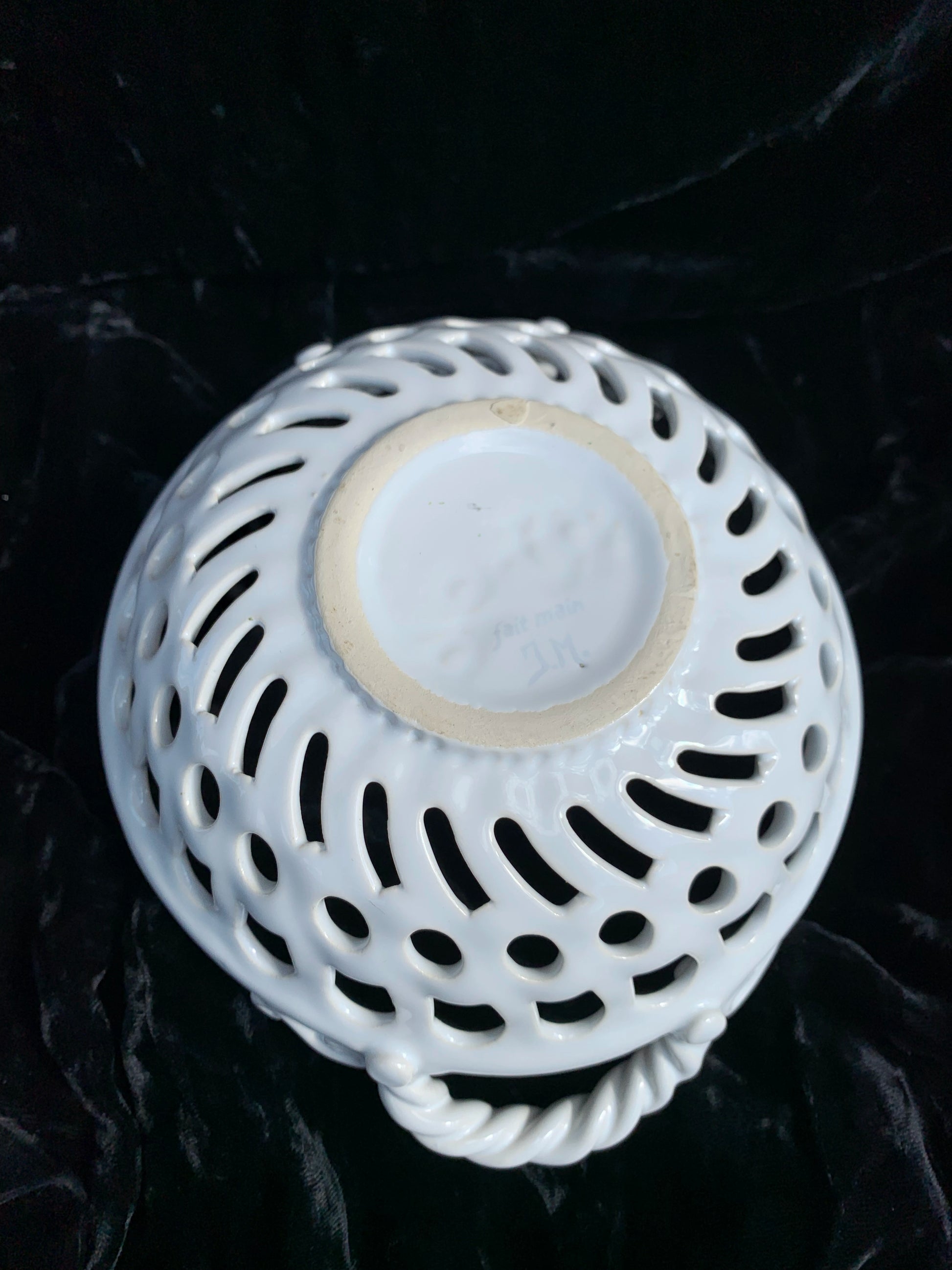 Magnifique corbeille en céramique fait main. Elle est légère et les détails sont subtiles. Elle est en parfait état.