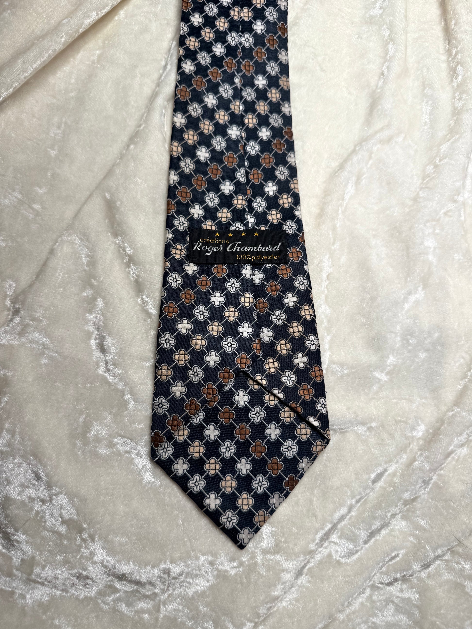 Jolie cravate Roger Chambard 100% polyester. Le fil est légèrement tiré à un endroit, voir dernière photo.