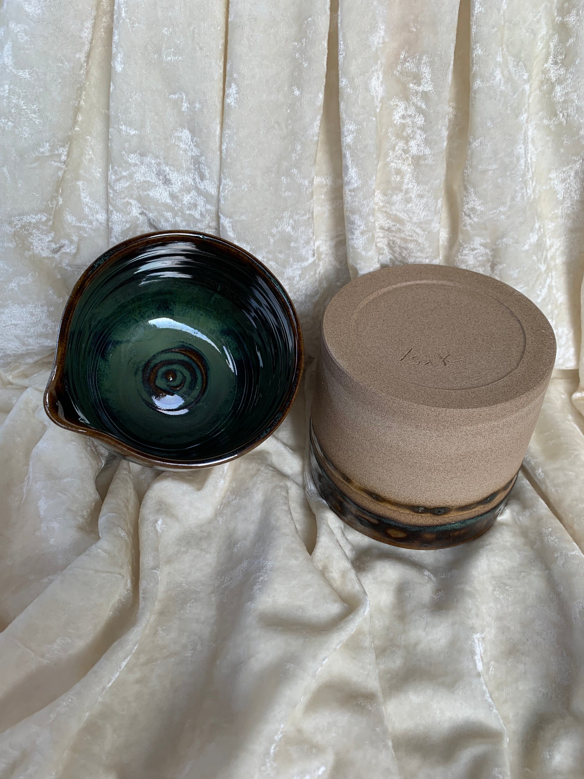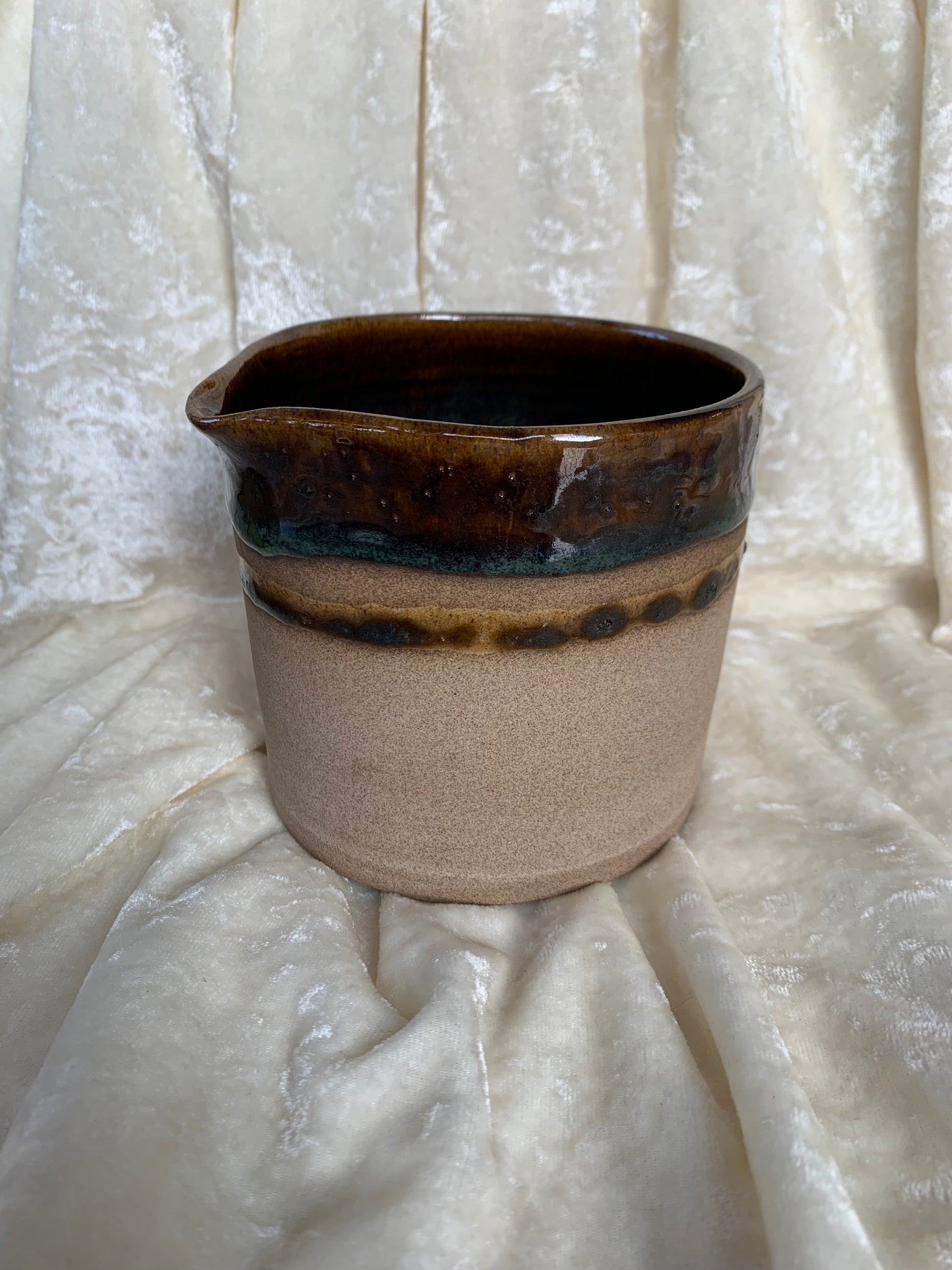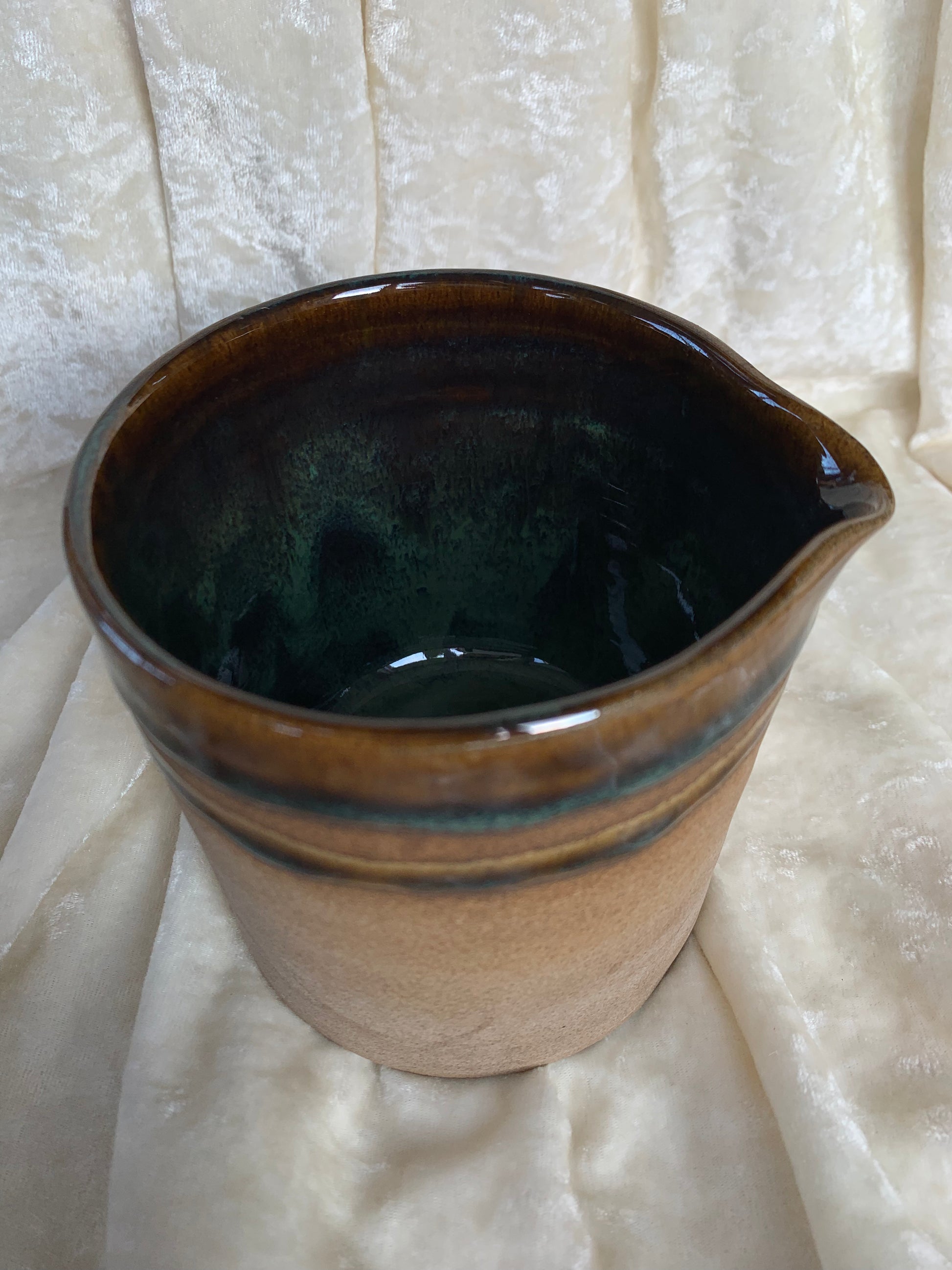 Deux magnifiques pots en grès émaillés avec bec verseur à utiliser en guise de vaisselle ou de déco (pot de fleurs par exemple), signés Isak.