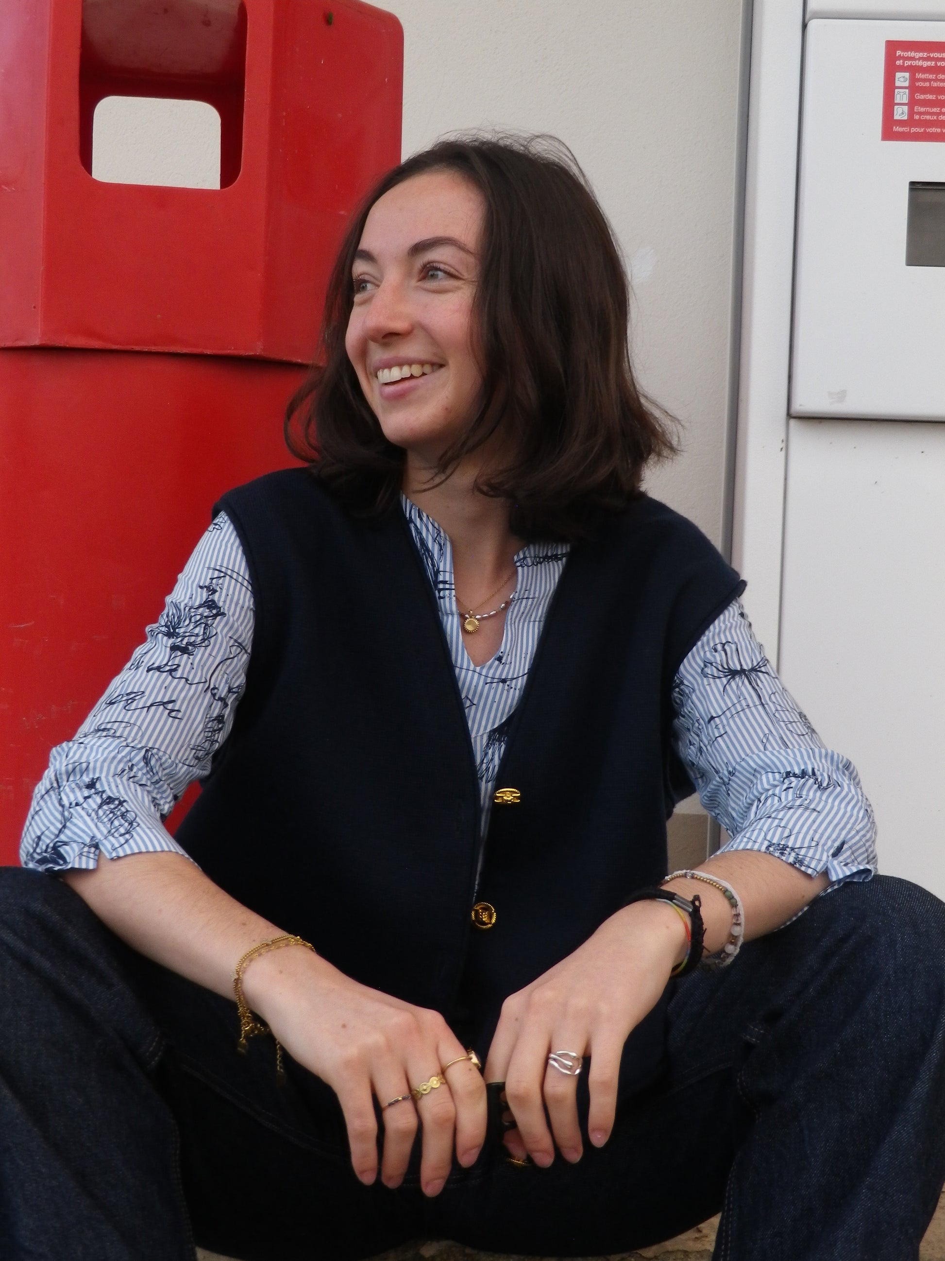 Joli gilet sans manche Pour Vous de Daxon, fabriqué en France. Bouton de rechange à l'intérieur.
