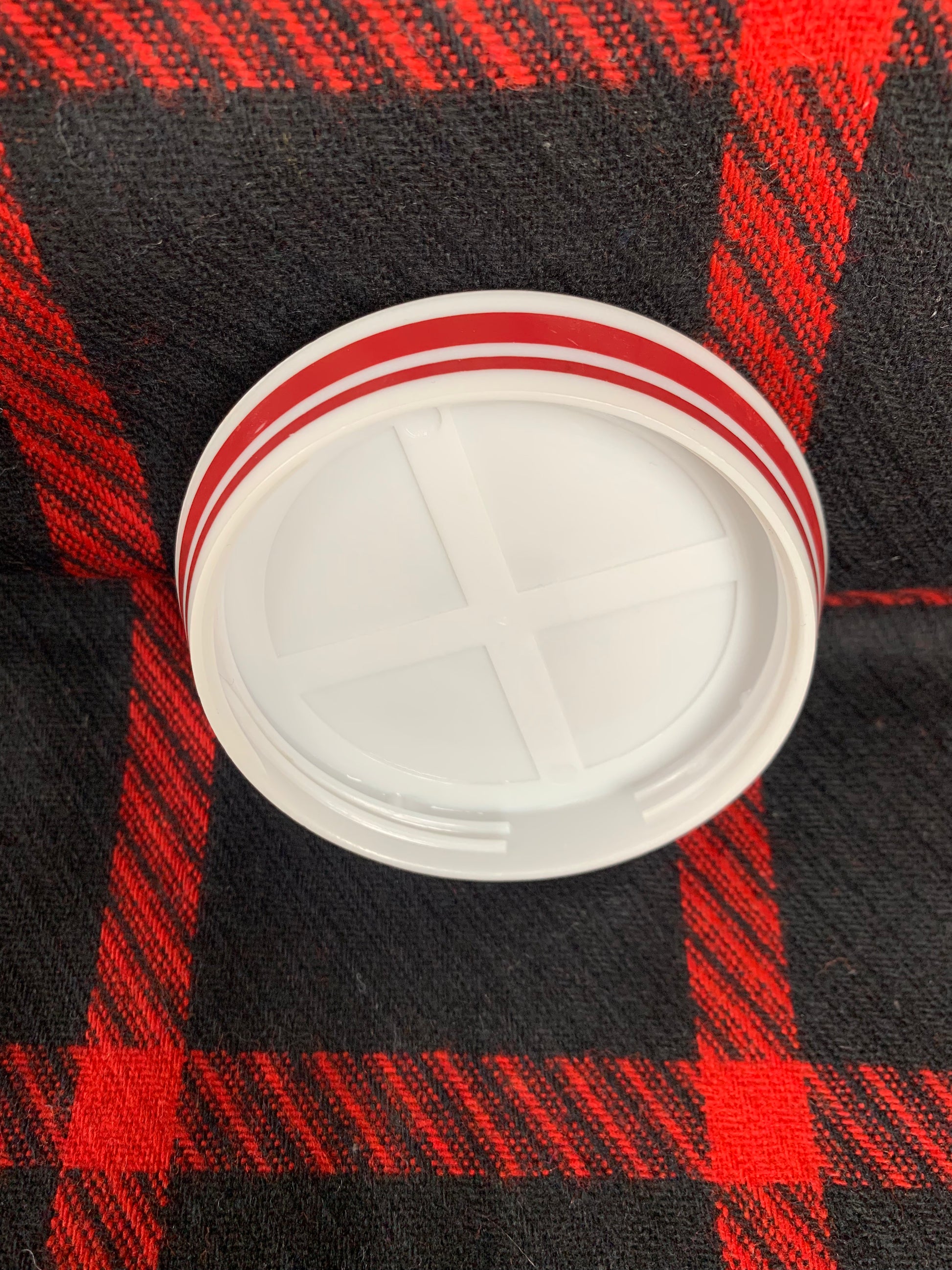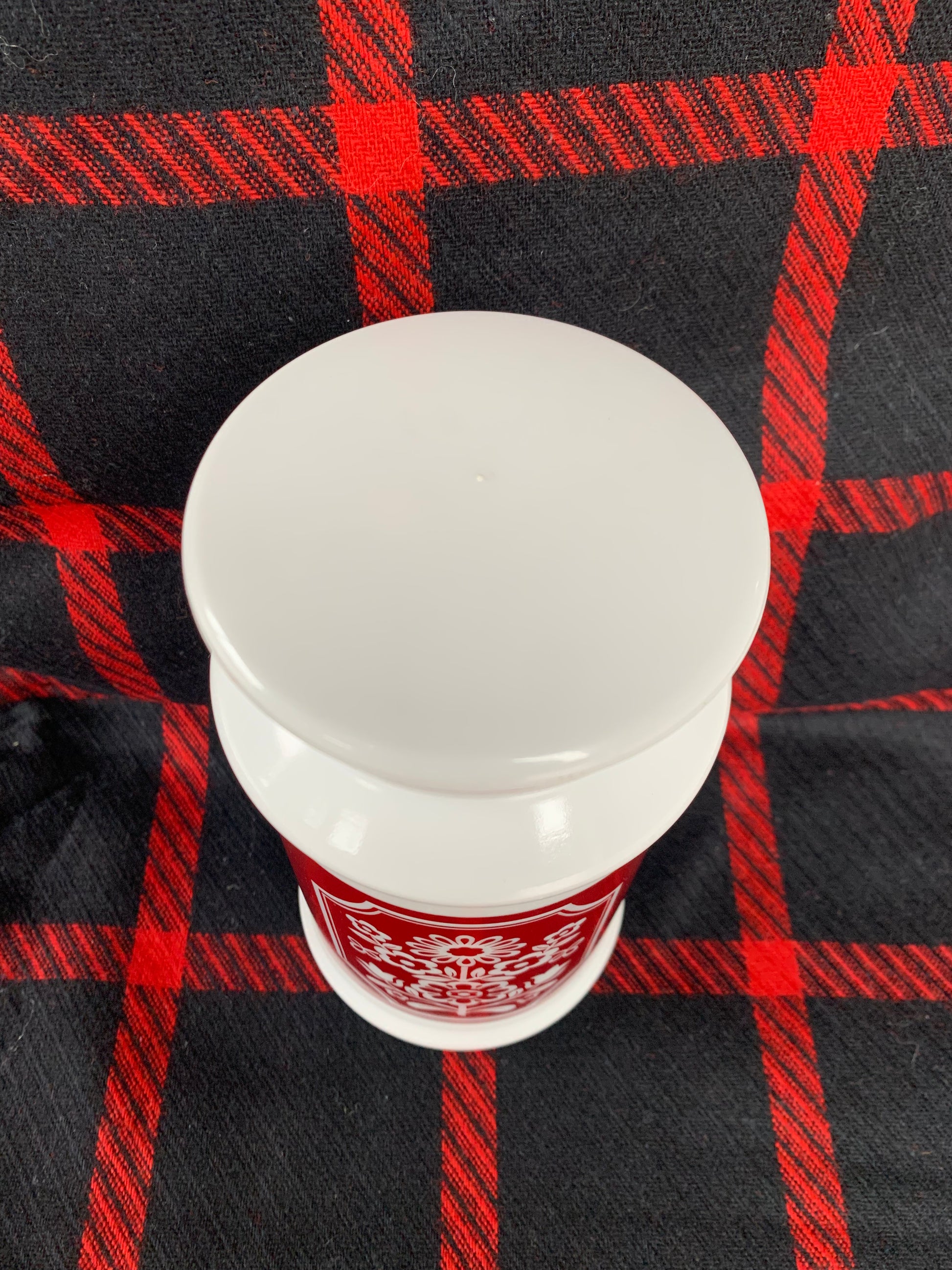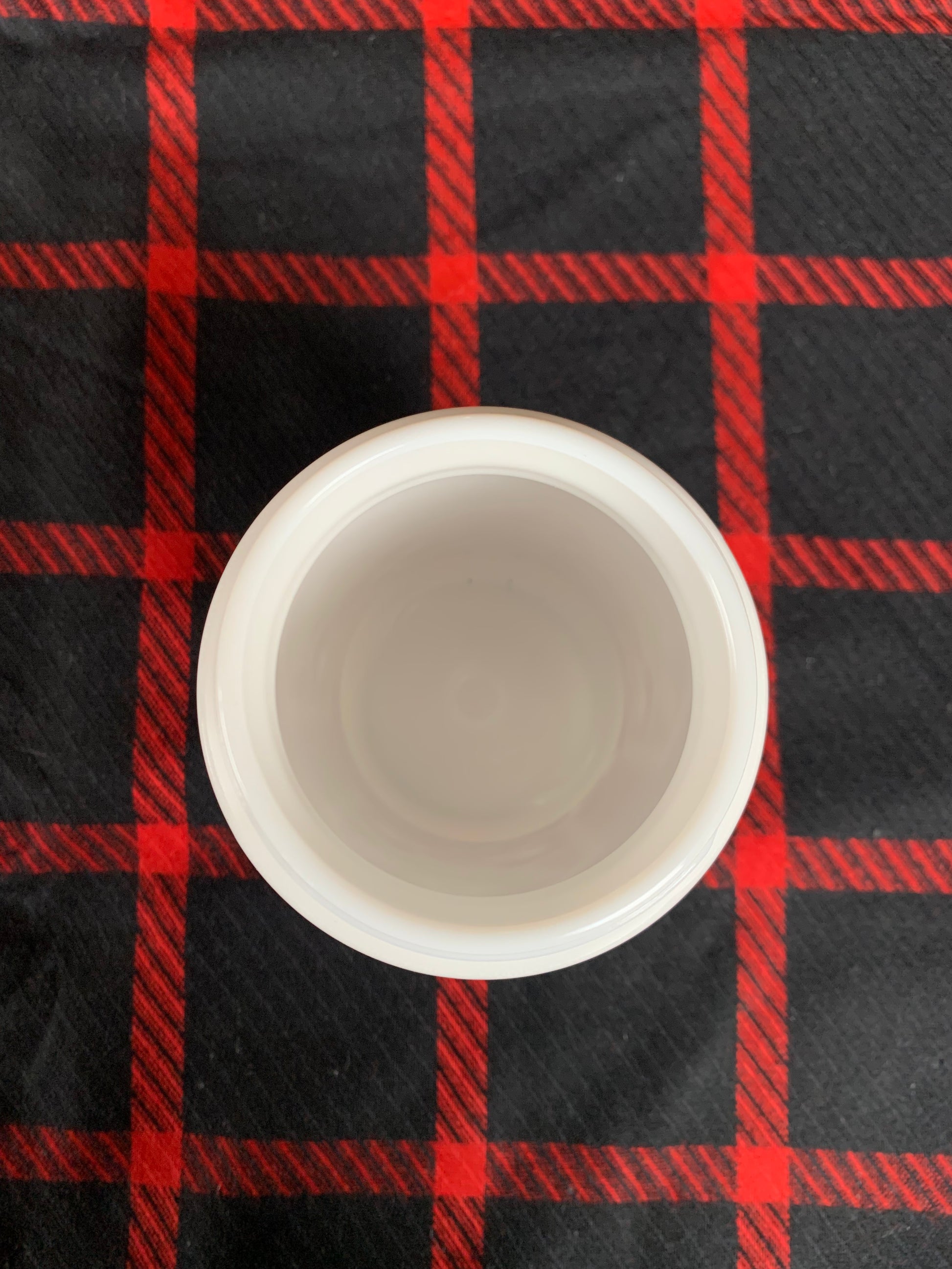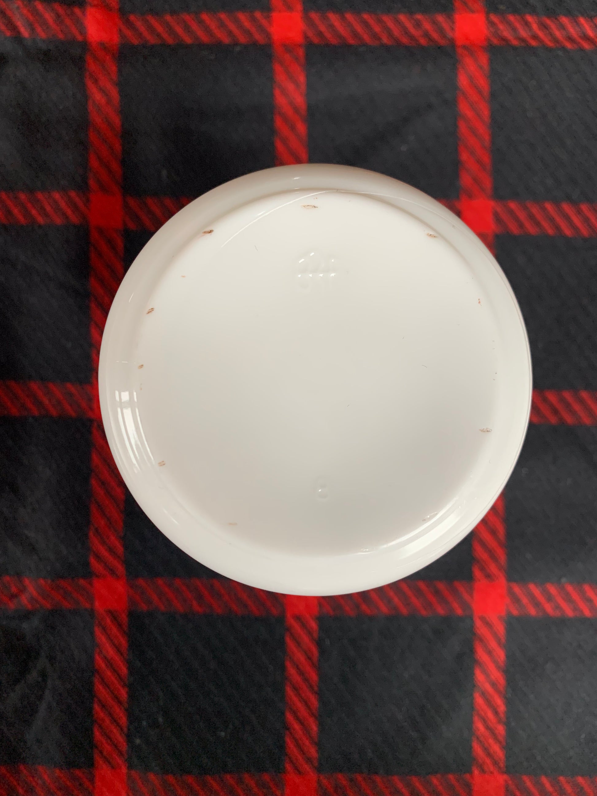 Grand bocal vintage pour ranger votre thé, votre café, vos épices, vos cotons... Les utilisations sont vastes ! Le bocal est en verre opale et le couvercle est en plastique, il ferme très bien. Le bocal est en quasi parfait état, mise à part de léger points bleus au fond à un endroit (photo), de la peinture rouge qui est partie sur un tout petit endroit à l'extérieur du bocal (photo), & de légères traces brunes sur le couvercle (photo).