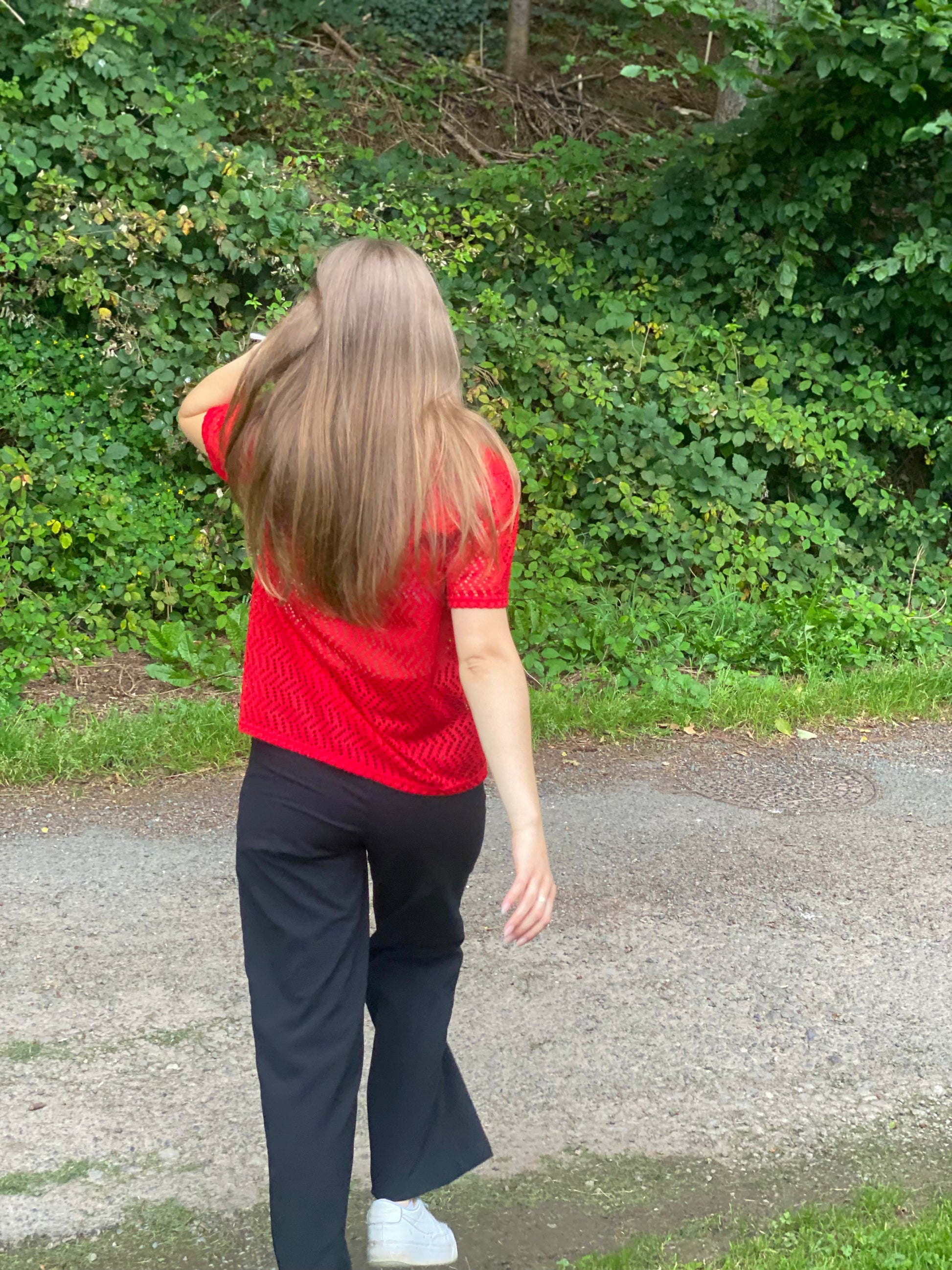Petit haut vintage rouge vif de la marque Miss Jade Paris. Taille femme : M
