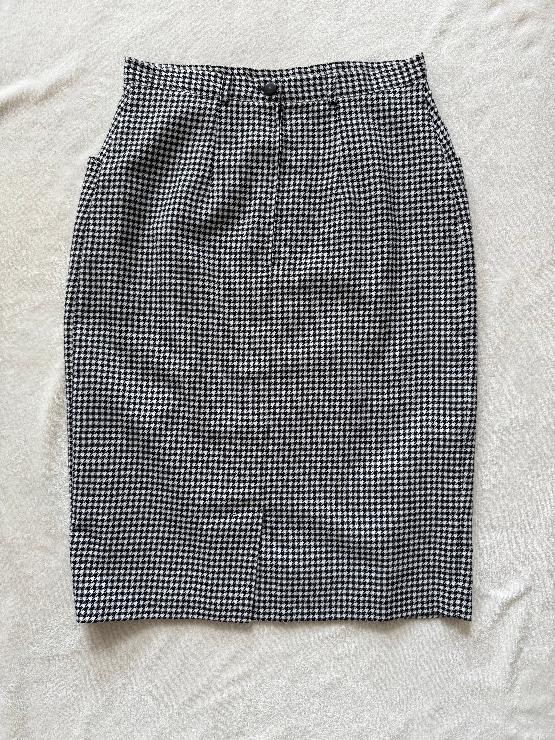 Magnifique jupe vintage motif pied de poule de la marque Emma Pernelle. Sur l'étiquette il y a marqué taille 42, mais aujourd'hui elle correspond davantageà une taille M / 36 / 38. (vérifiez bien les dimensions ci-dessous). 60% polyester, 40% viscose.
