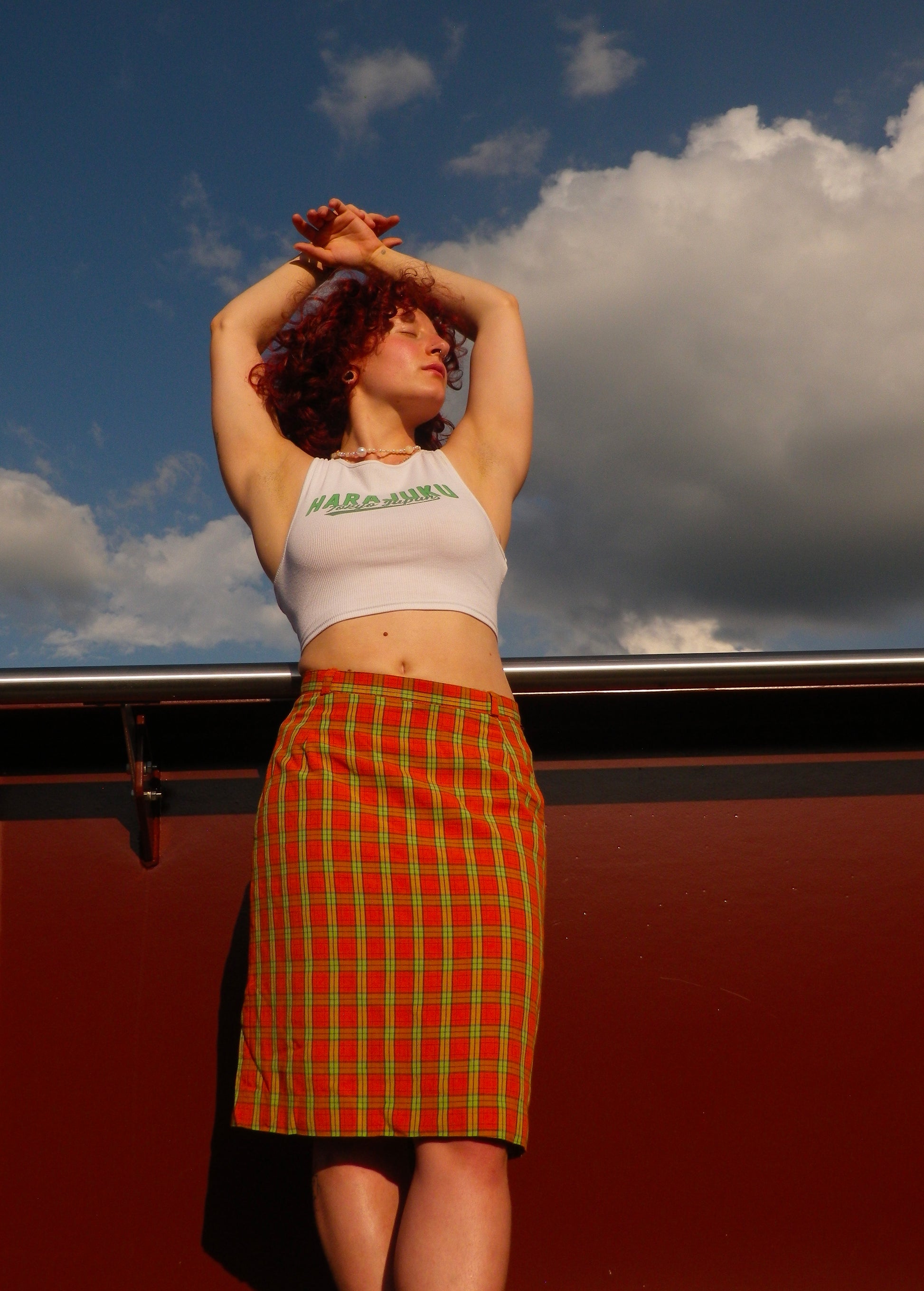 Jupe mi-longue orange & verte à carreaux T.36 / 38