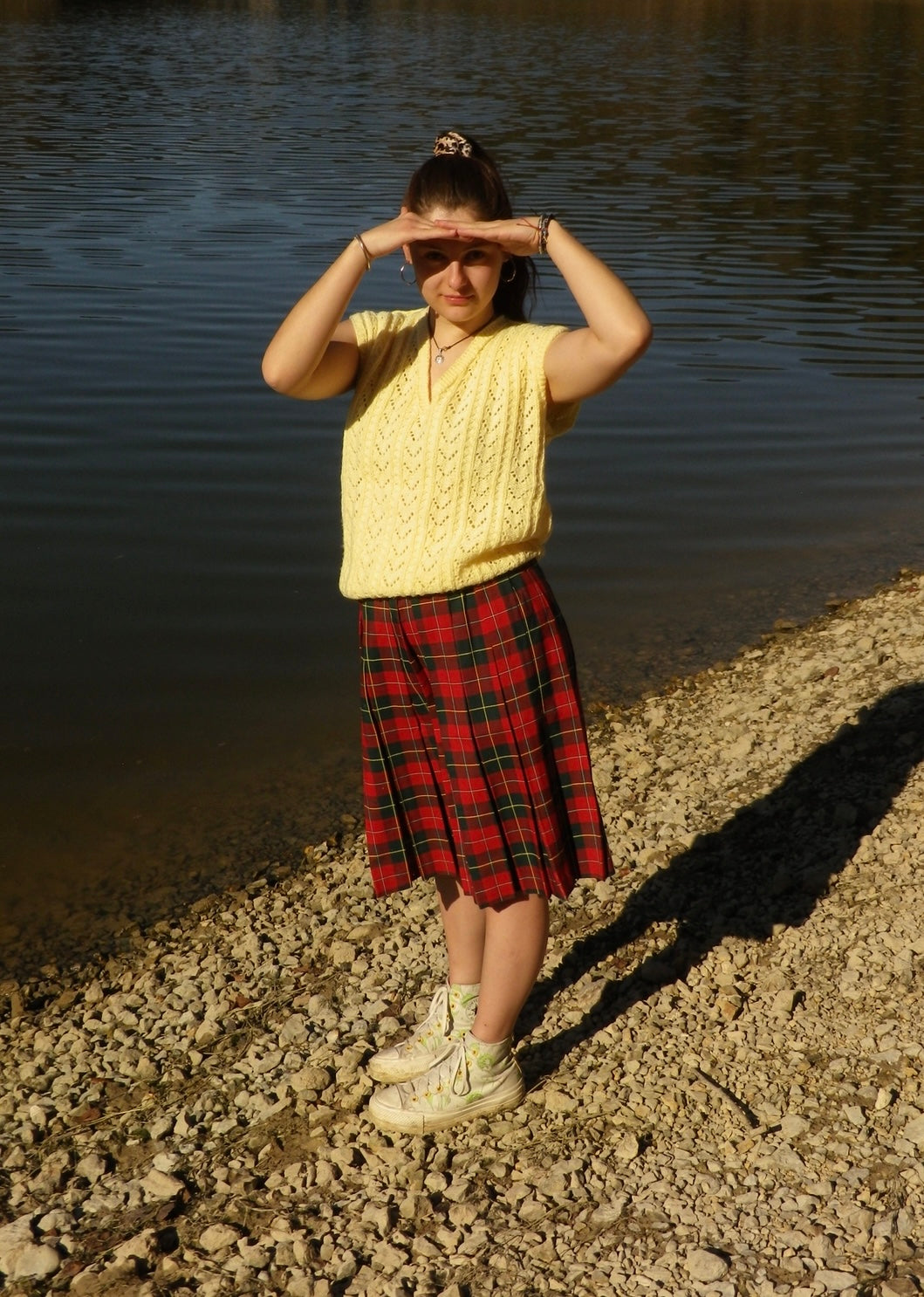 Superbe jupe plissée Tergal, en polyester et en laine.