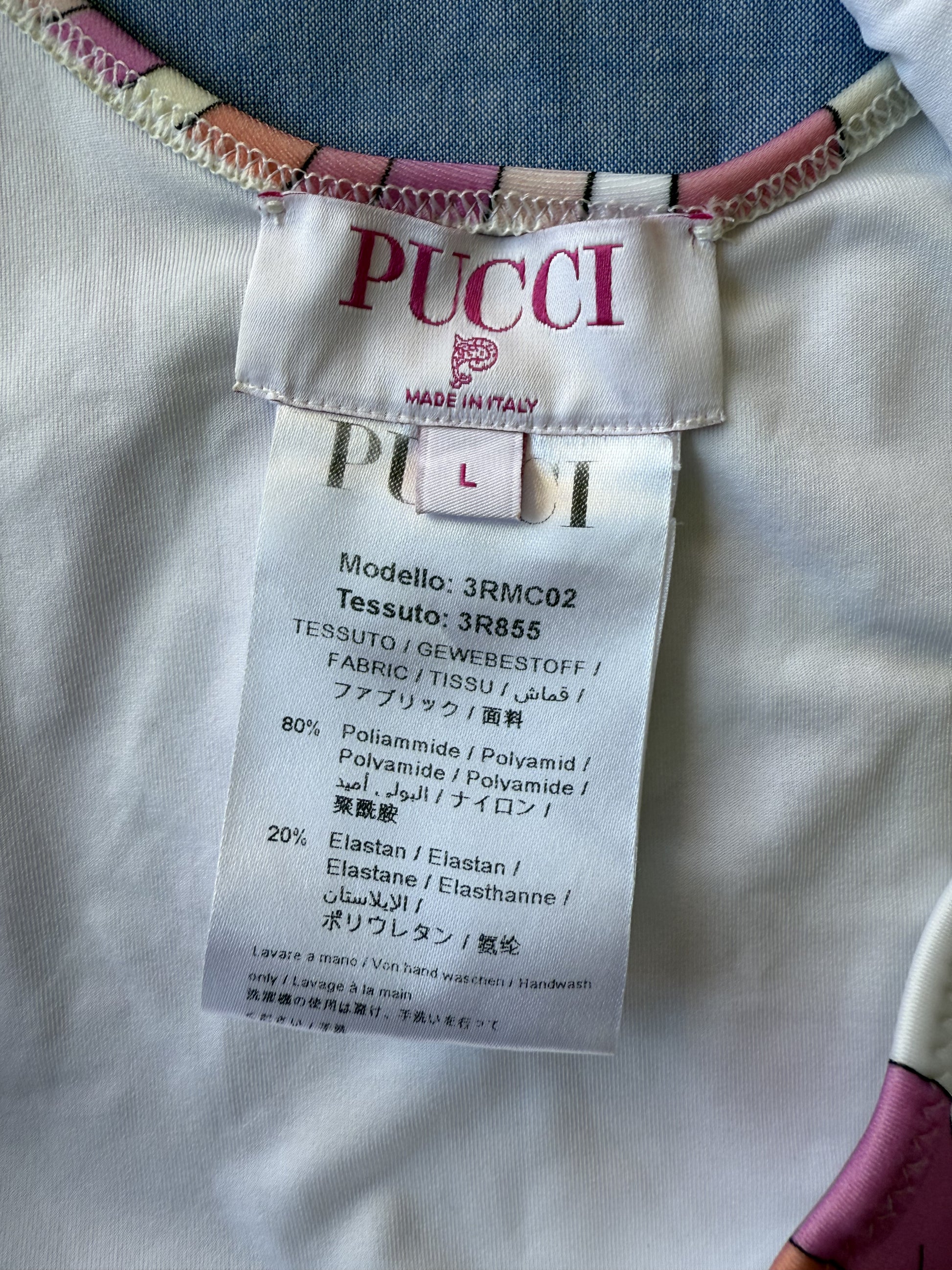 Magnifique maillot de bain une pièce de la marque Pucci, vendu neuf à 390€. Made in Italy, 80% polyamide 20% élasthanne. Maillot de bain de seconde main mais il est en parfait état, aucune trace au niveau de l'entrejambe comme vous pouvez le voir sur la photo.