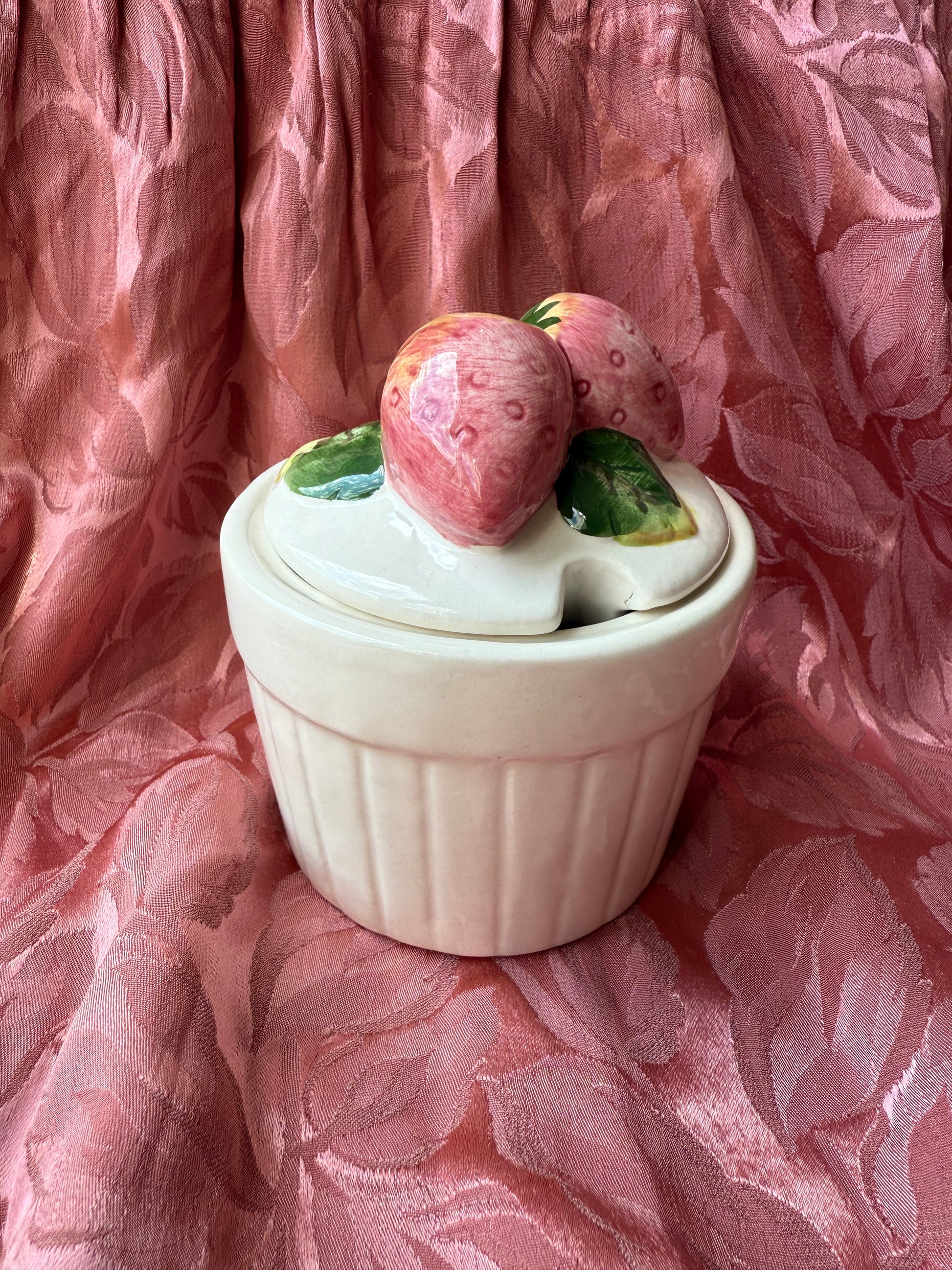 Petit pot de confiture / confiturier avec des fraises en céramique