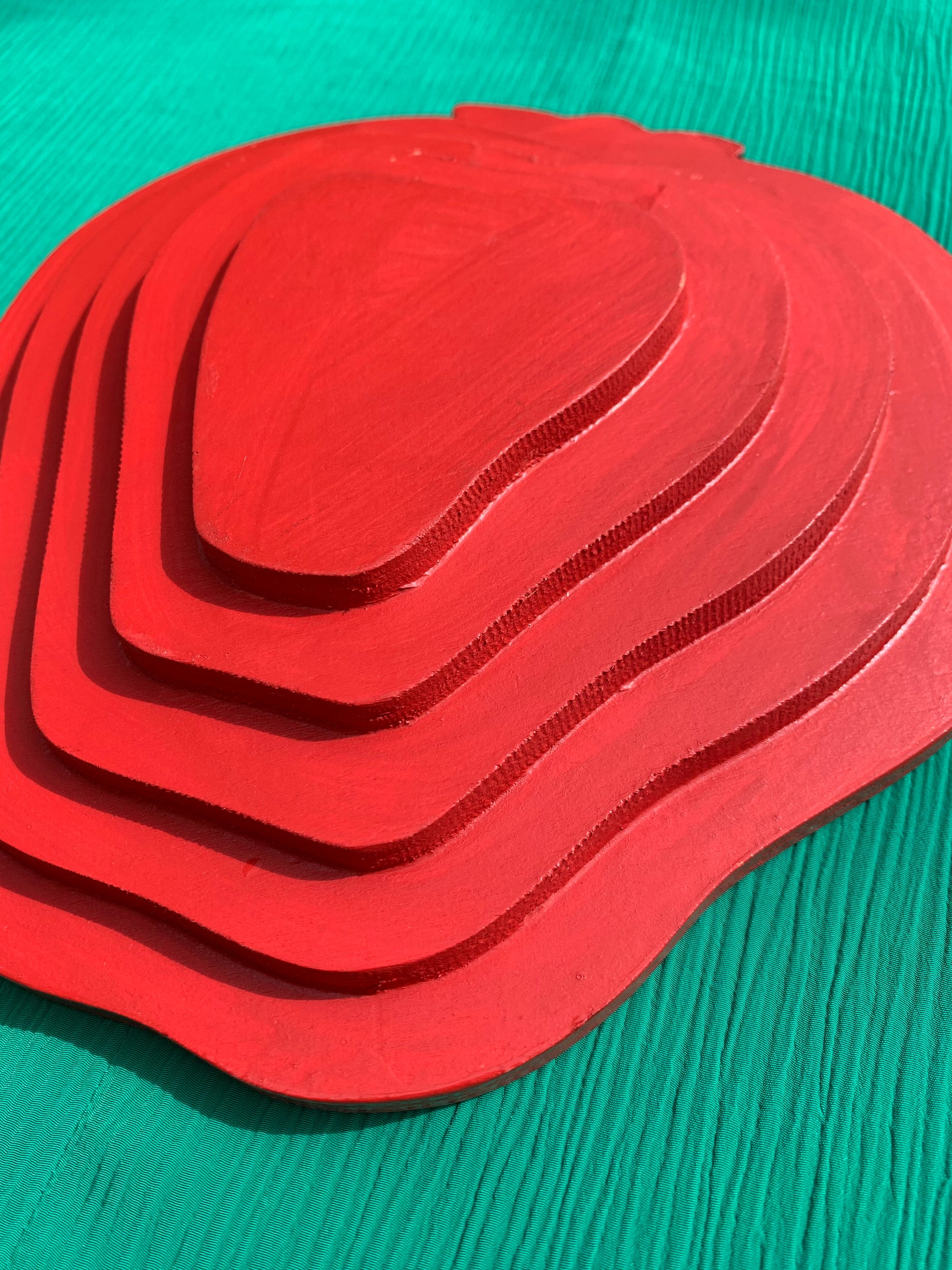Plat / vide poche en forme de fraise fait en bois et peint à la main.