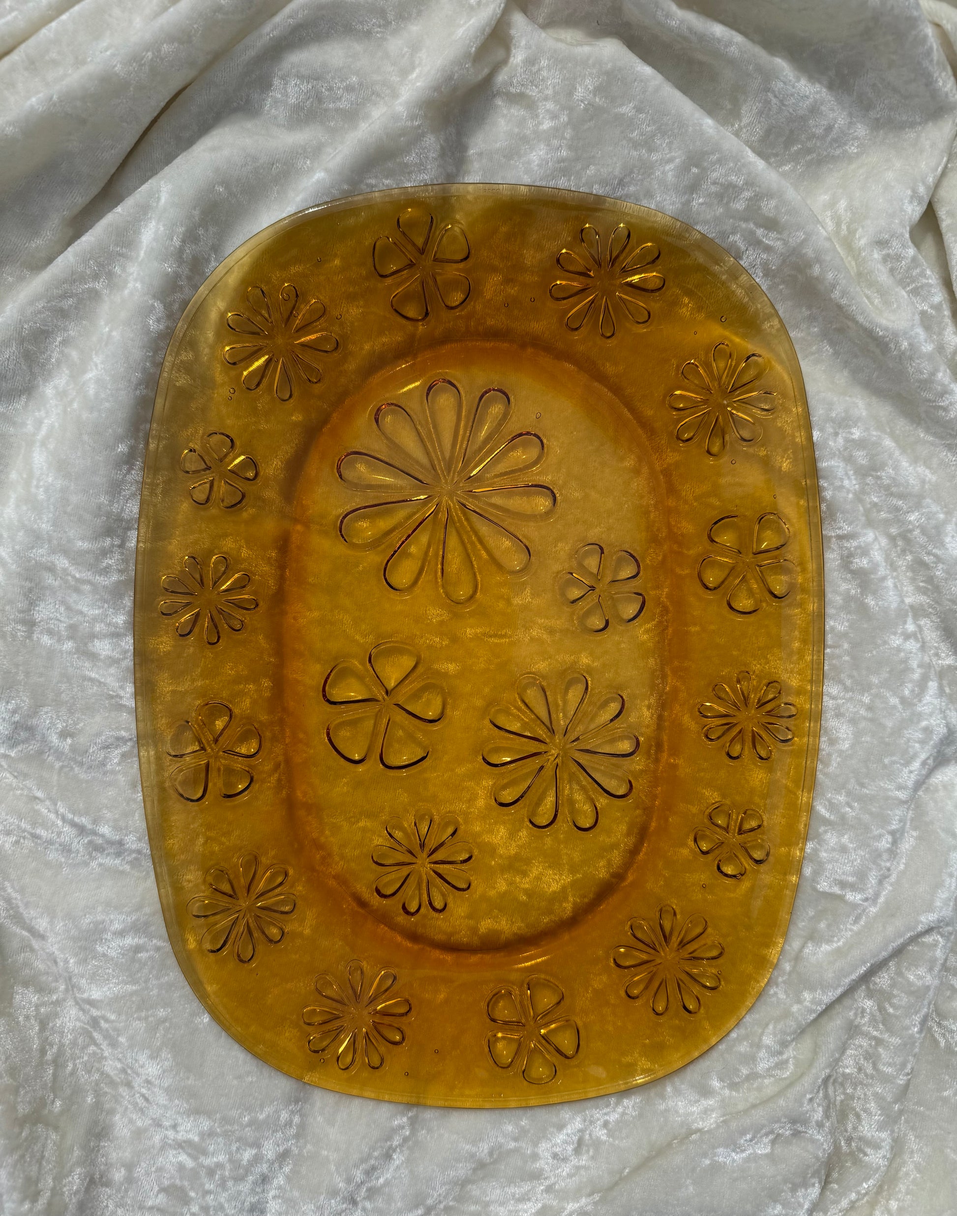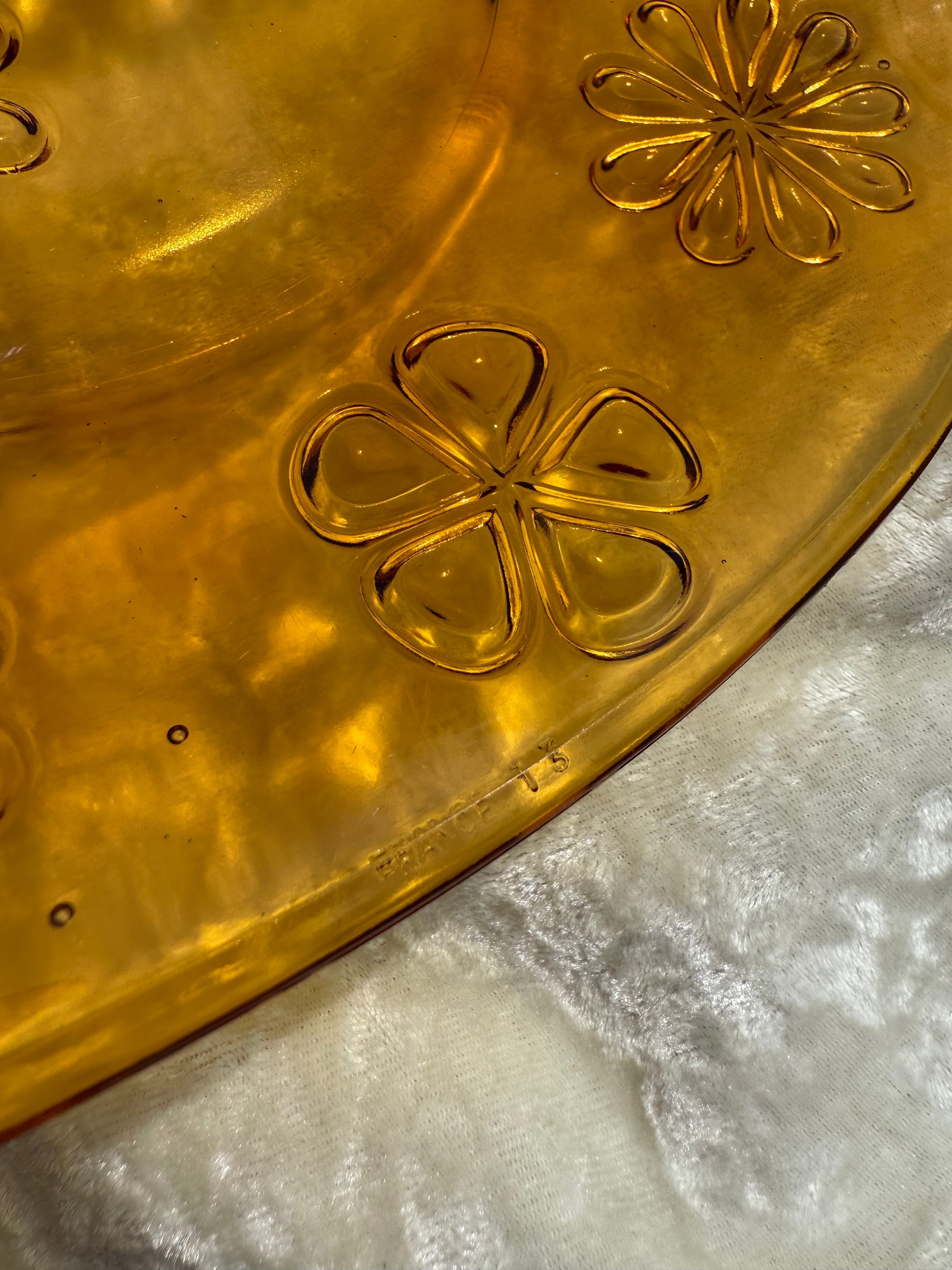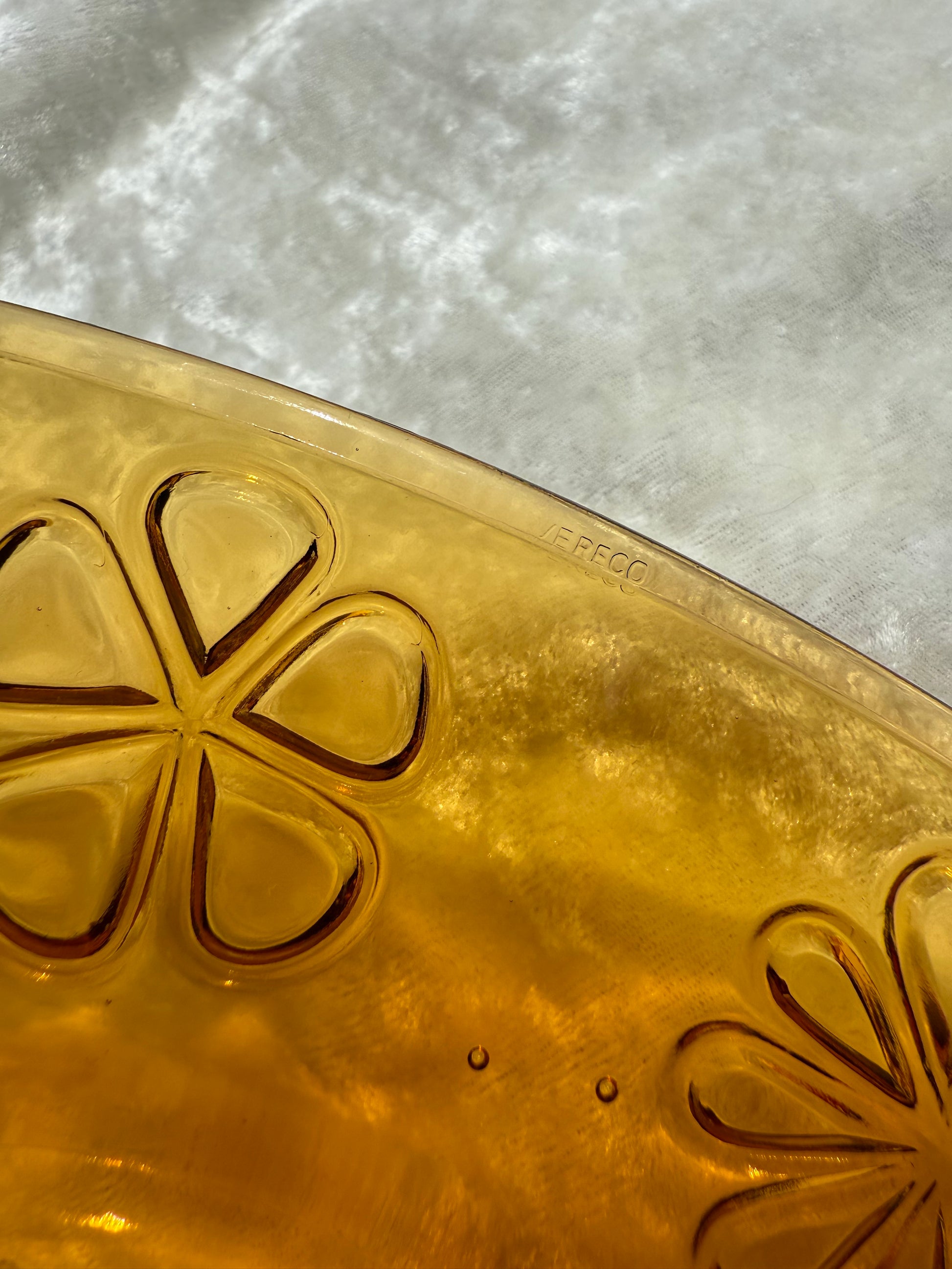 Plateau Vereco Daisy Flower en verre ambré 70s
