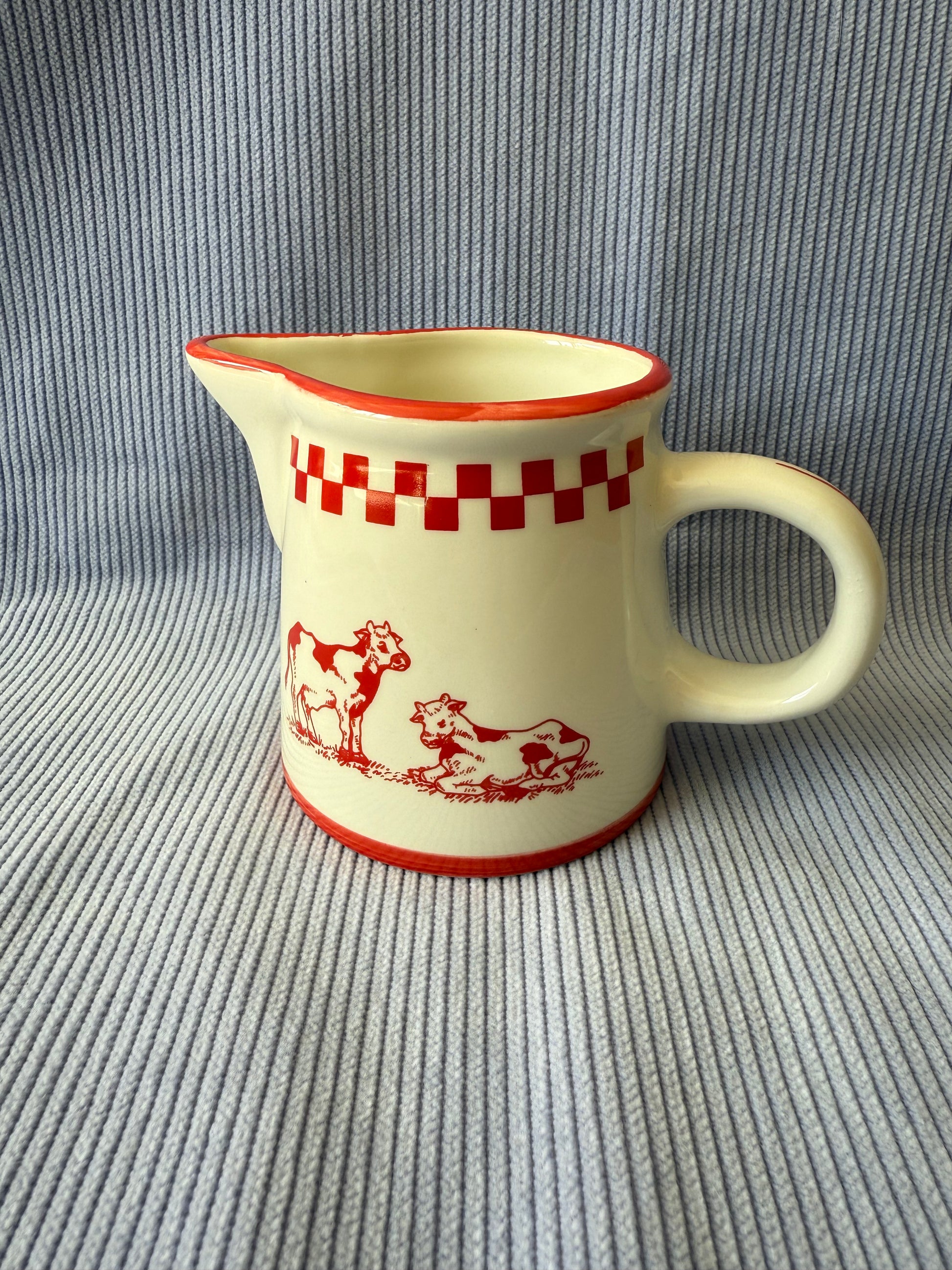 Pot à crème / lait vintage en céramique motif vichy et vaches