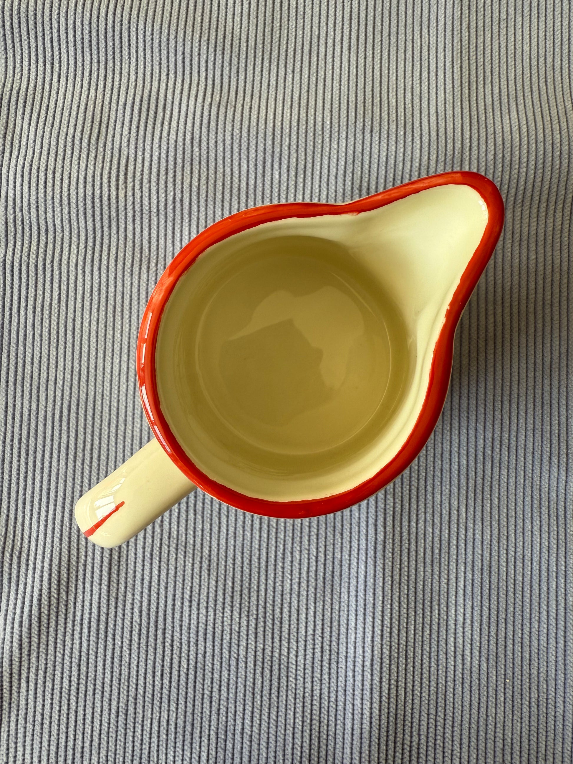 Superbe petit pot avec bec verseur, anse épaisse. Il est en parfait état, mini défaut d'émaillage (voir dernière photo).