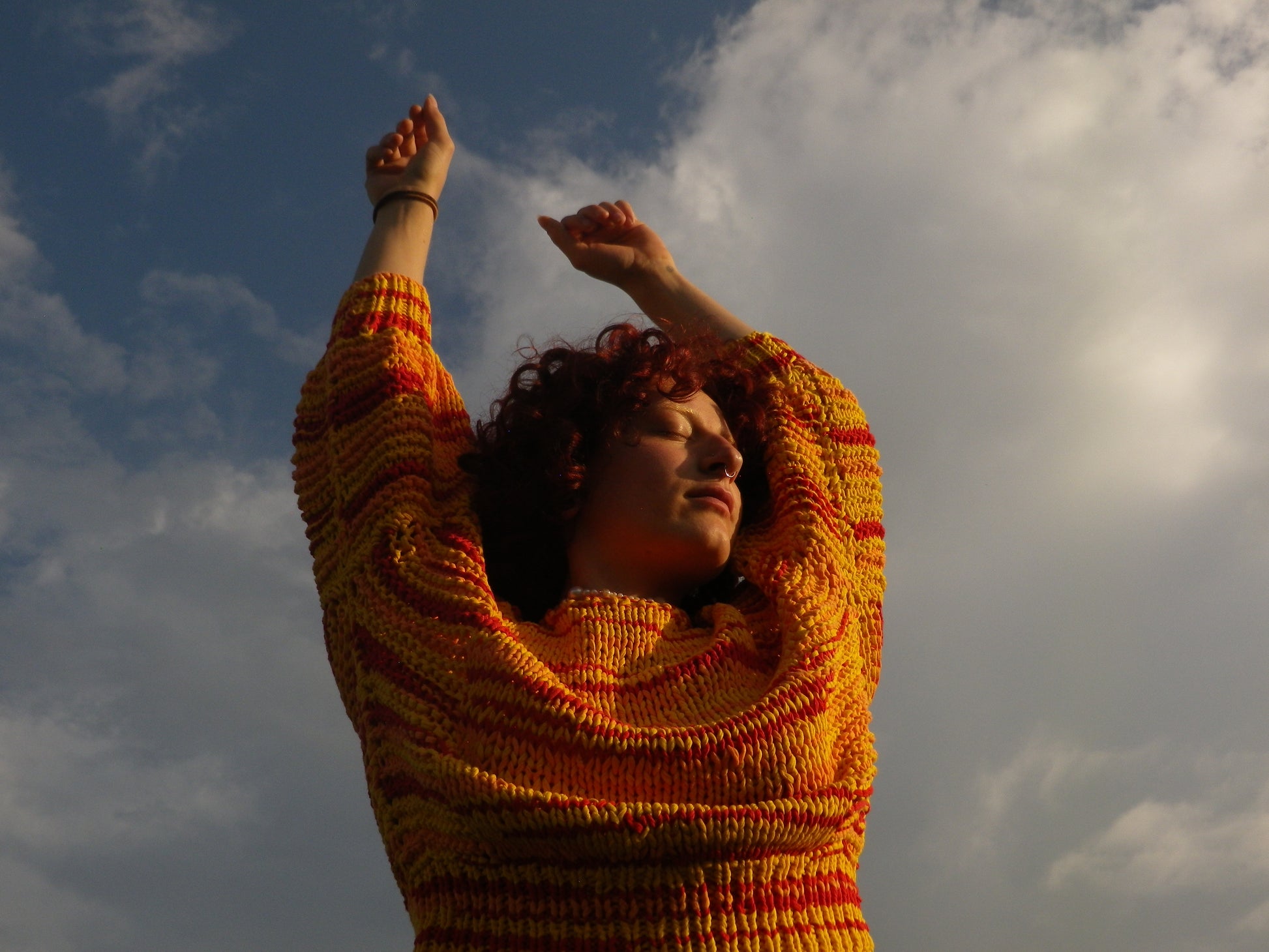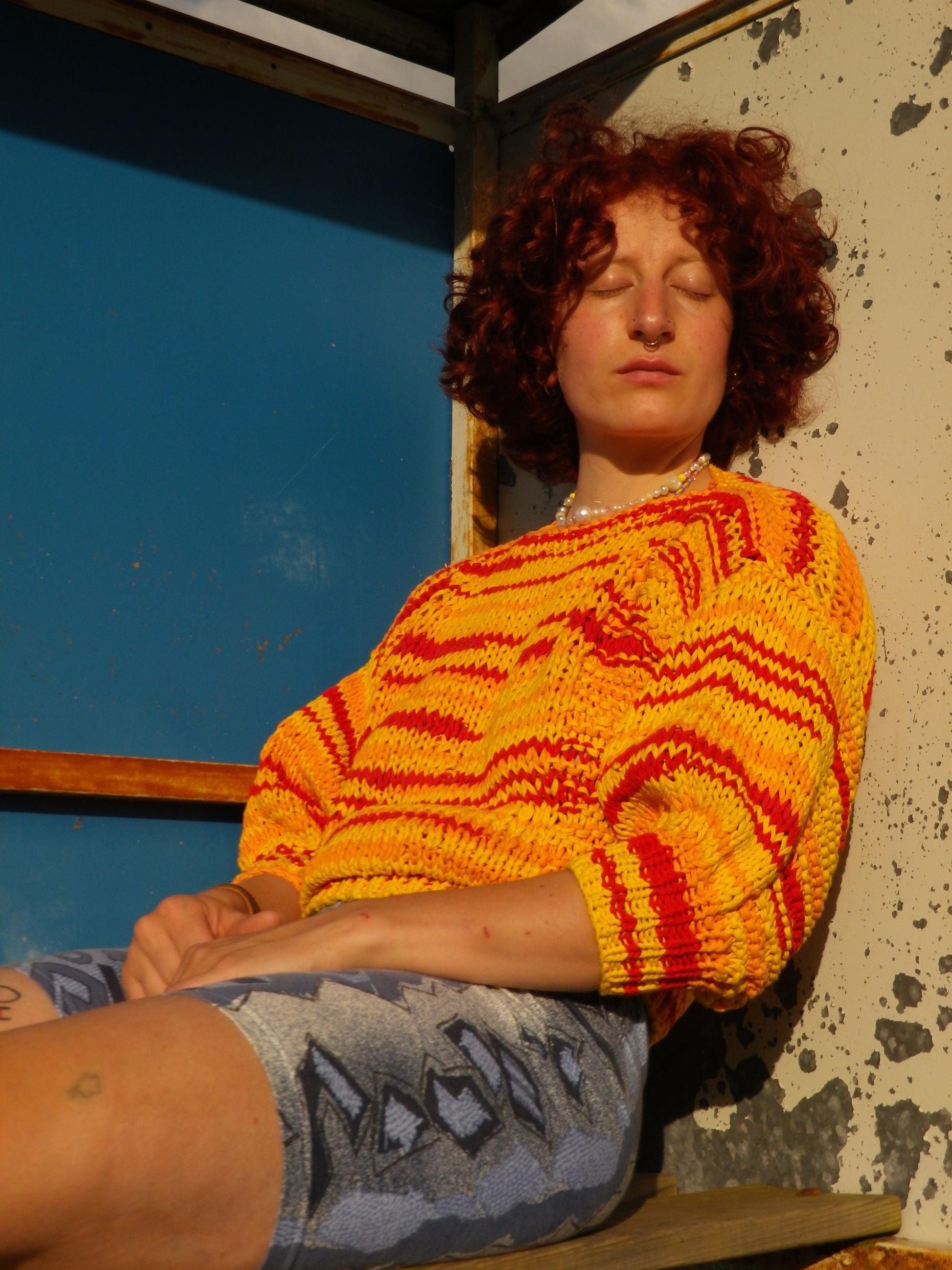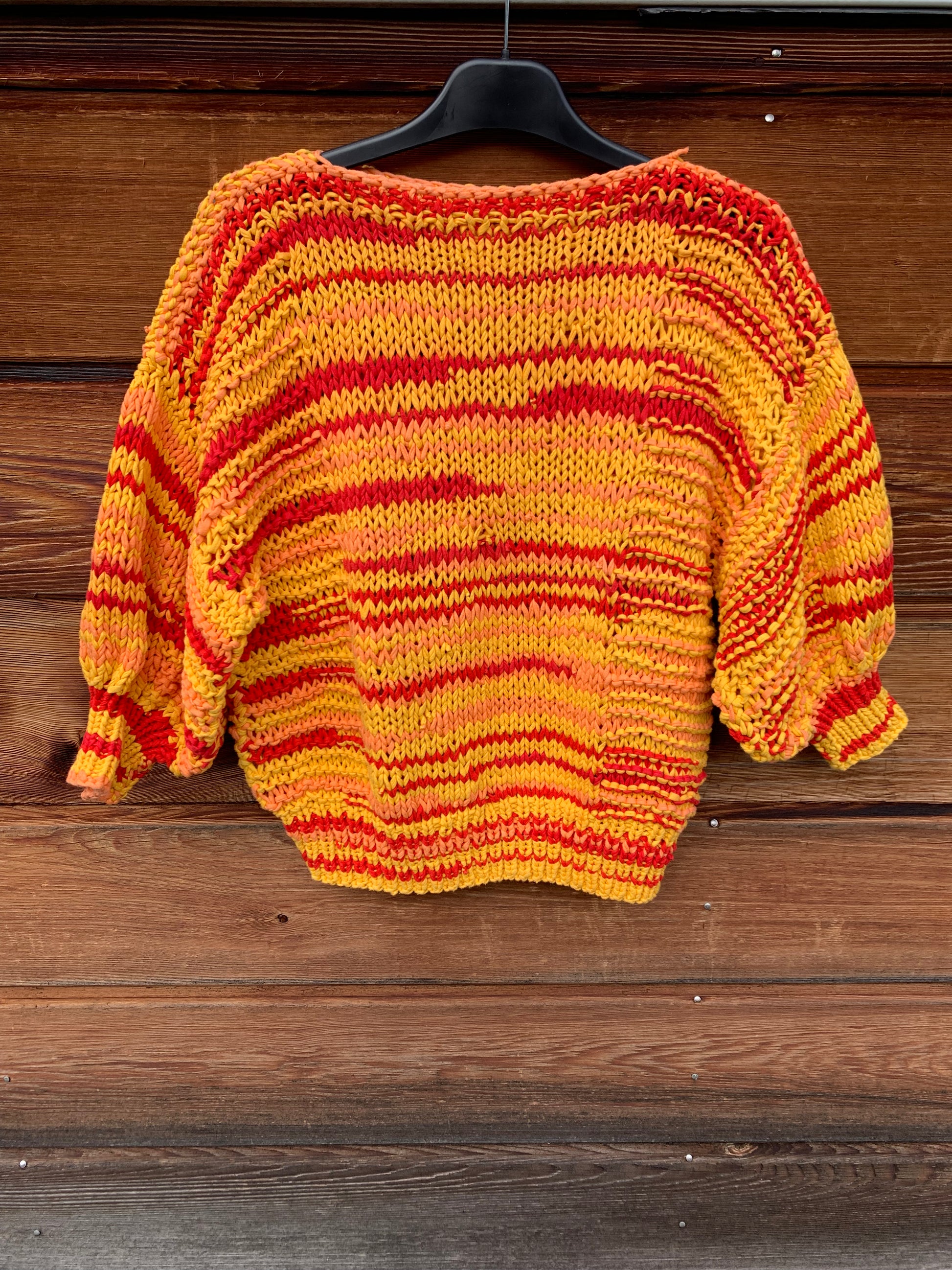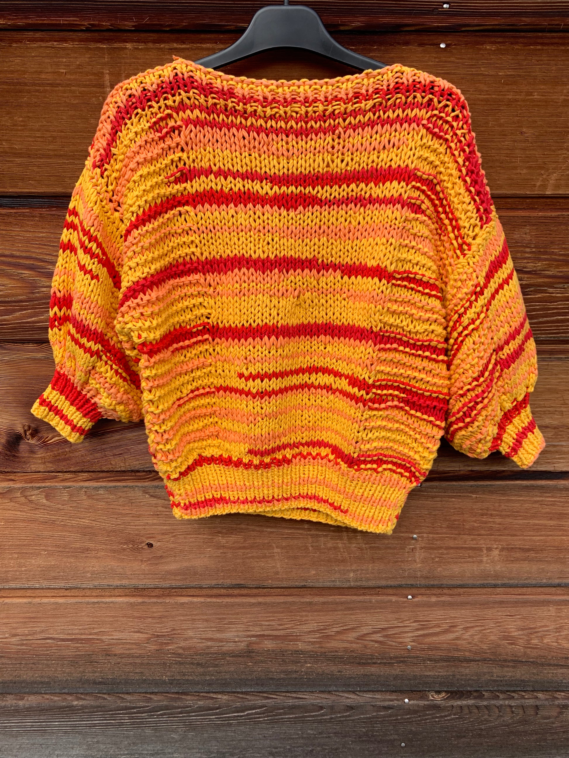 Pull tricoté à la main donc il y a quelques petites imperfections (voir photo). Il n'y a pas d'étiquette taille mais ça correspond à du S / M.
