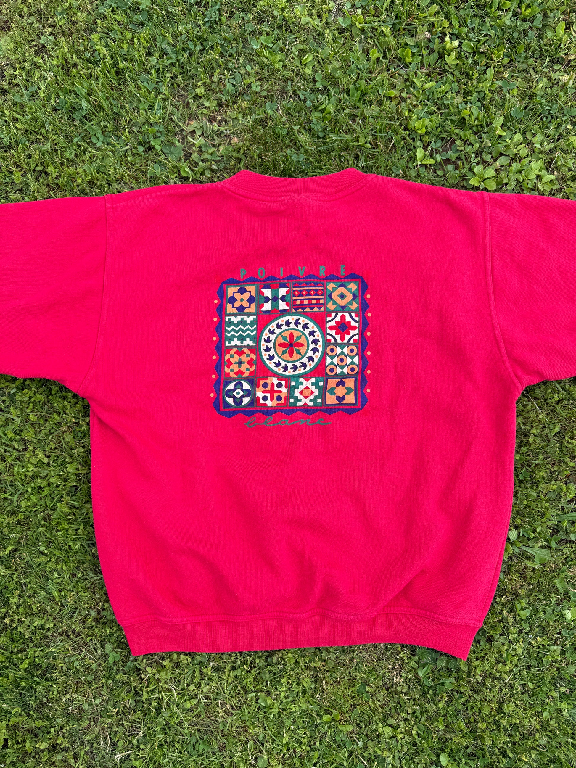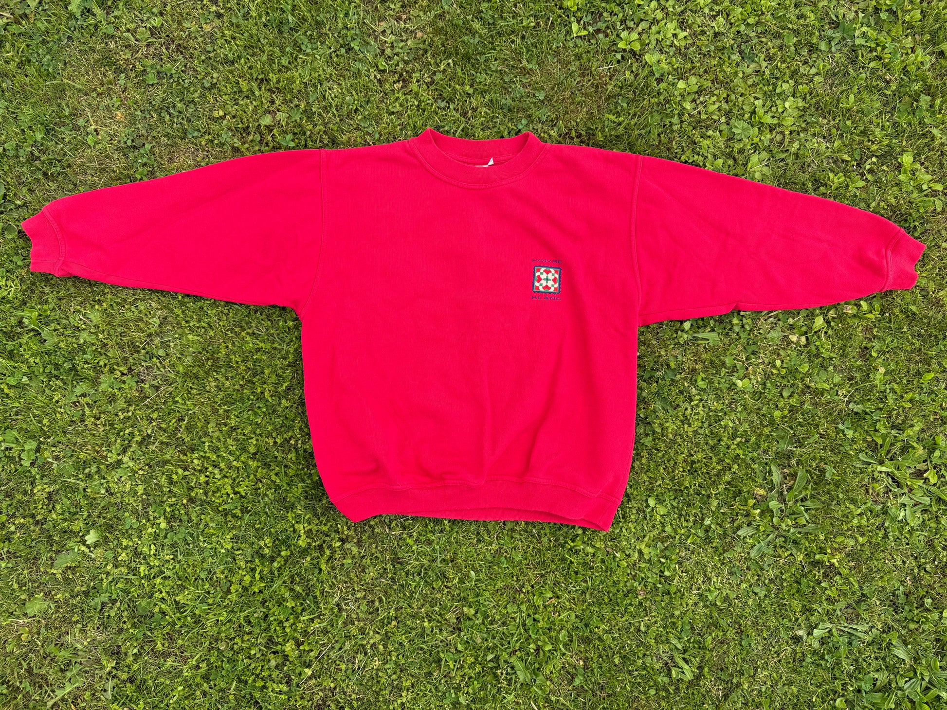 Pull vintage rouge Poivre Blanc, petit motif à l'avant et gros motif à l'arrière. Il est en super état. 70% coton, 30% polyester