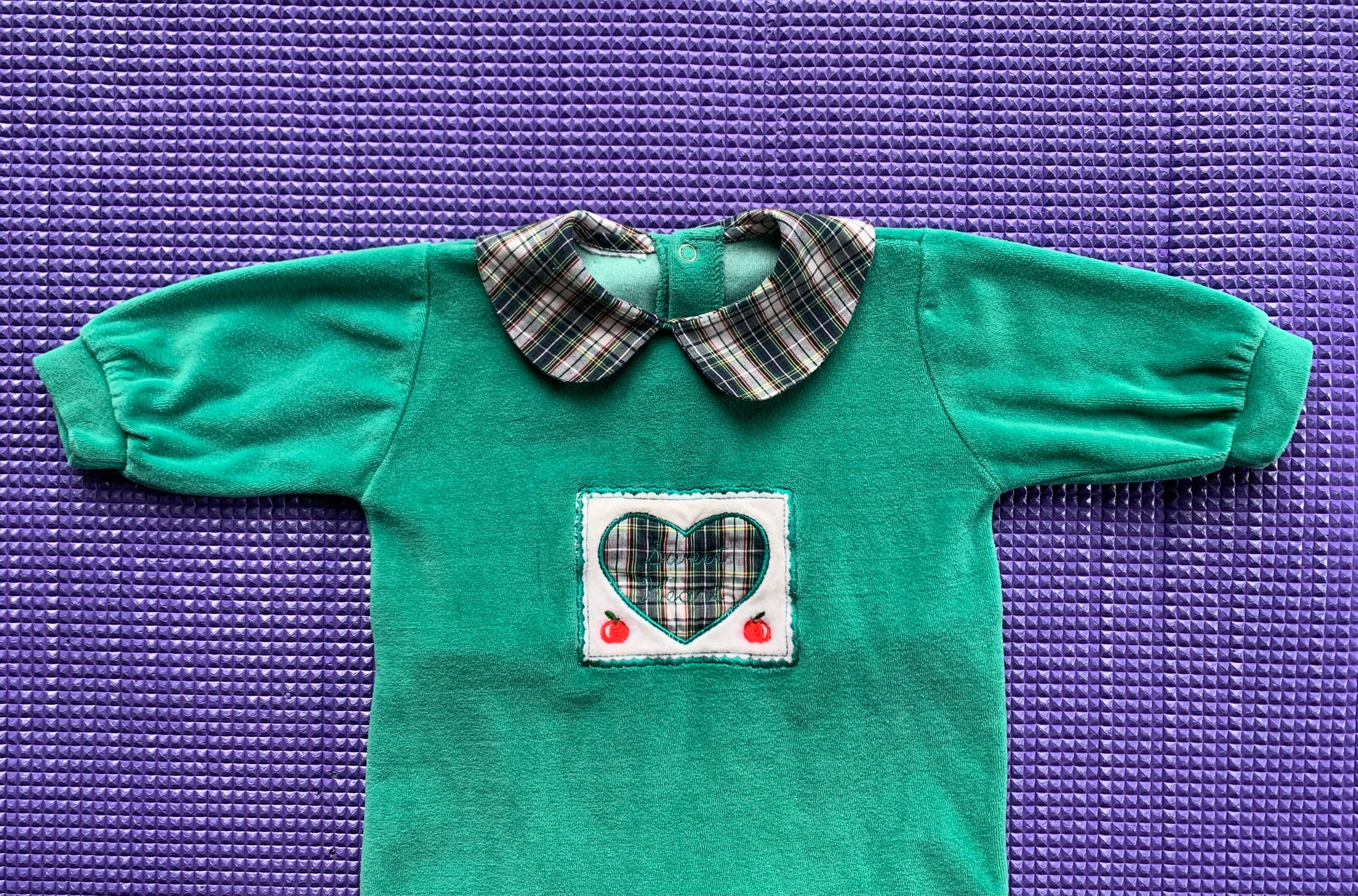 Pyjamas vintage tout doux avec l'inscription "Sweet Heart" brodée dans le coeur. L'étiquette a été retirée, il correspond à une taille 5-6 mois.