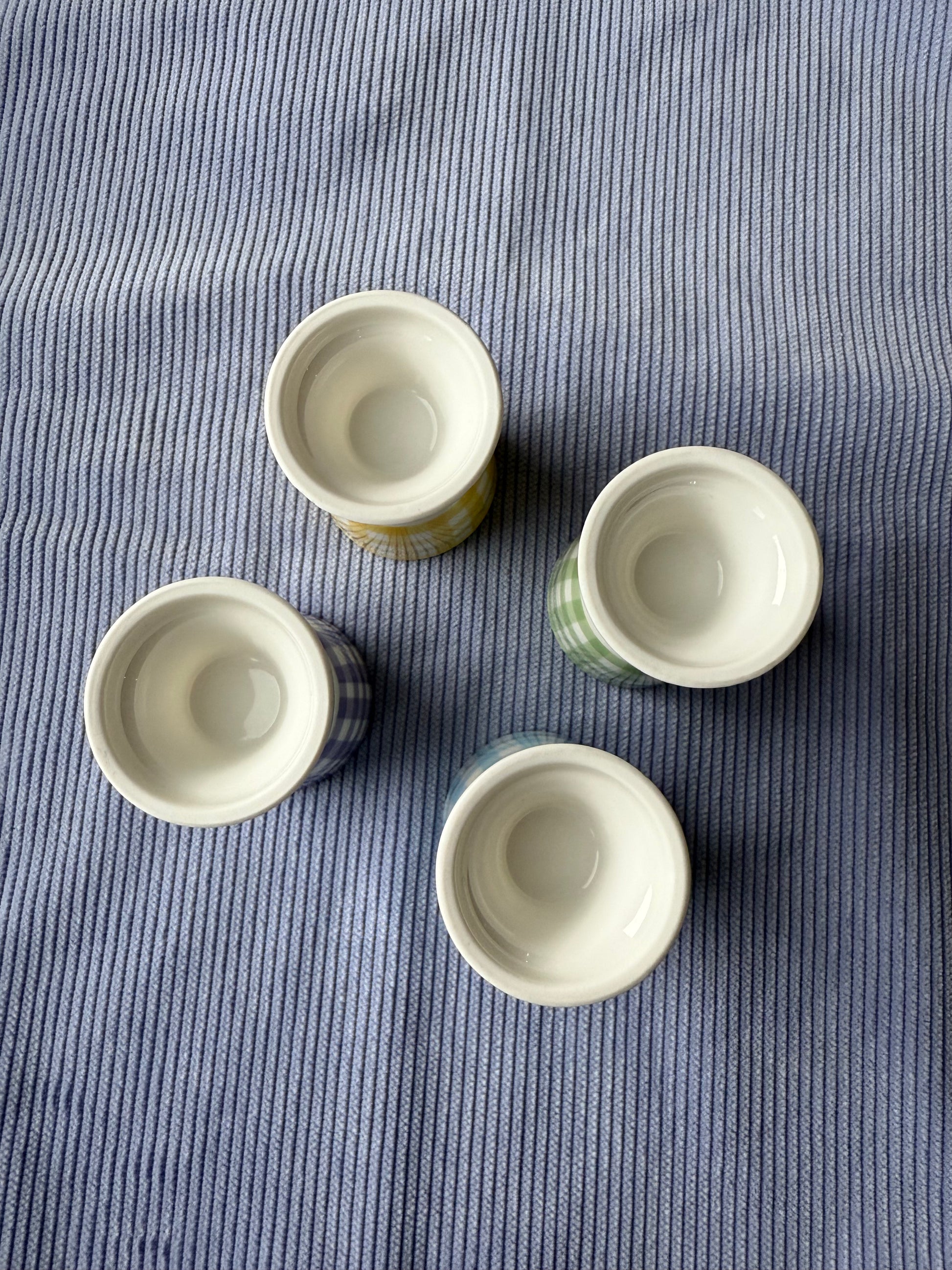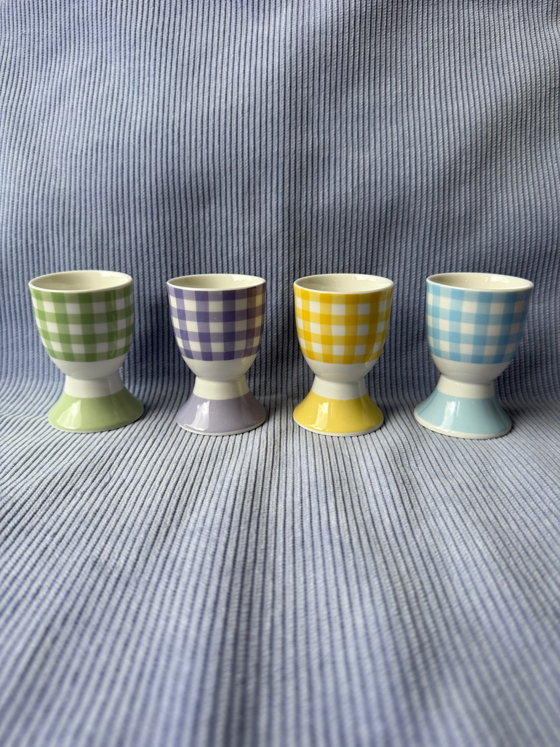 Quatre petits coquetiers à croquer ! Ils n'ont aucune marque indiquée en dessous. Ils sont en très bon état général, malgré des petites parties de peintures manquante.