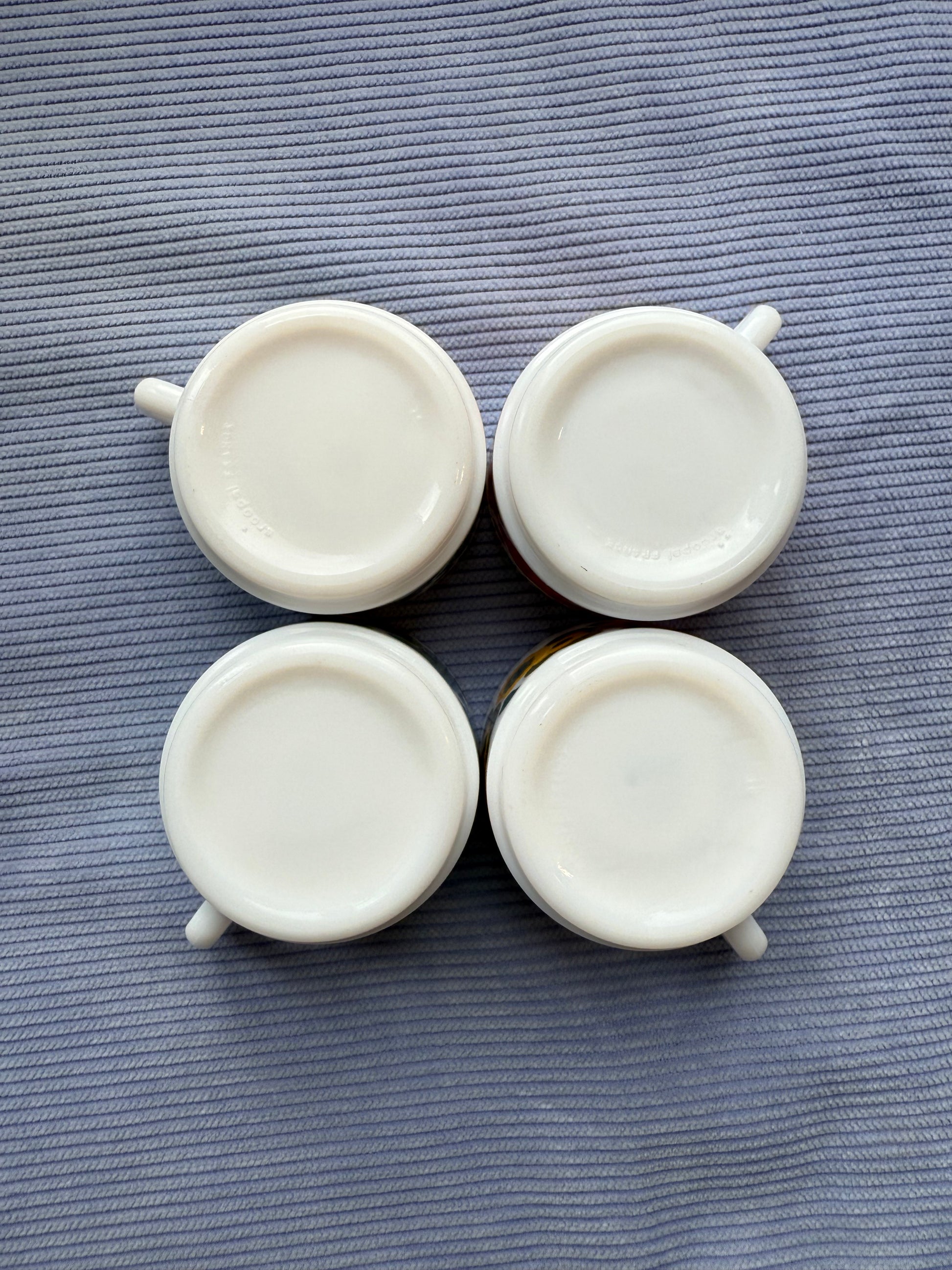 Quatre jolies tasses vintage Lotus de la marque Arcopal France. Elles sont en très bon état général, quelques petites marques d'usure au niveau des fleurs mais rien de très visible.