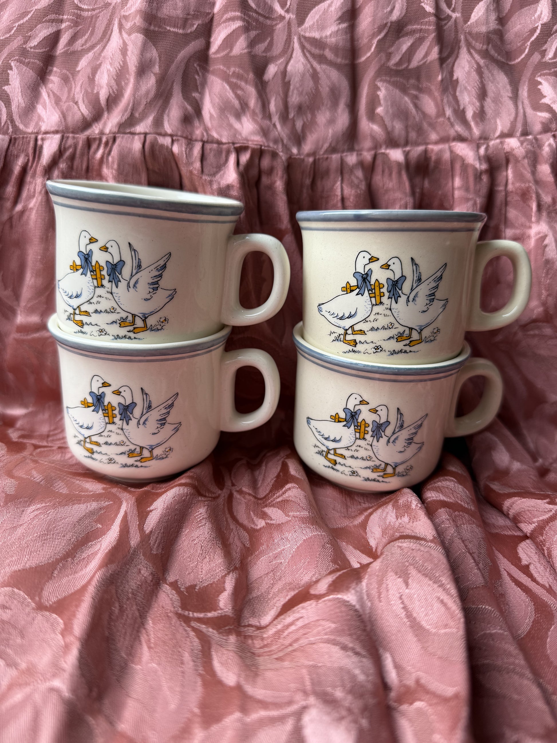 Quatre tasses à café oies en grès