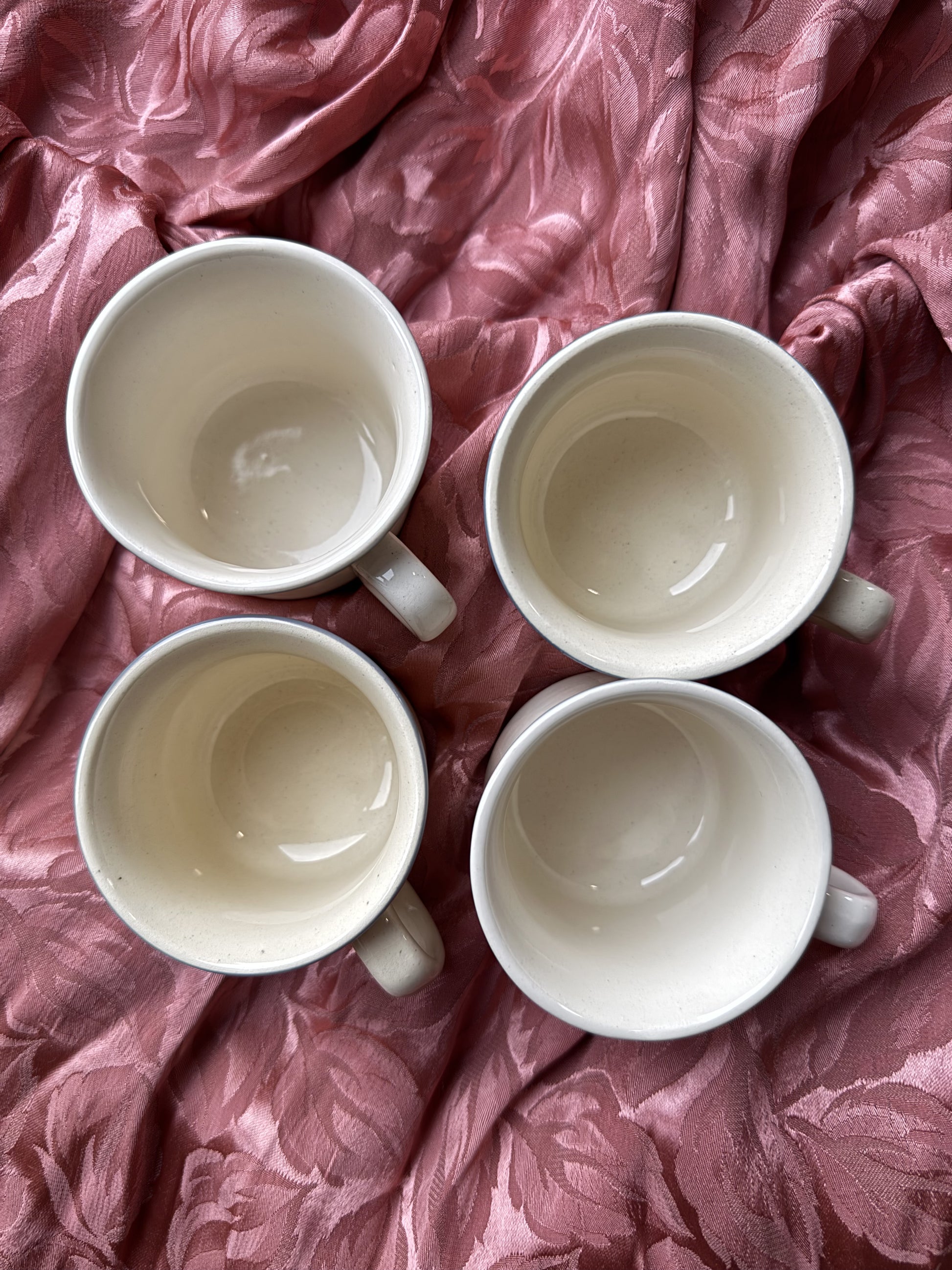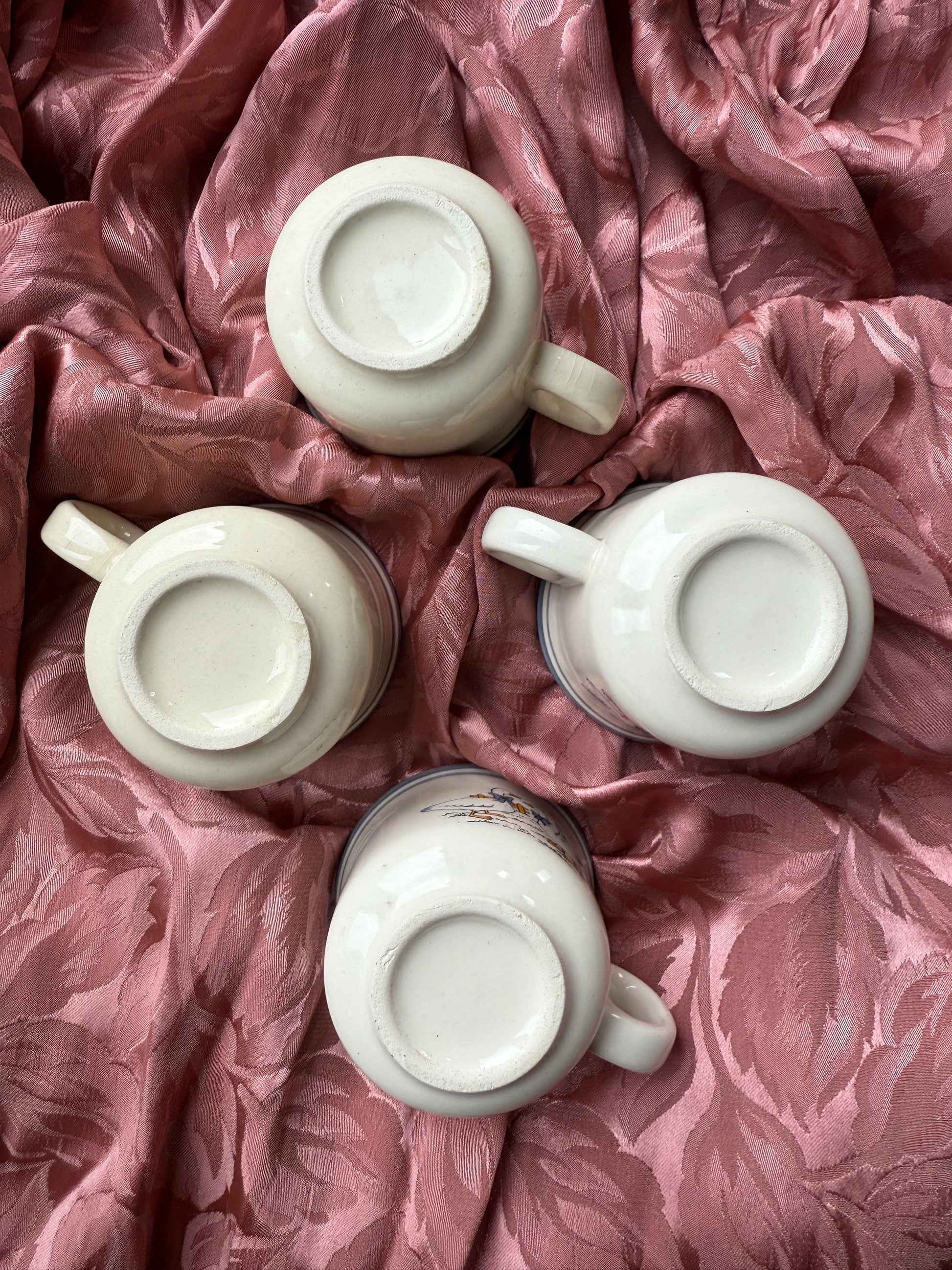Quatre petites tasses à expresso très mignonnes. Elles sont en grès & en super état.