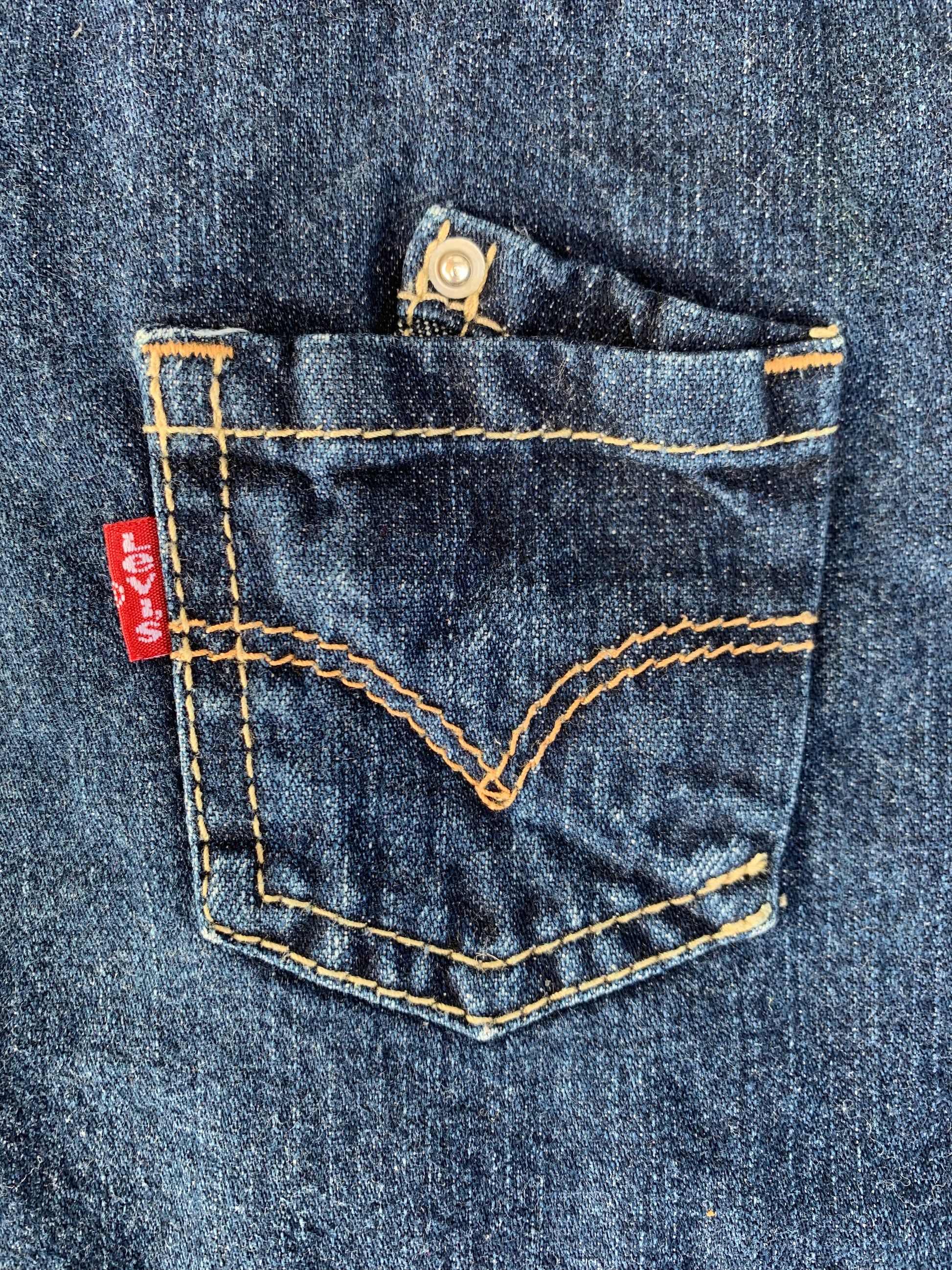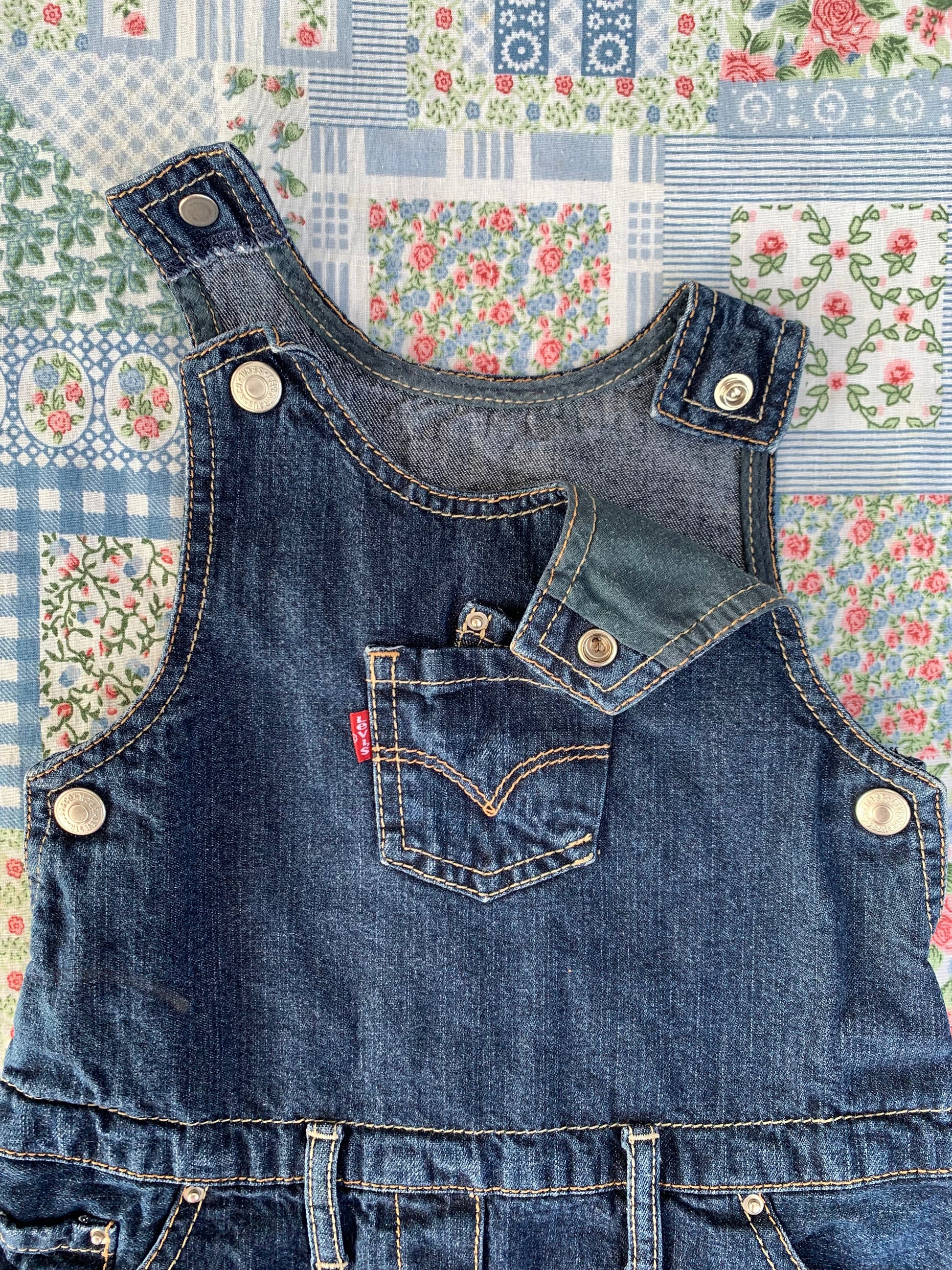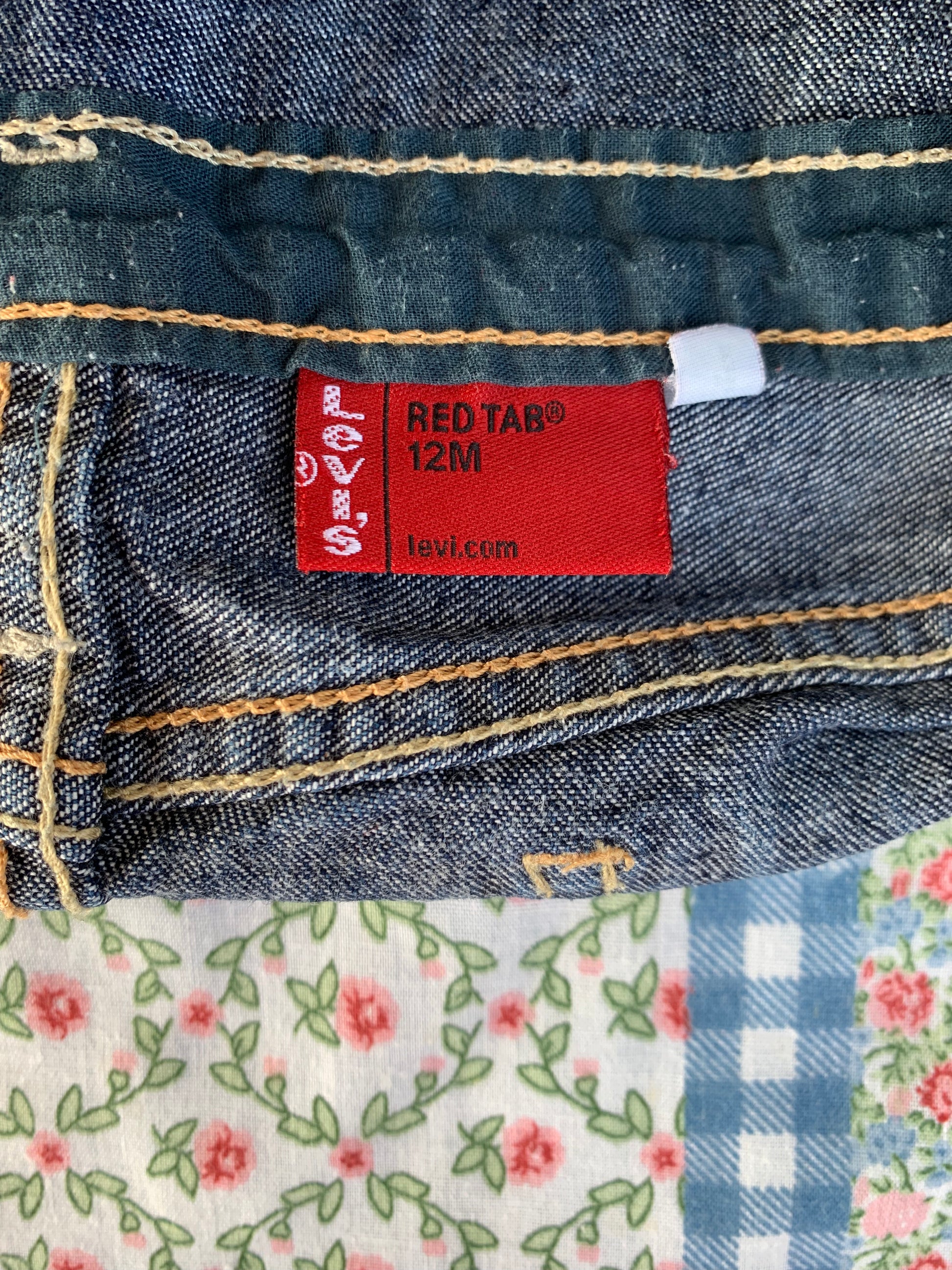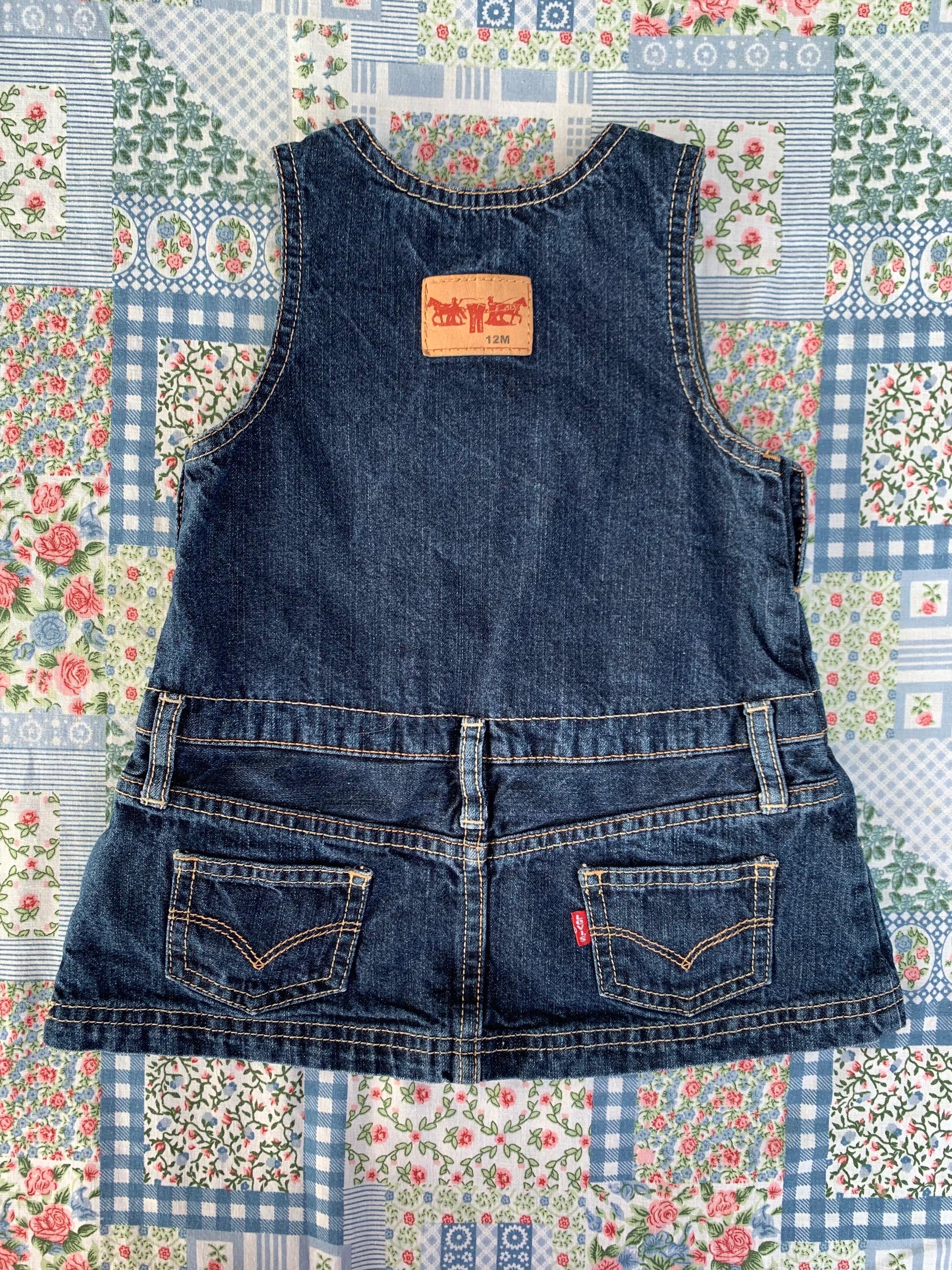Robe en jean de la marque Levis très pratique, qui se déboutonne sur le haut. Taille : 12 mois. 100% coton.