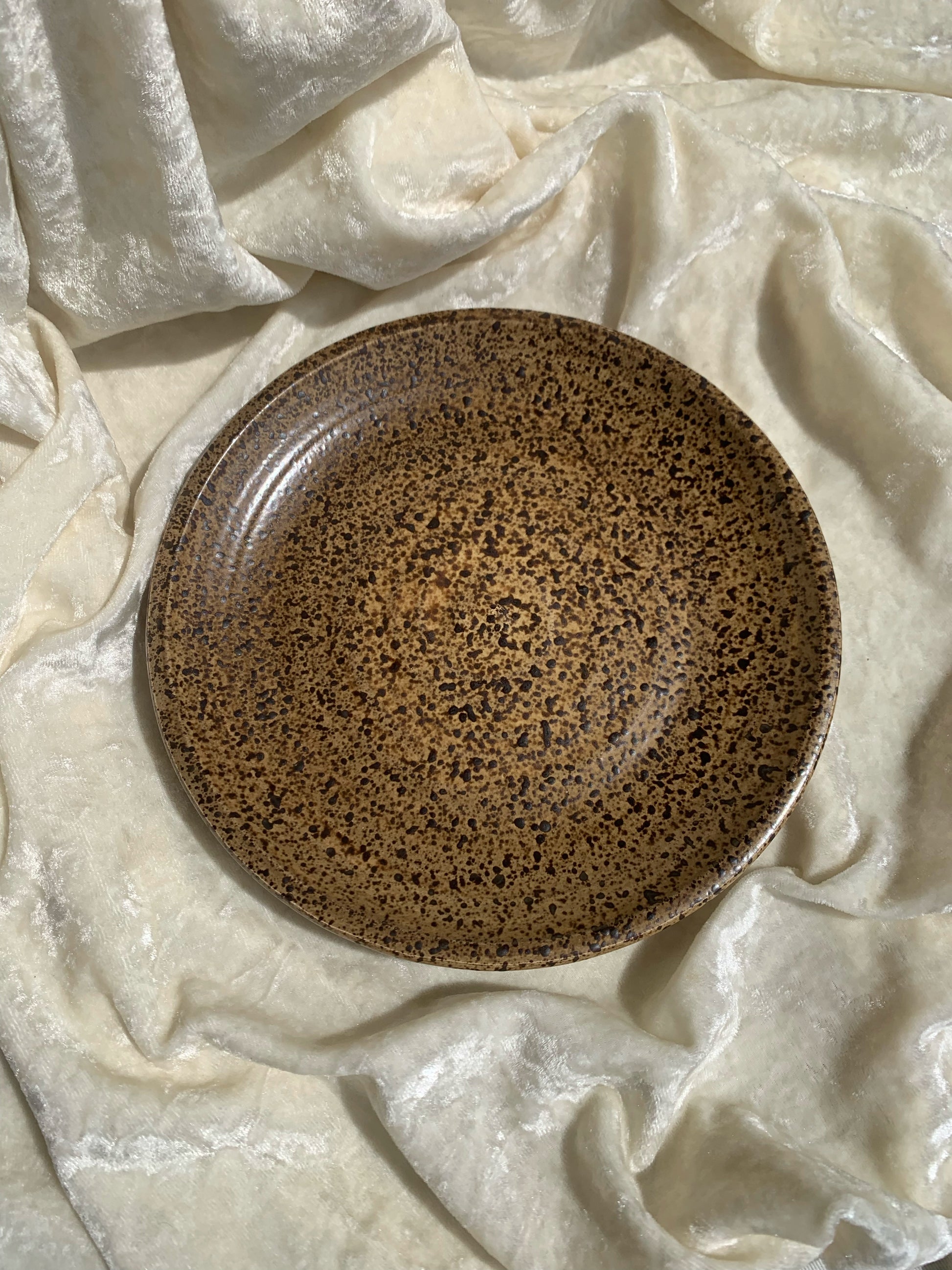 Six assiettes en grès moucheté Les Potiers de l'Abbaye