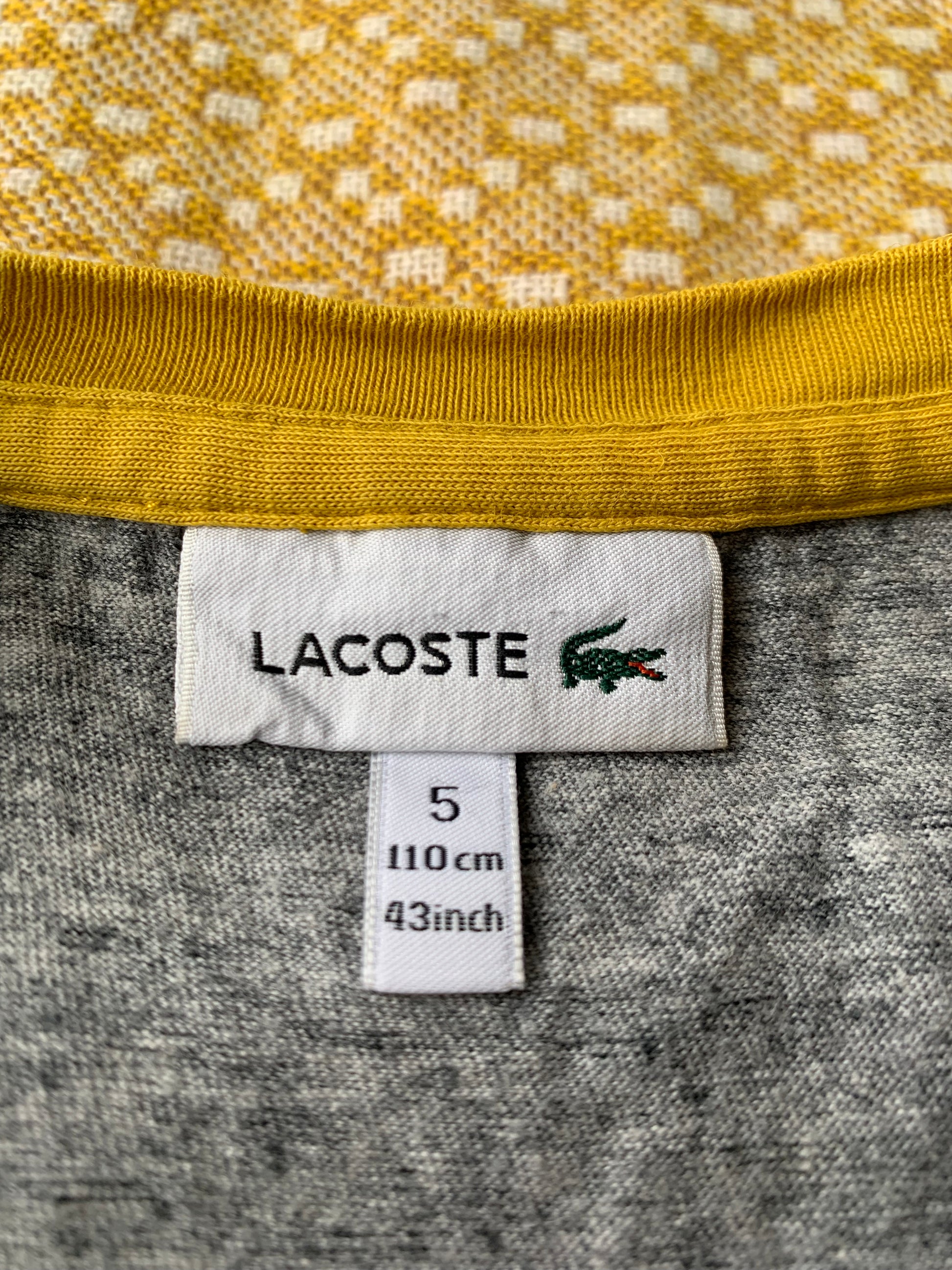 T-shirt original 5 couleurs de la marque Lacoste. Taille enfant : 5 ans (vérifier les dimensions pour voir si l'article convient)
