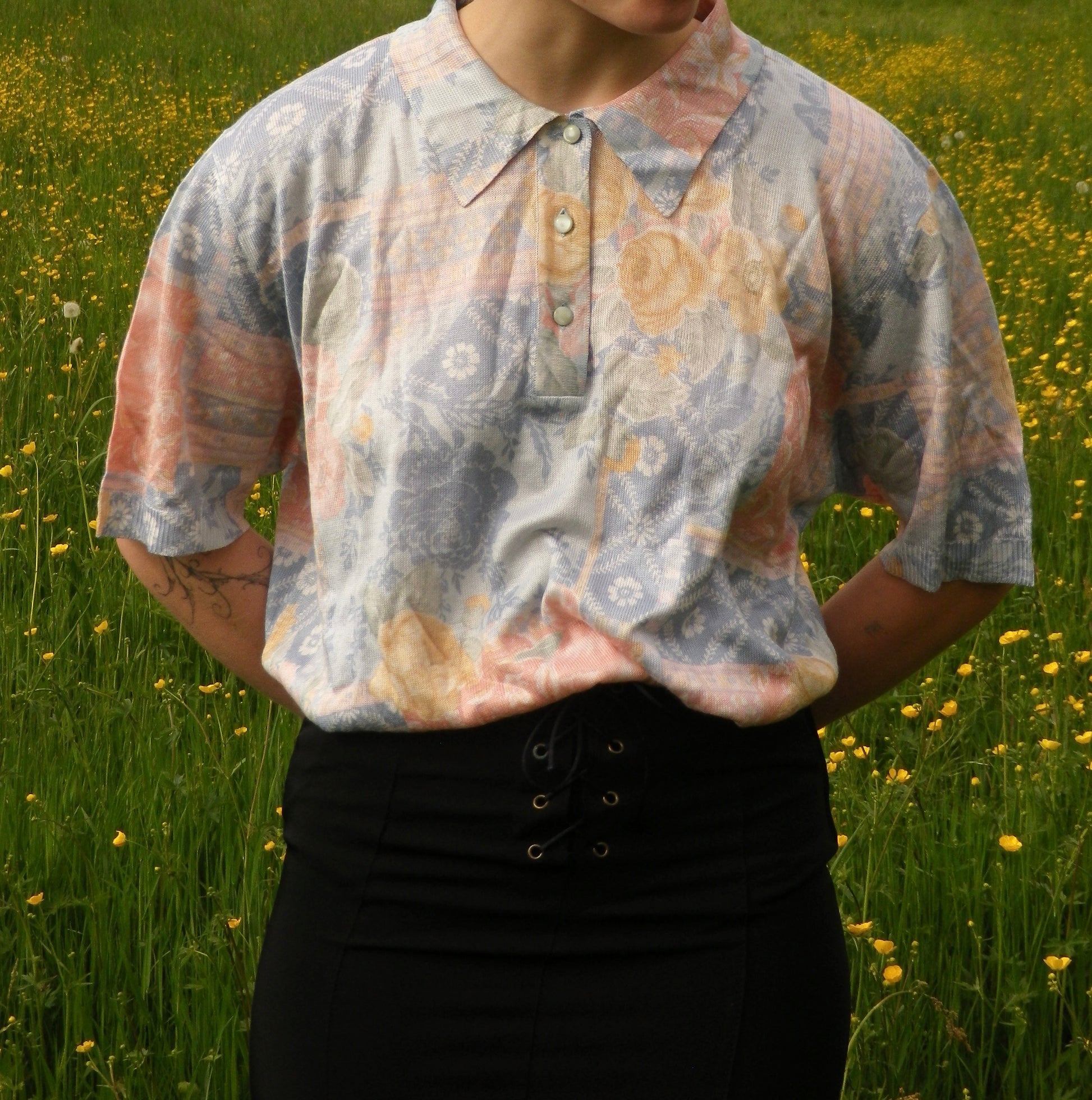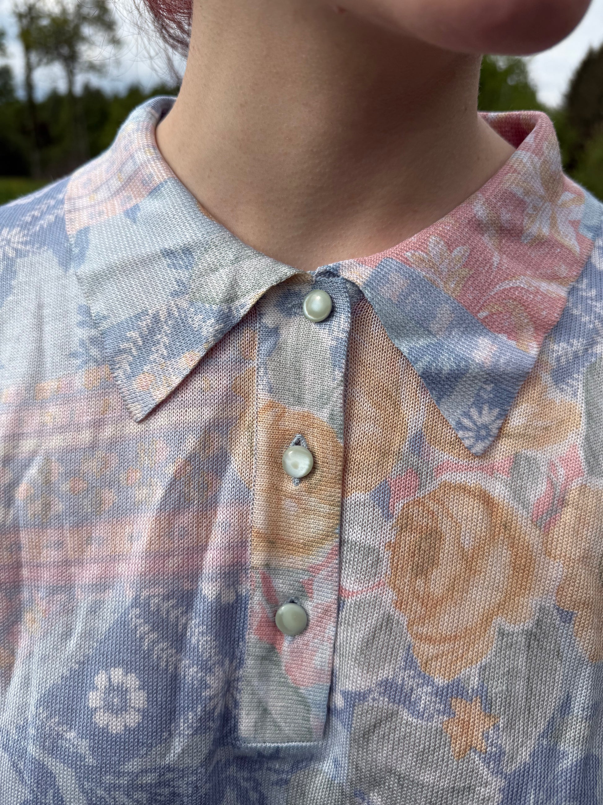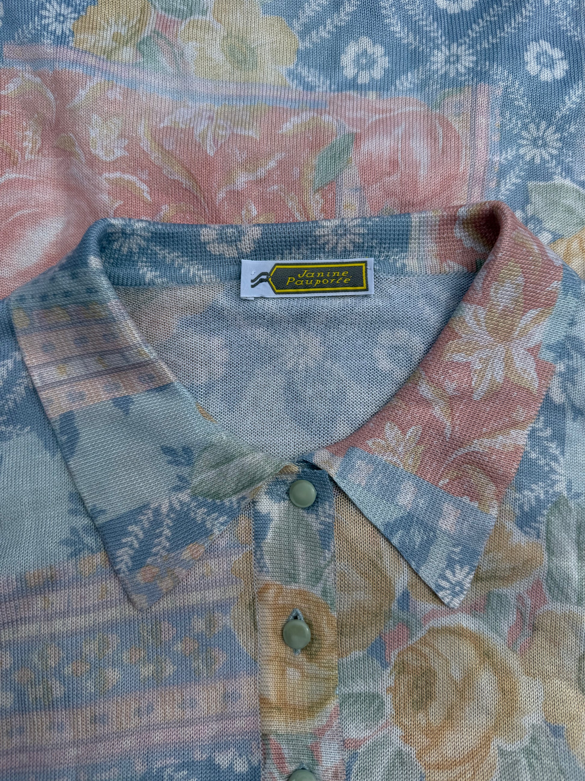 T-shirt vintage fleuri en maille Janine Pauporté T.M-L-XL