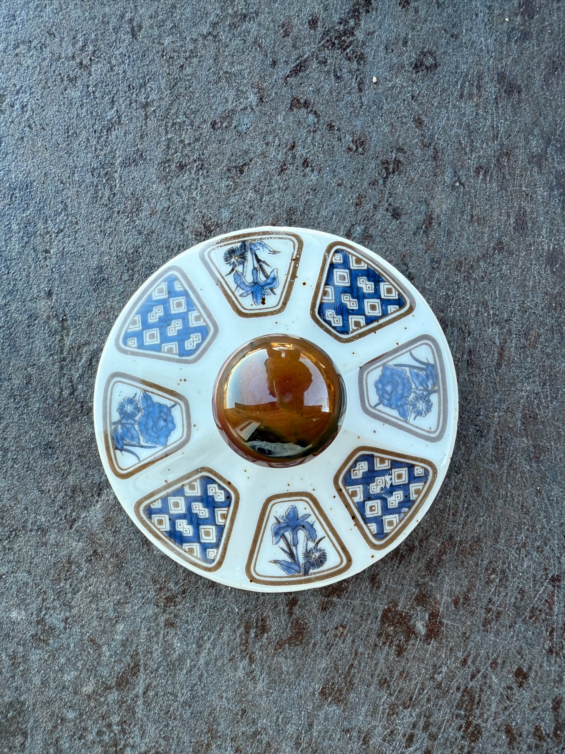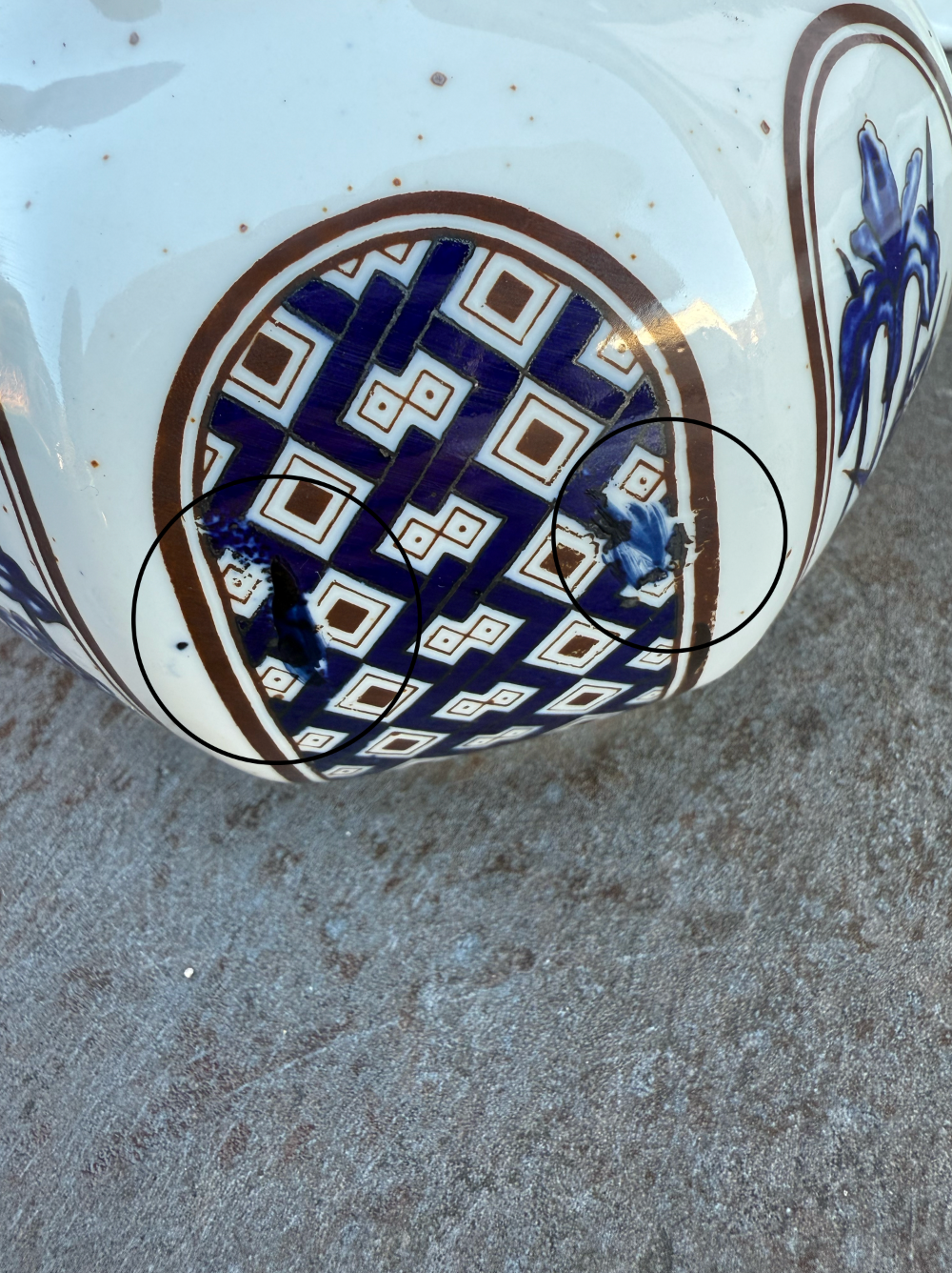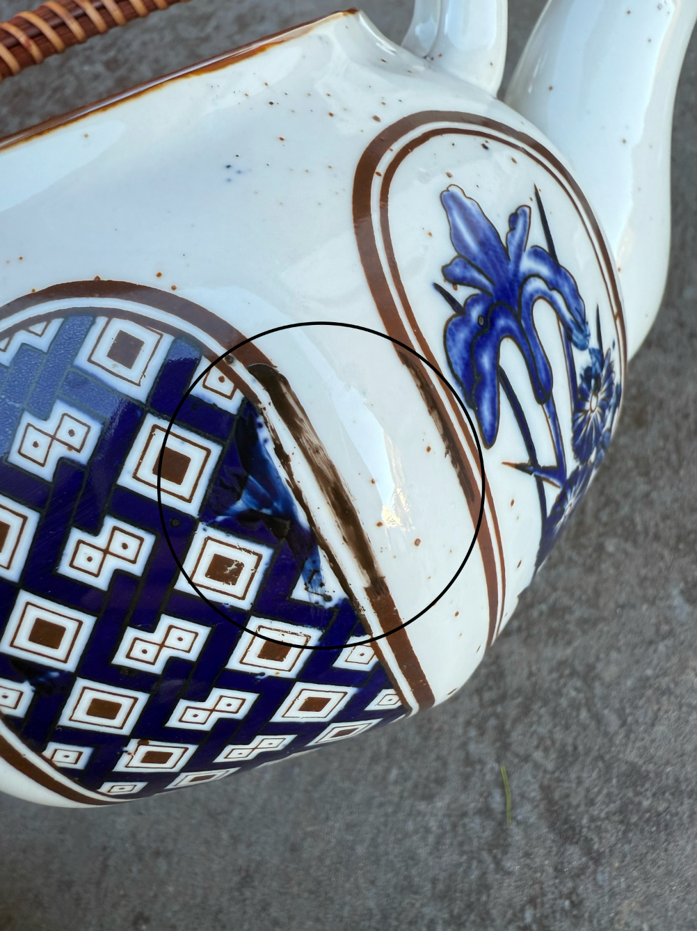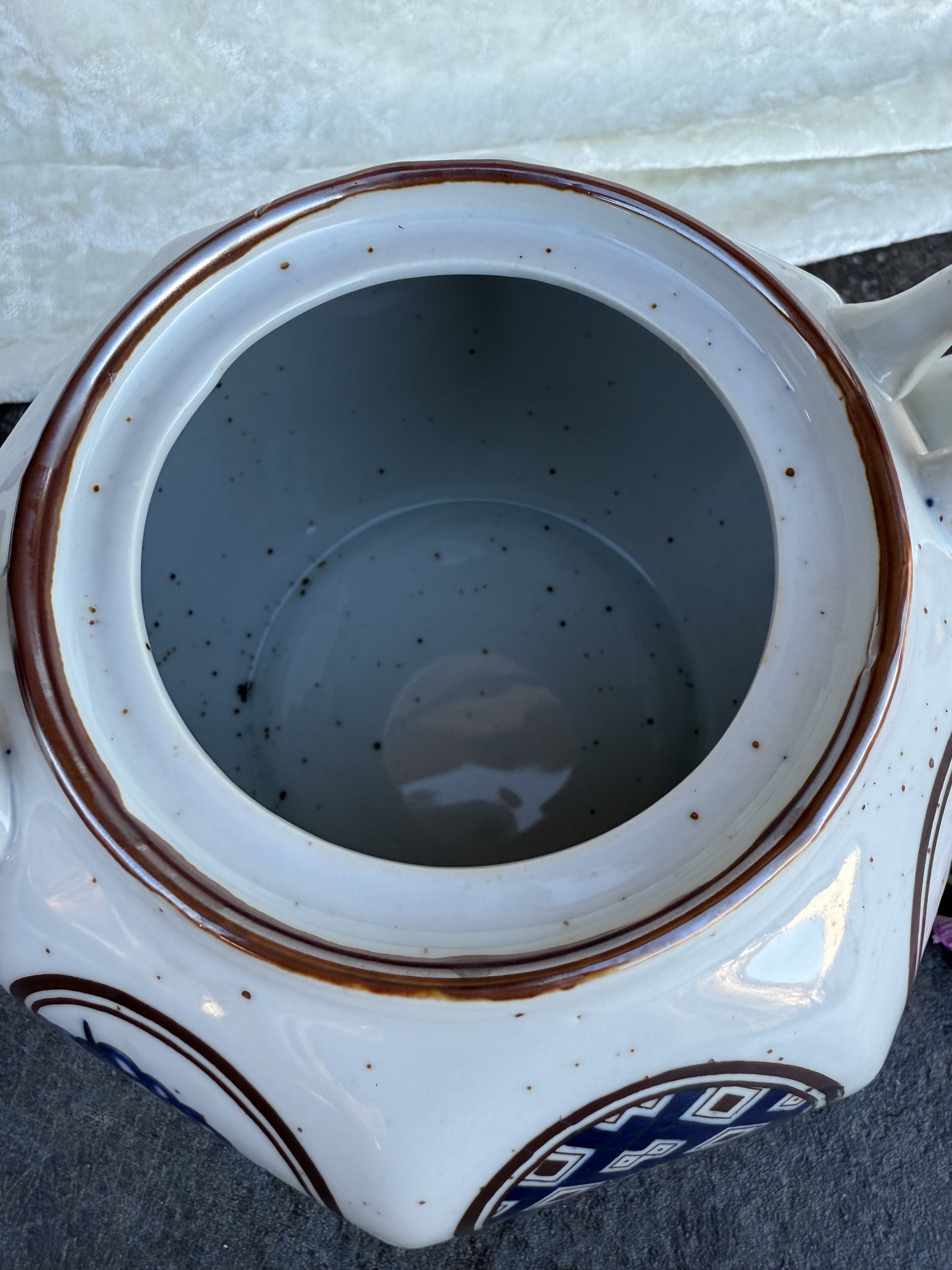 Magnifique théière (probablement japonaise) en très bon état global malgré les motifs sur le couvercle qui ont un peu vieilli et quelques défauts de fabrication au niveau de la peinture que vous pouvez identifier sur les photos.