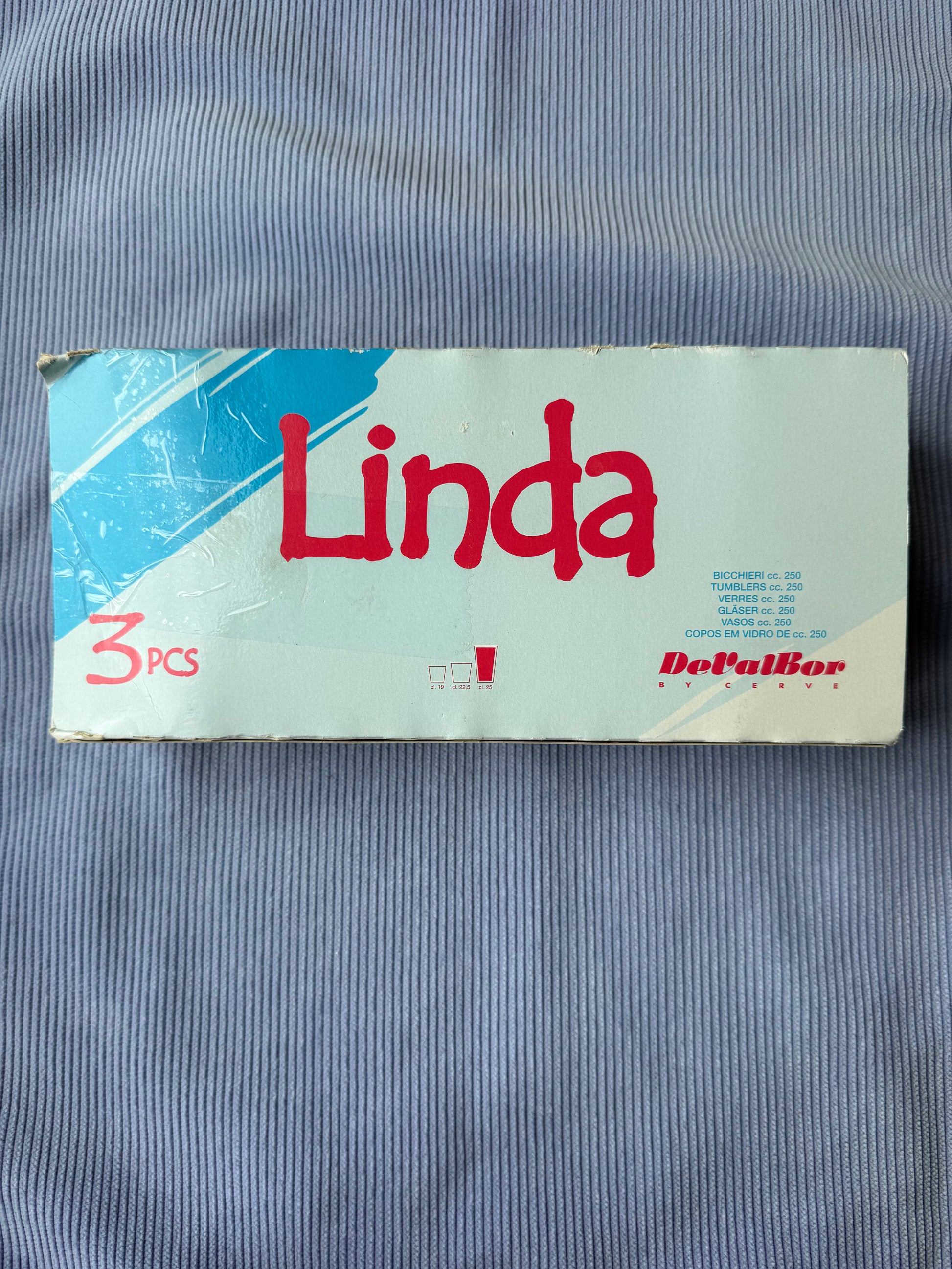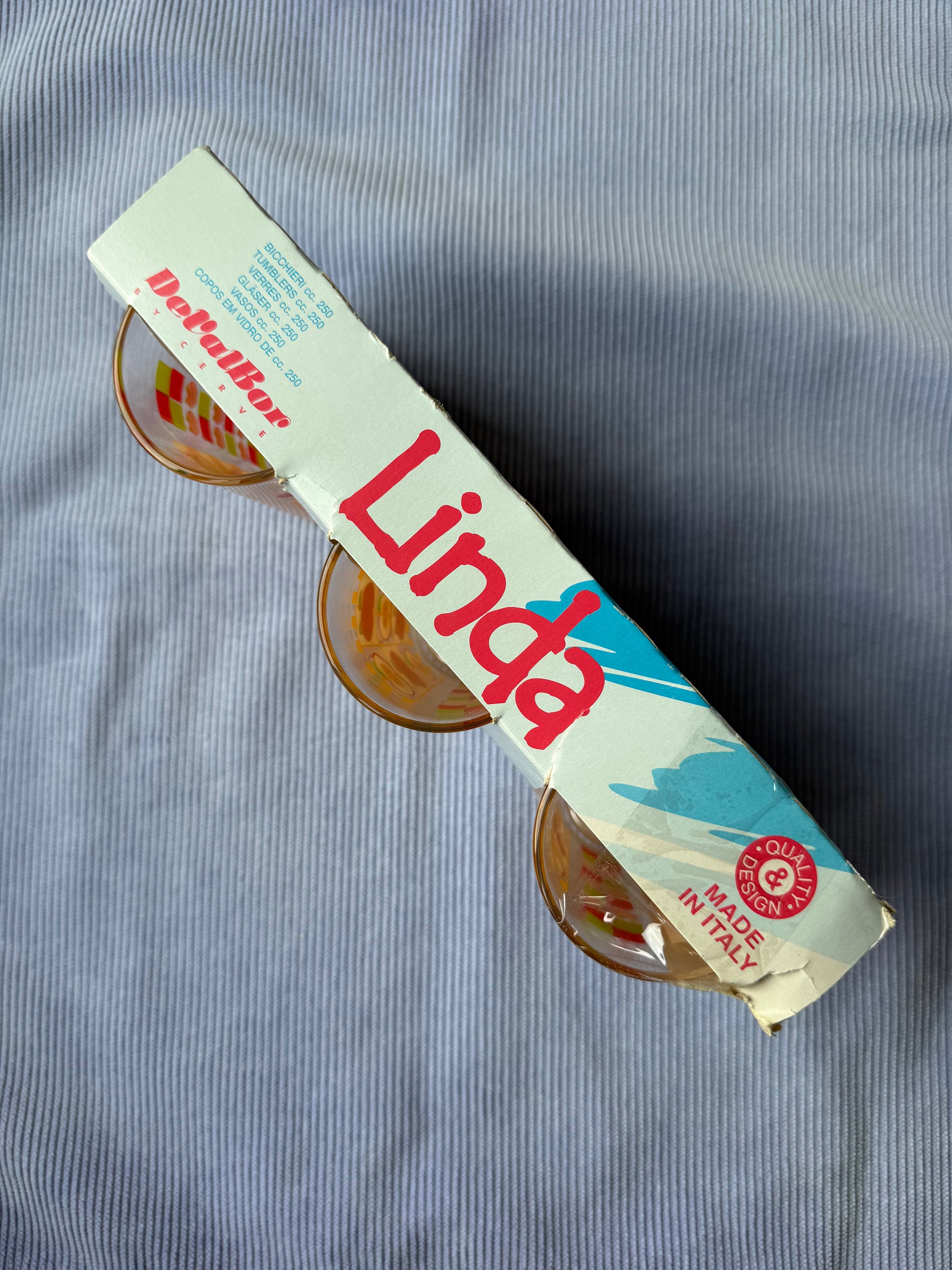 Trois verres à eau vintage Linda DeValBor by Cerve dans leur emballage d'origine