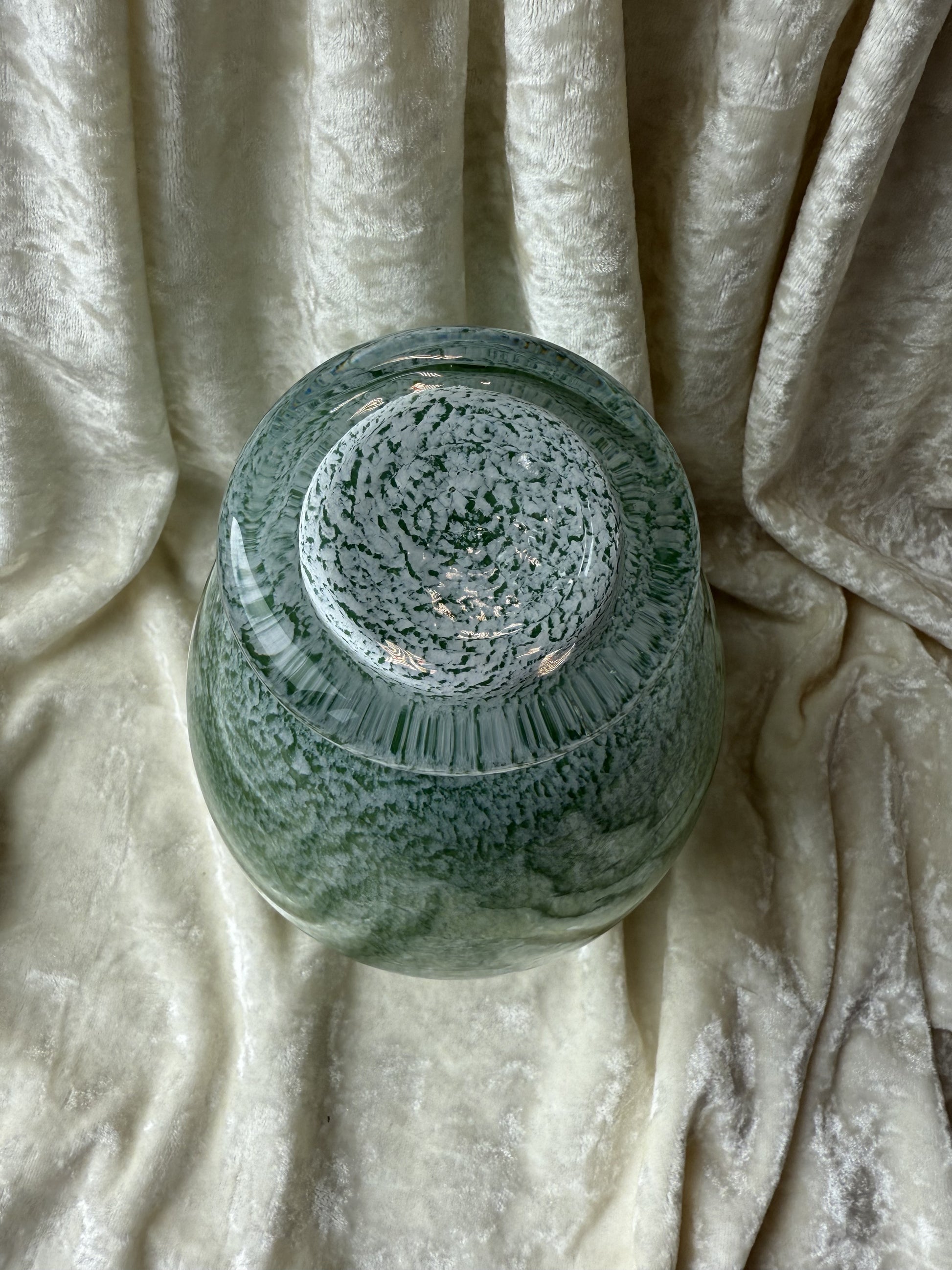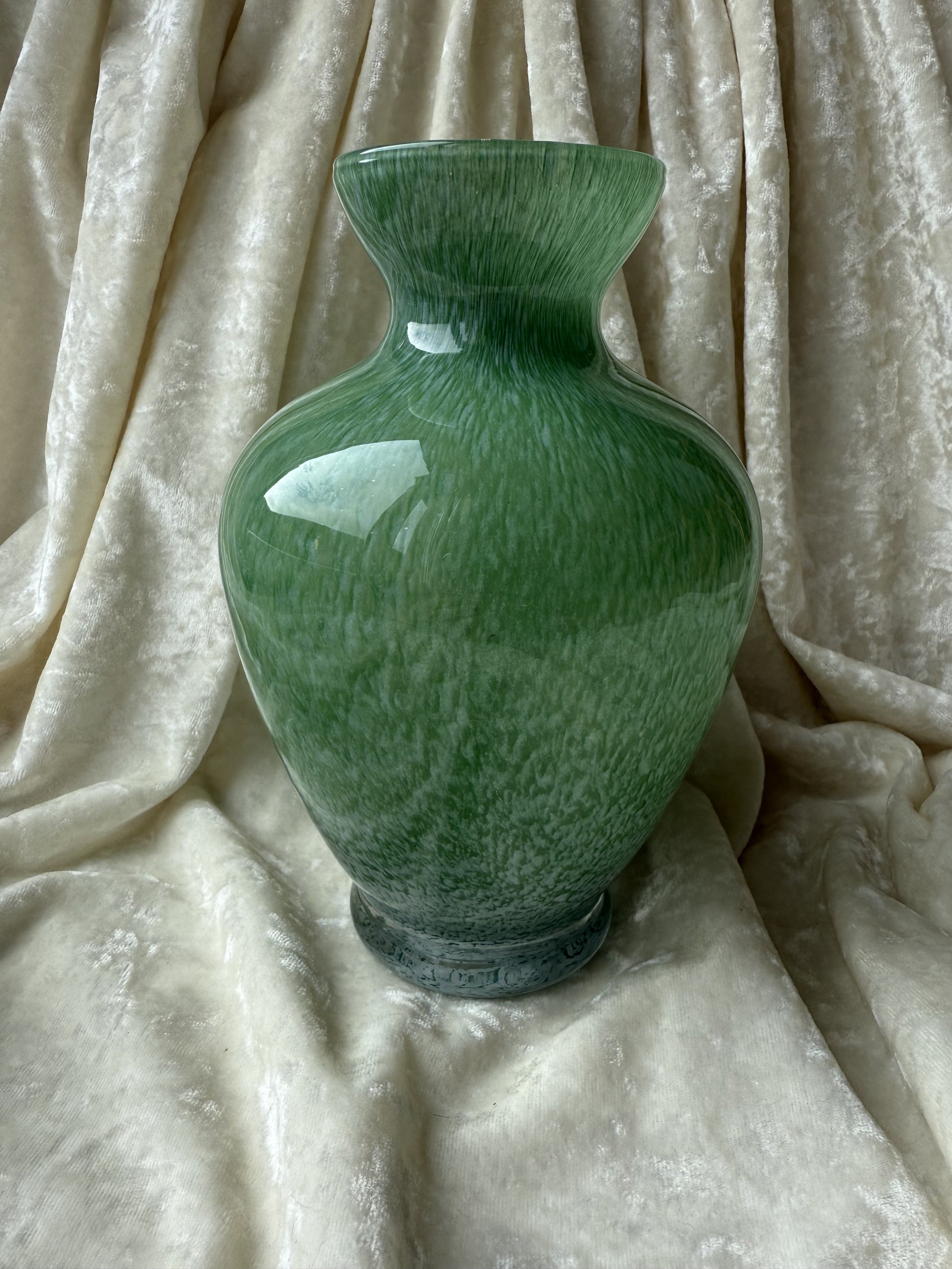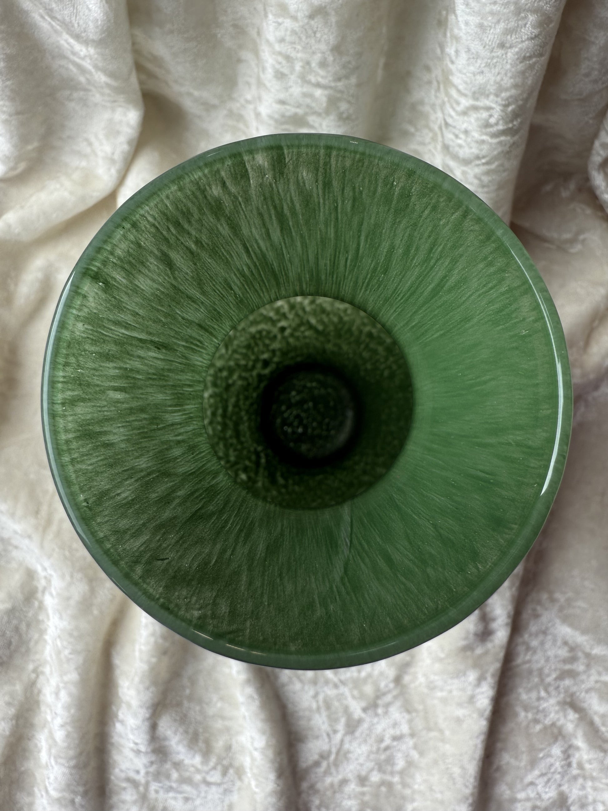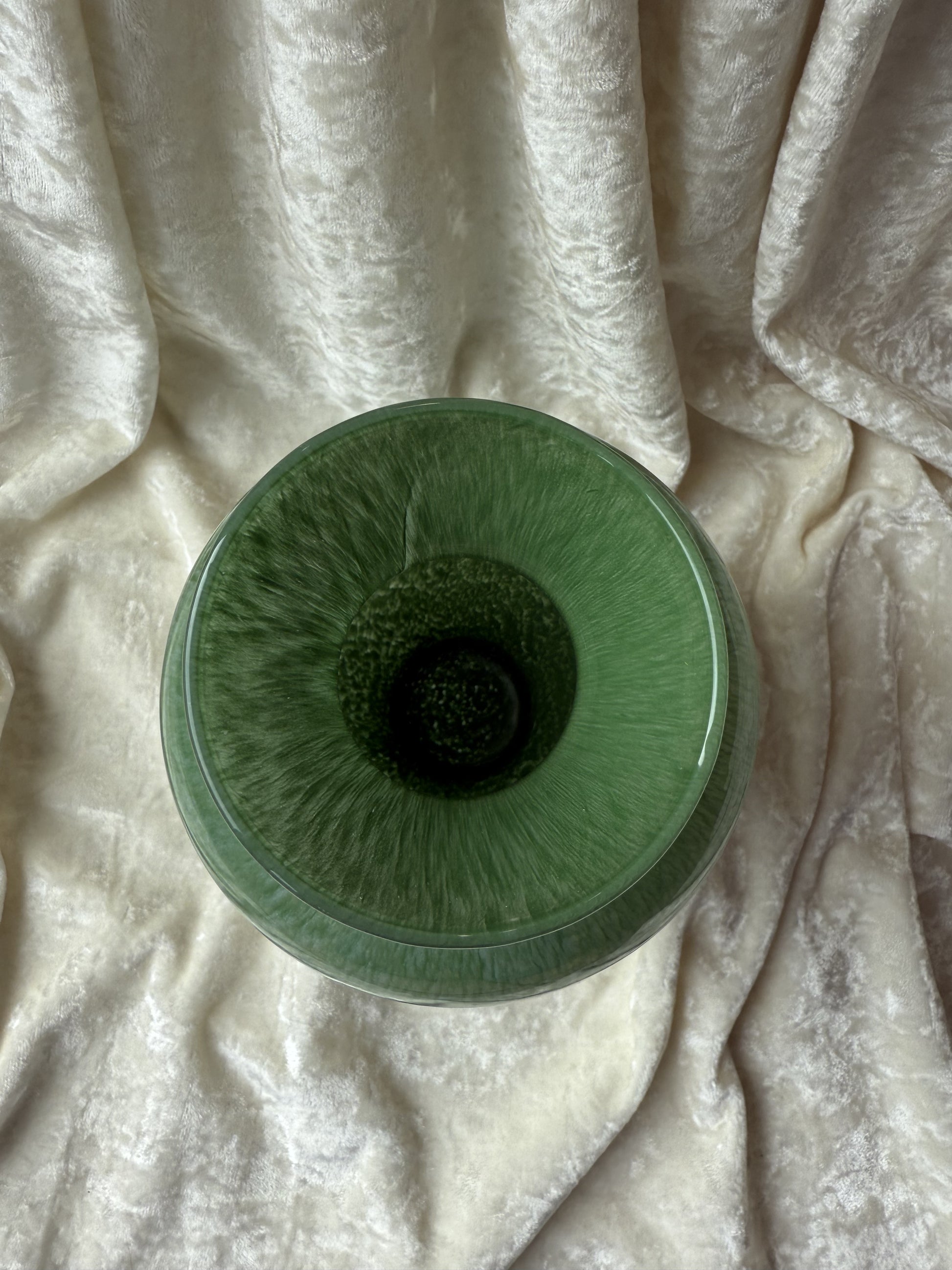 Joli vase vert en verre, idéal pour mettre en valeur vos fleurs.