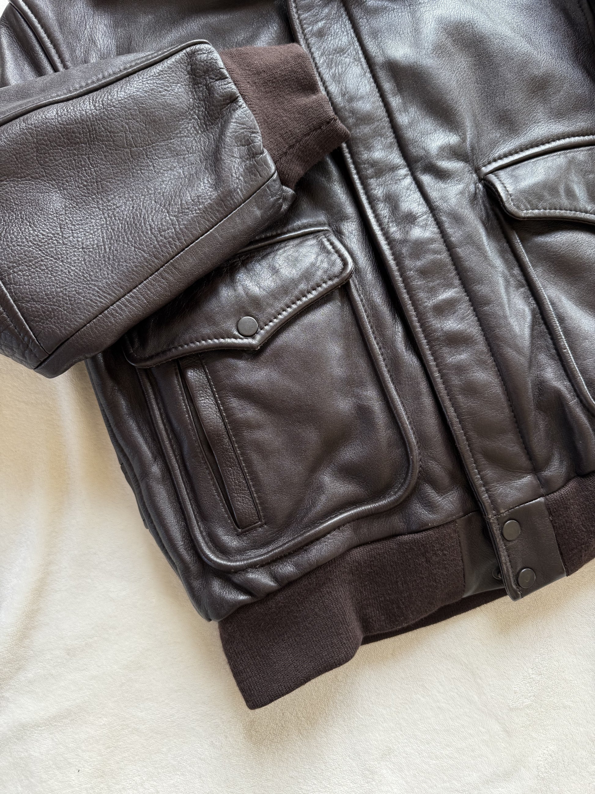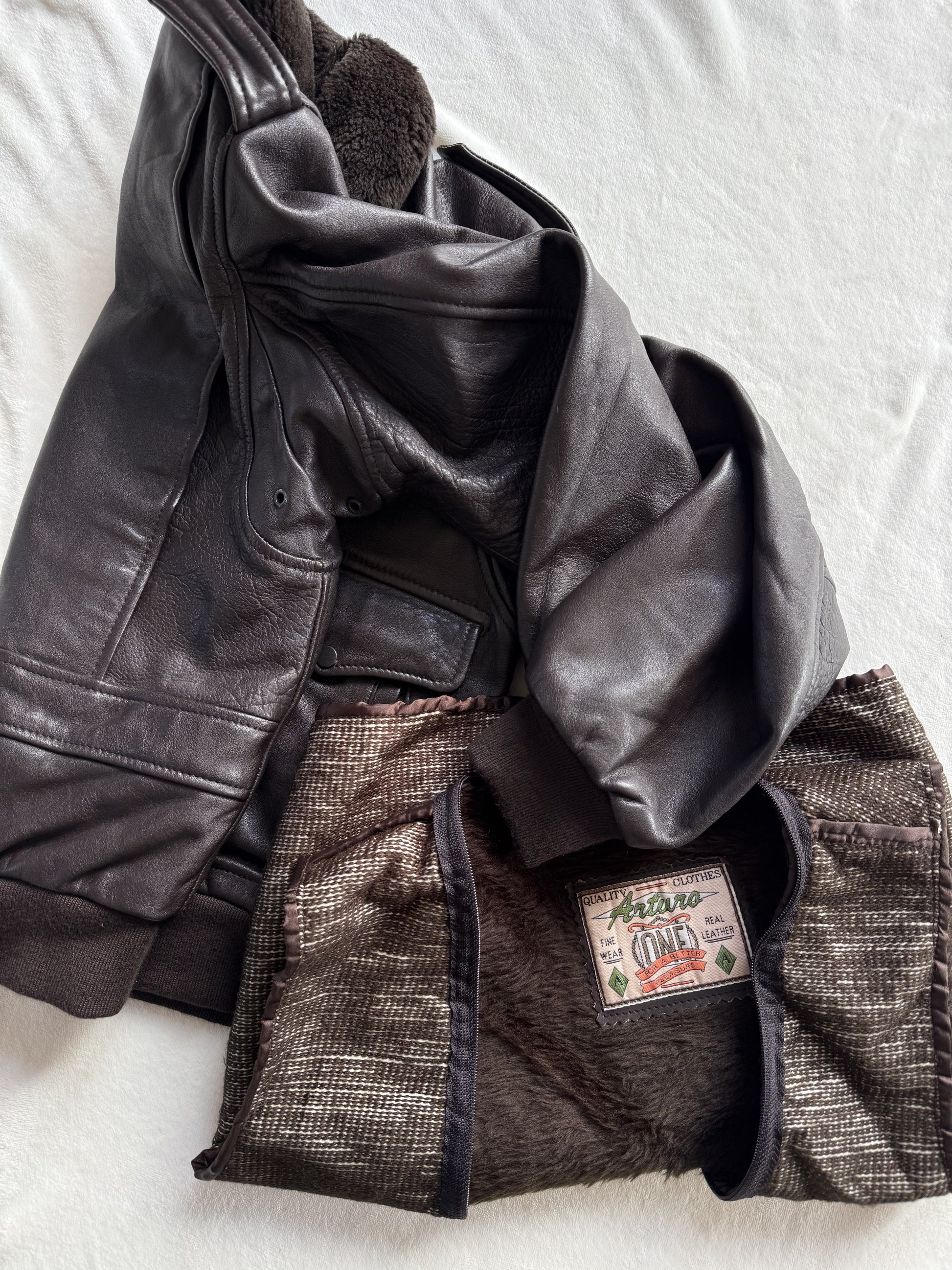Blouson / veste de grande qualité pratiquement neuve. Il y a une doublure poilue à l'intérieur qui peut s'enlever pour les jours plus chauds. Blouson très pratique avec des poches. Veste en cuir & doublure en polyester. Poids : 1,5 kg.