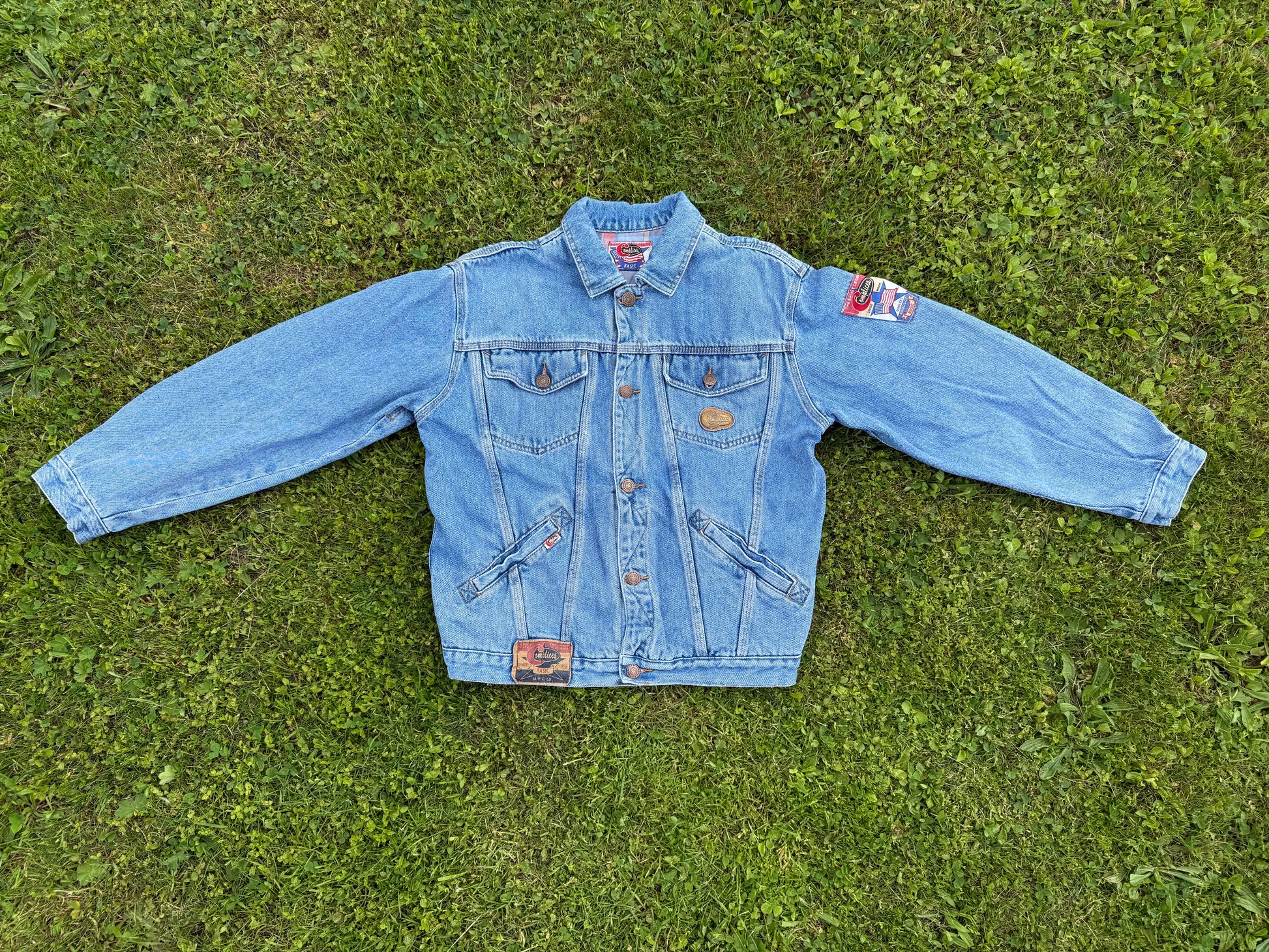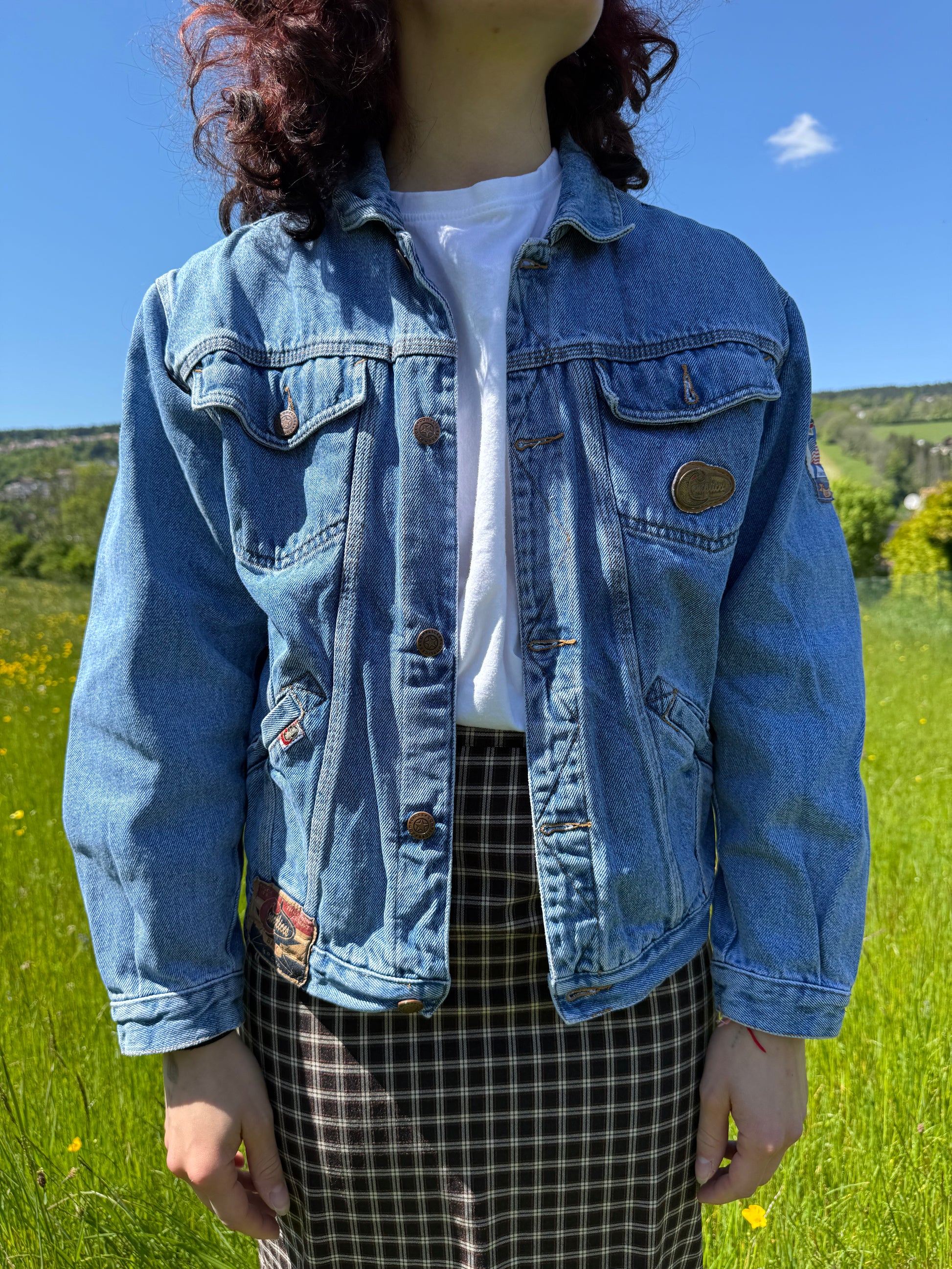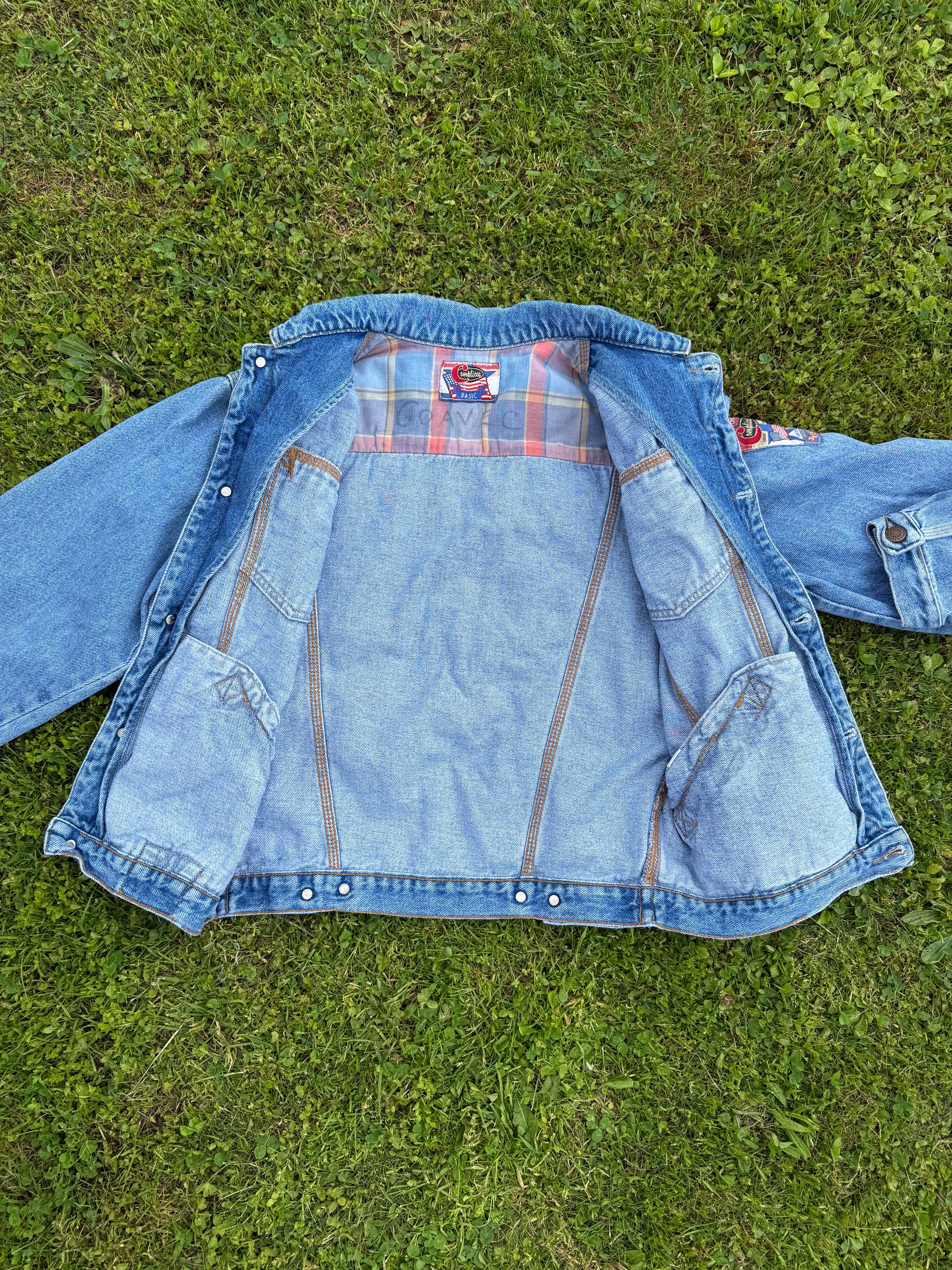 Superbe veste vintage avec plusieurs tacons dont un en métal au niveau de la poche avant gauche. Elle est en très bon état, il y a juste un nom de famille écrit à l'intérieur de la veste sous l'étiquette. 100% coton