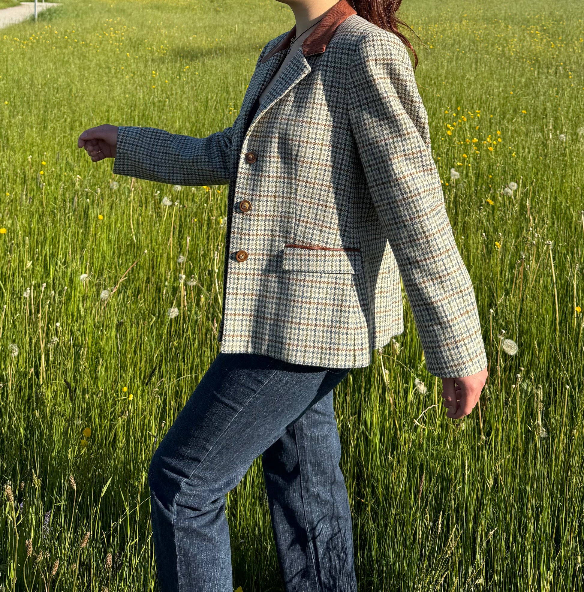 Magnifique veste vintage de la marque Solfin Tradition. Il est indiqué taille 42, mais ça correspond plutôt à une taille M. 70% laine, 20% polyester 10% polyamide.